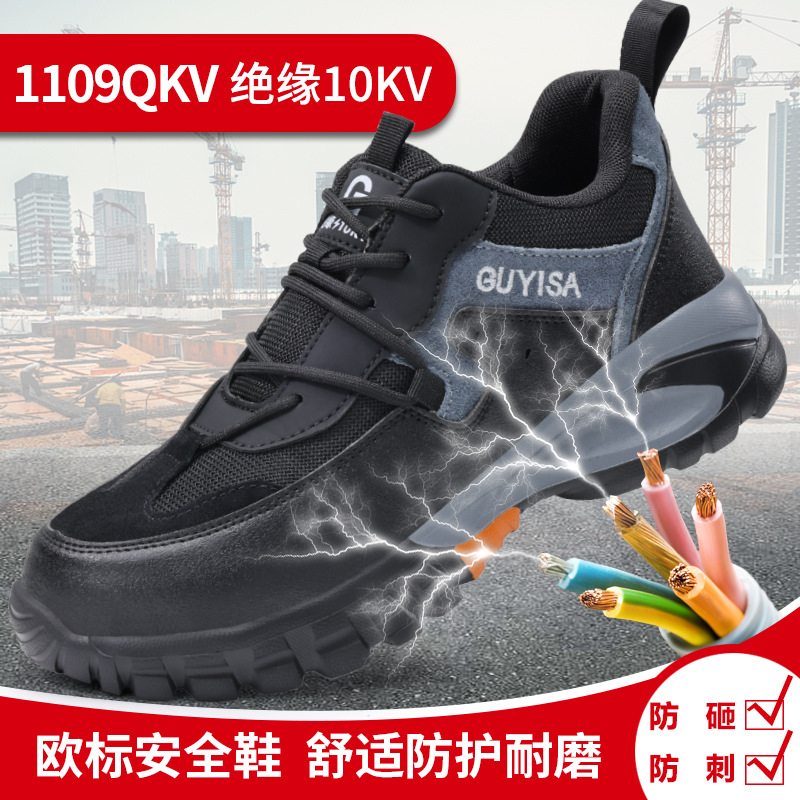 절연 신발, 통기성 및 내마모성 신발, 남성용 노동 보호 신발, 파손 방지, 펑크 방지, 안전 플라스틱 발가락 캡, 여름용 10KV 전기 신발