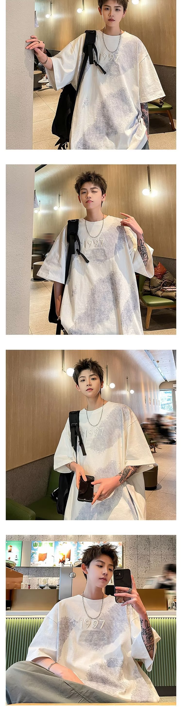 넥타이 염료 반소매 남성용 여름 아메리칸 스타일 하이 스트리트 헤비 티셔츠 탑 트렌디 브랜드 통통 잘 생긴 반소매 티셔츠