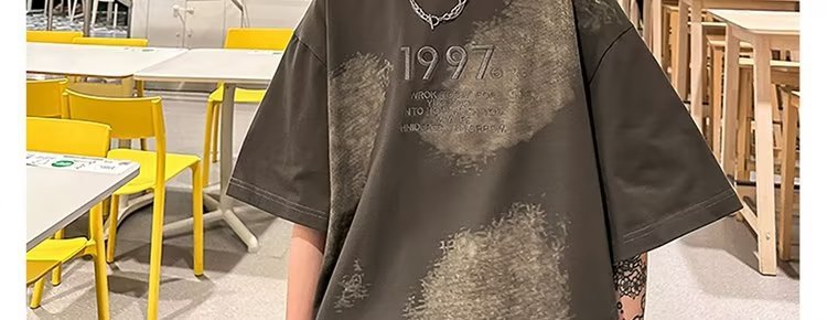 넥타이 염료 반소매 남성용 여름 아메리칸 스타일 하이 스트리트 헤비 티셔츠 탑 트렌디 브랜드 통통 잘 생긴 반소매 티셔츠스토어 가기