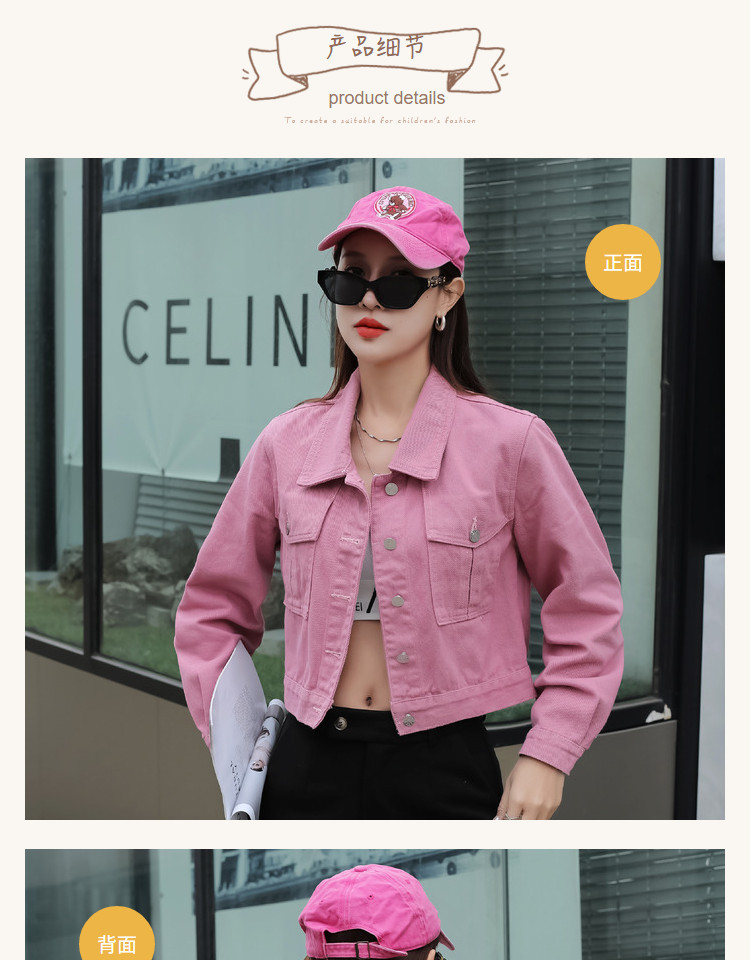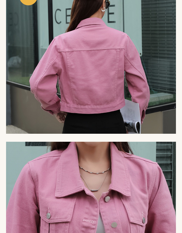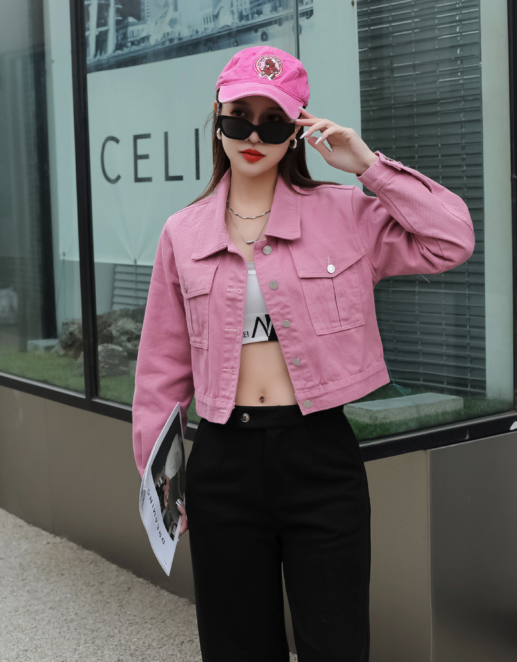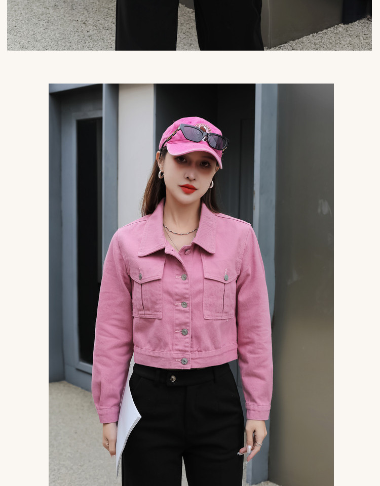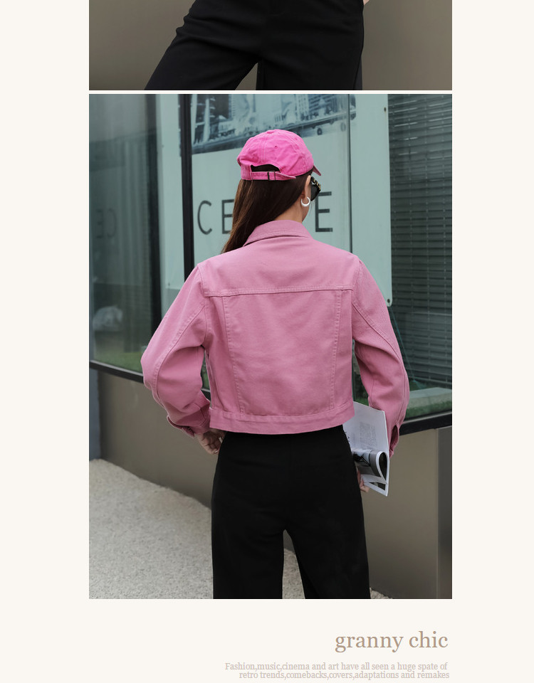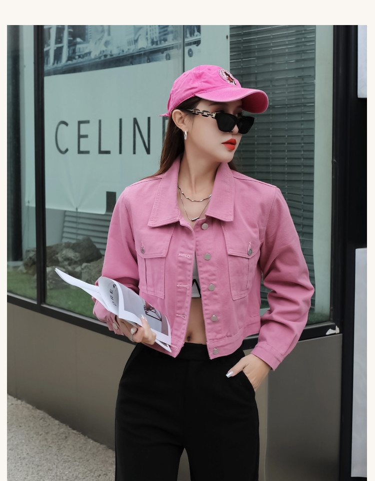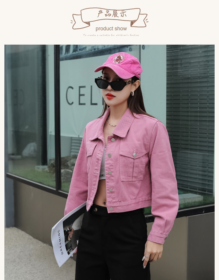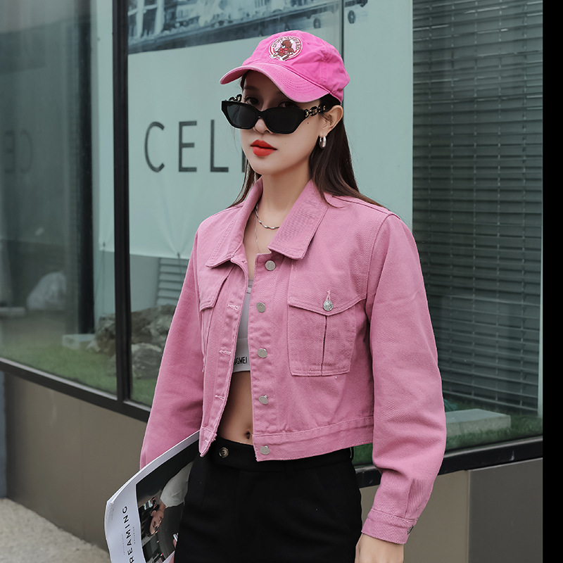 봄과 가을 새로운 작은 짧은 재킷 탑 2024 여성을위한 핑크 간단한 올 매치 캐주얼 데님 코트스토어 가기
