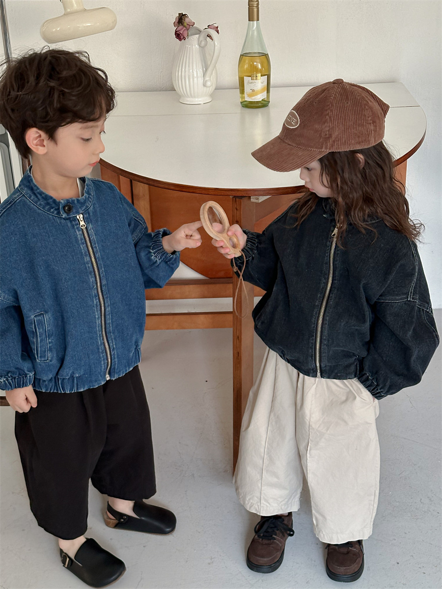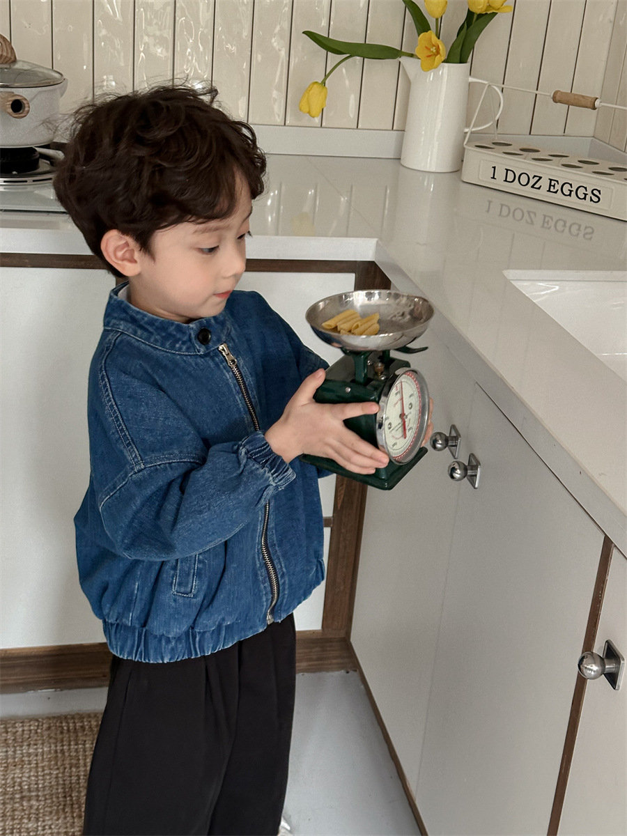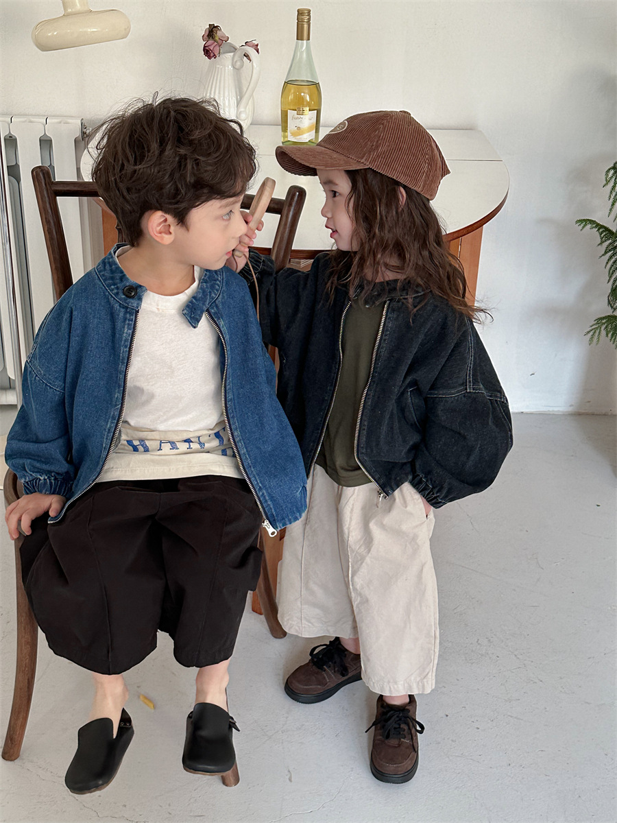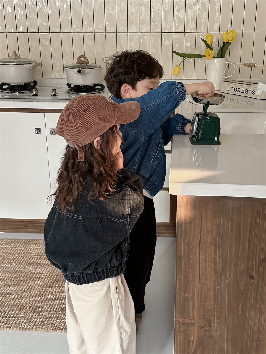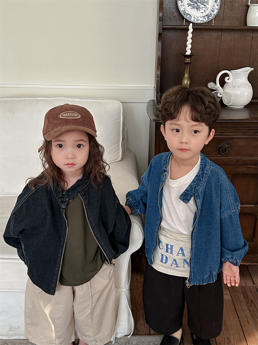 Jiaye 어린이 제품 2025 어린이 봄, 가을 오토바이 스타일 데님 재킷 남성과 여성 아기 다목적 탑 유행 재킷스토어 가기