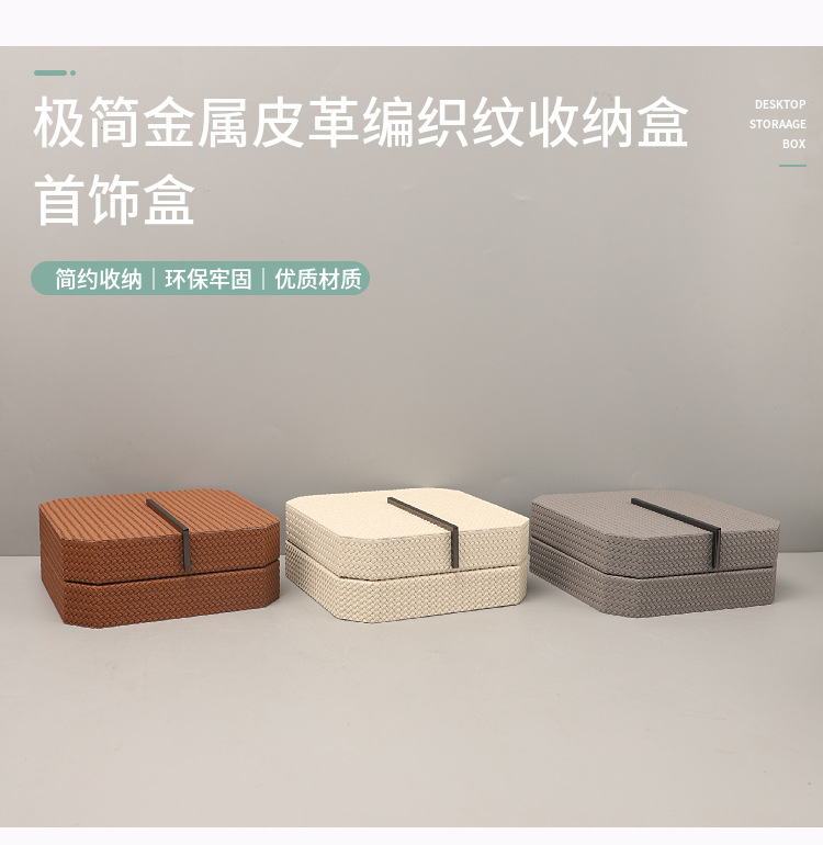 현대 미니멀 한 금속 가죽 짠 보석 저장 상자 장식 거실 침실 드레싱 테이블 홈 장식스토어 가기