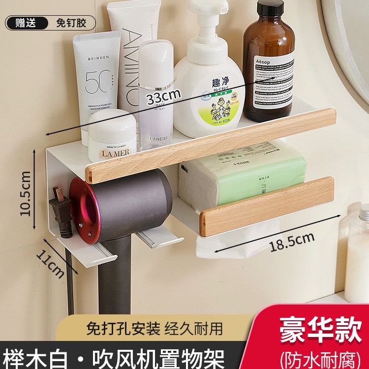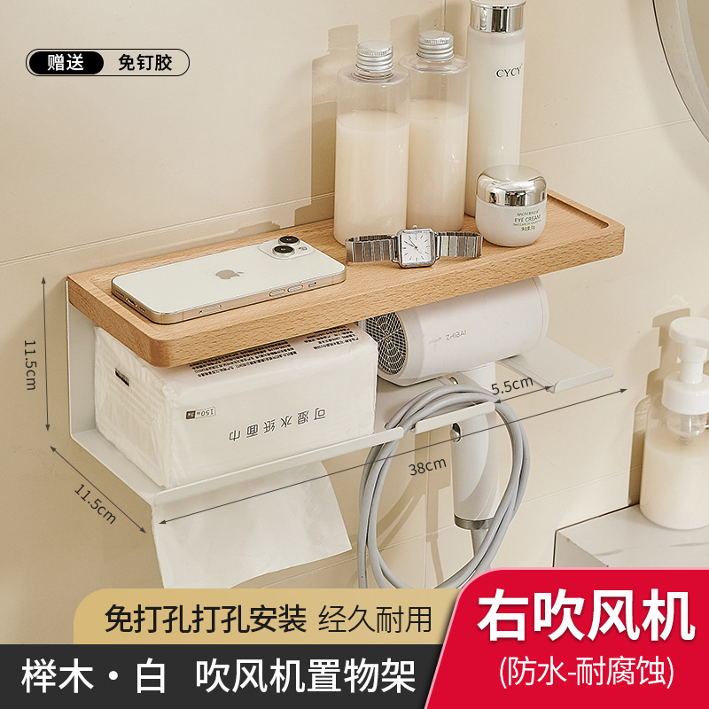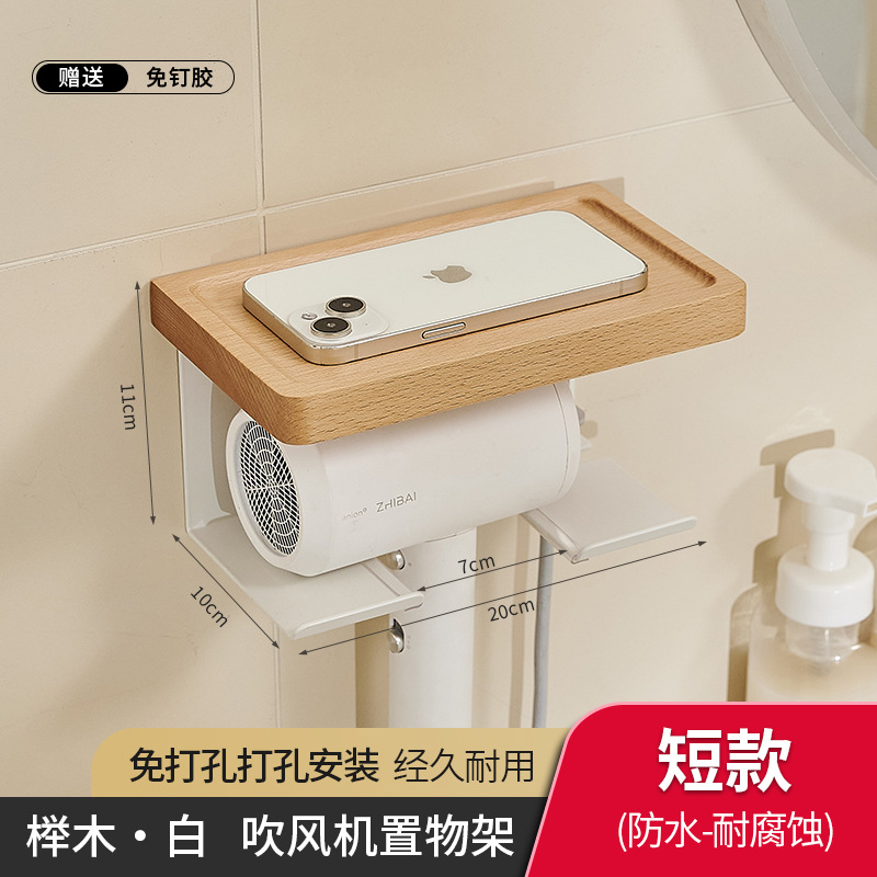 로그 윈드 헤어 드라이어 스토리지 랙 펀치 프리 화장실 헤어 드라이어 브래킷 너도밤 나무 전기 헤어 드라이어 스토리지 랙