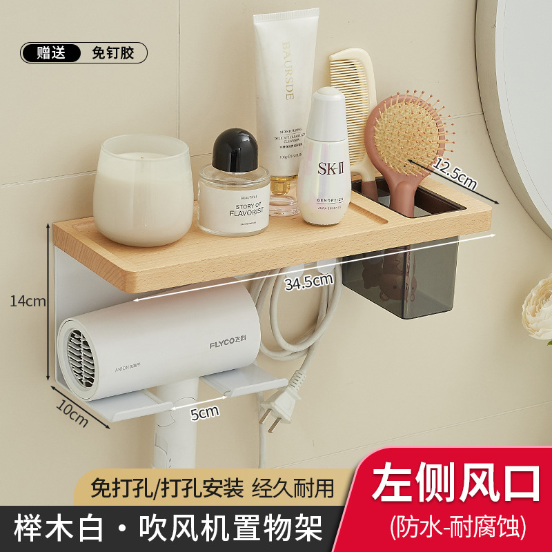 • 간단한 왼쪽 헤어 드라이어 랙 홀더-너도밤 나무 흰색