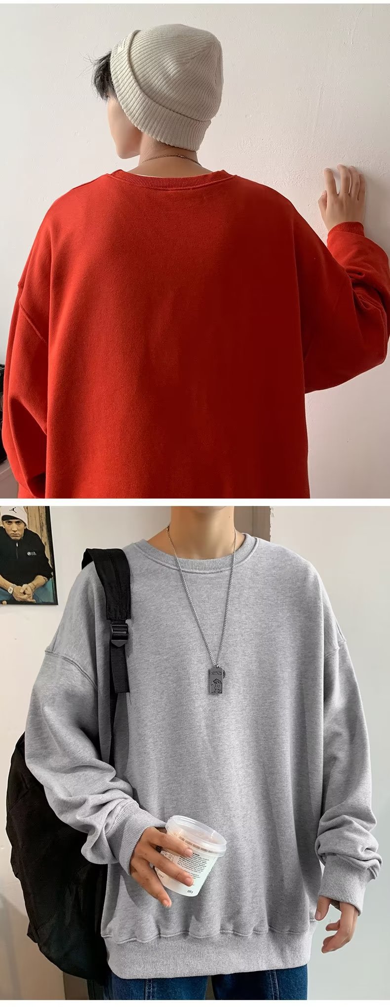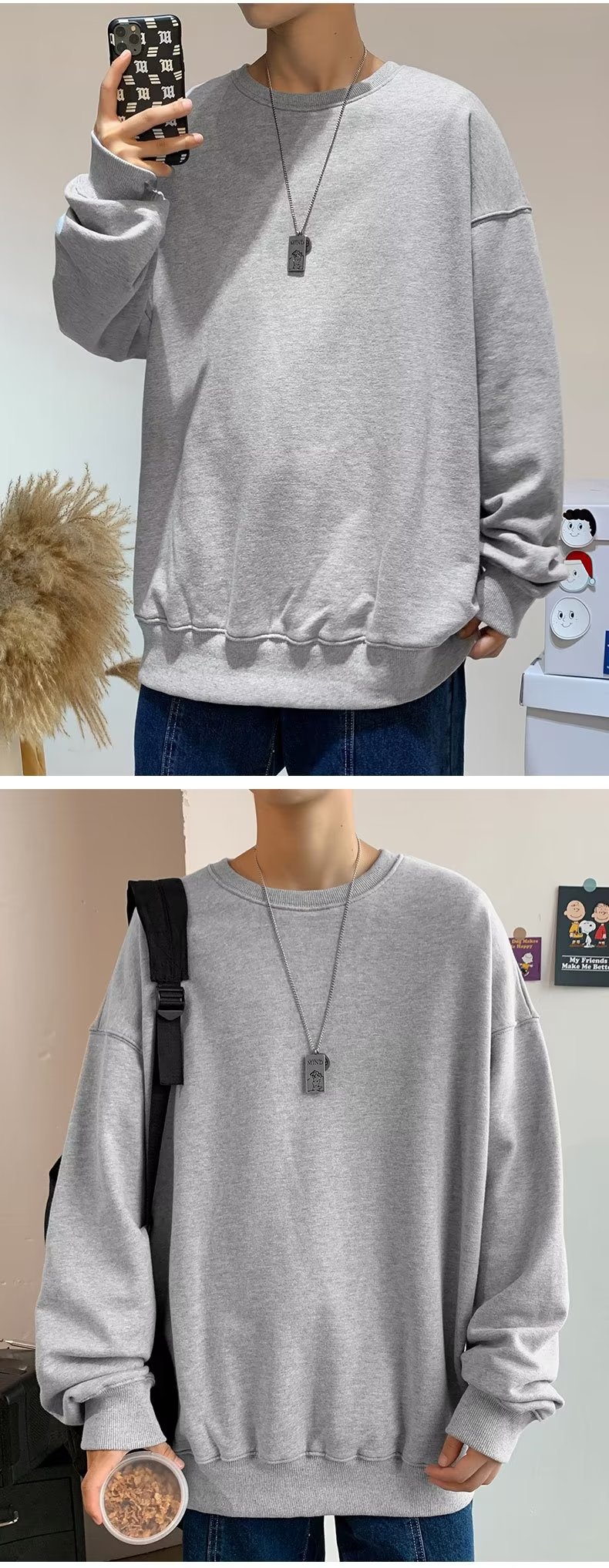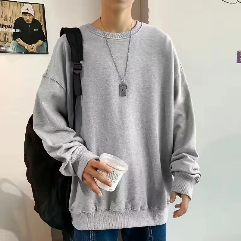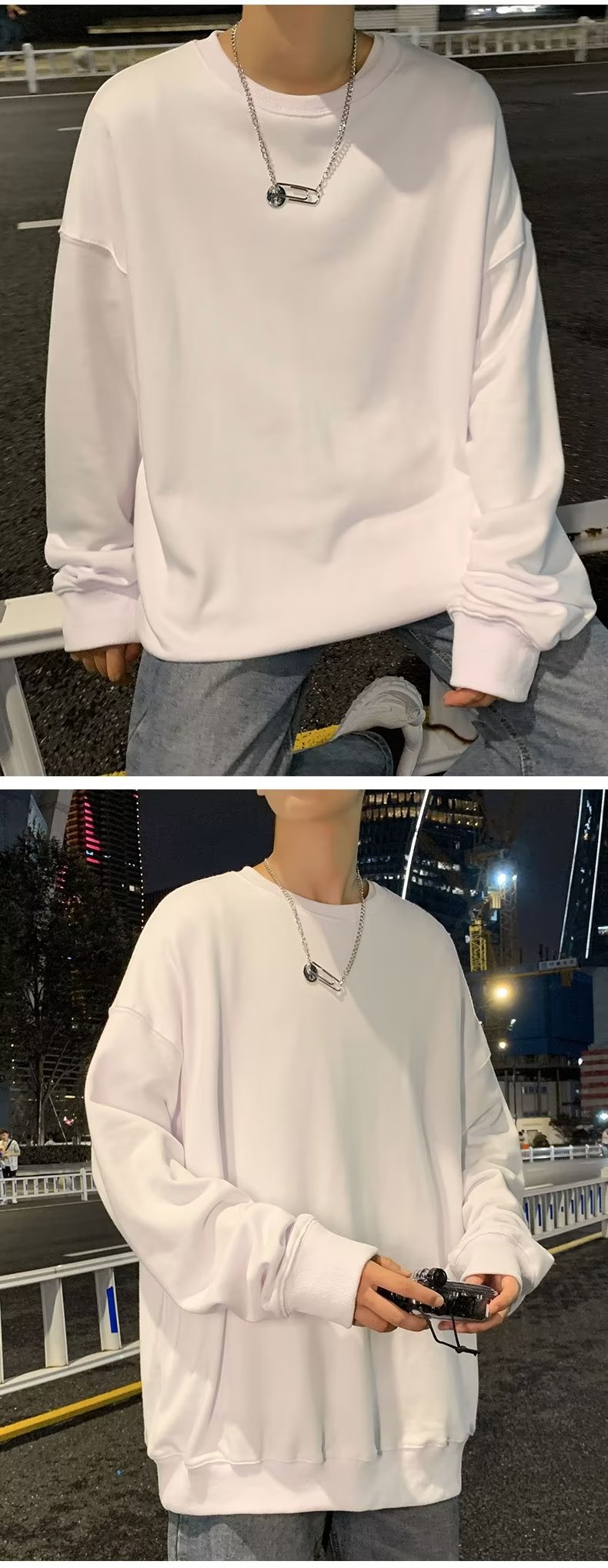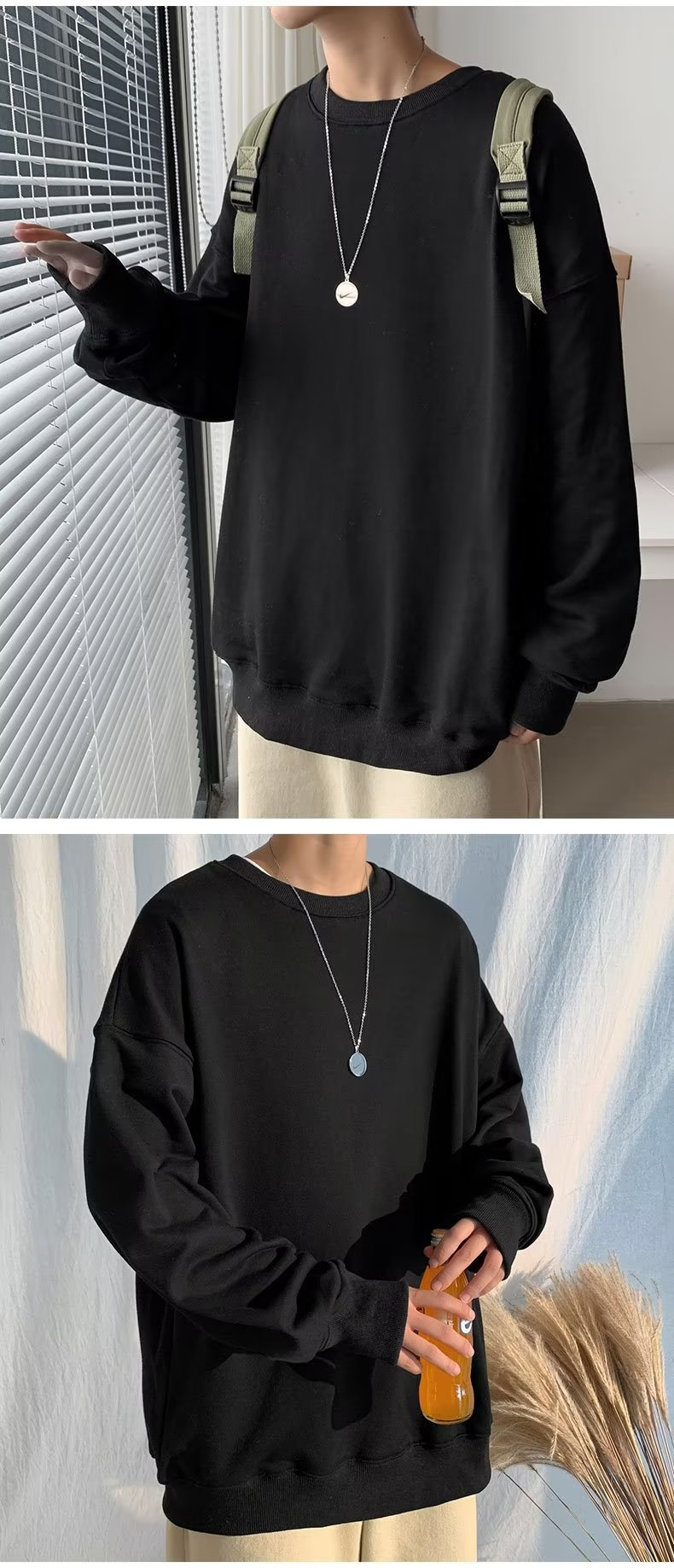 라운드 넥 스웨터 남성 봄과 가을 캐주얼 패션 브랜드 느슨한 단색 커플 올 매치 긴 소매 탑 소년 바닥 셔츠