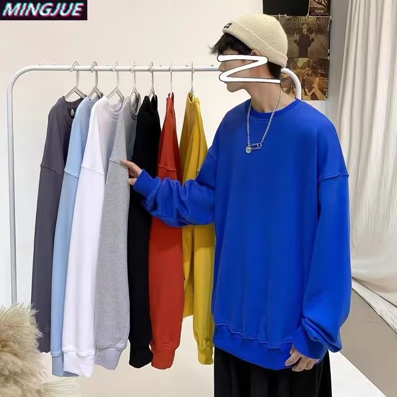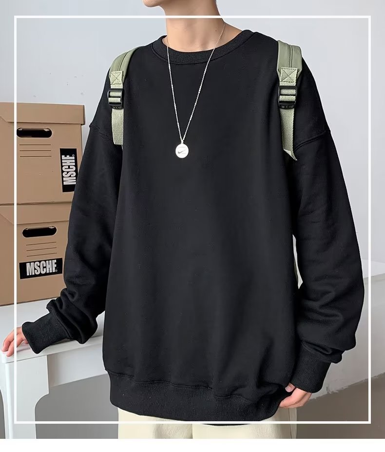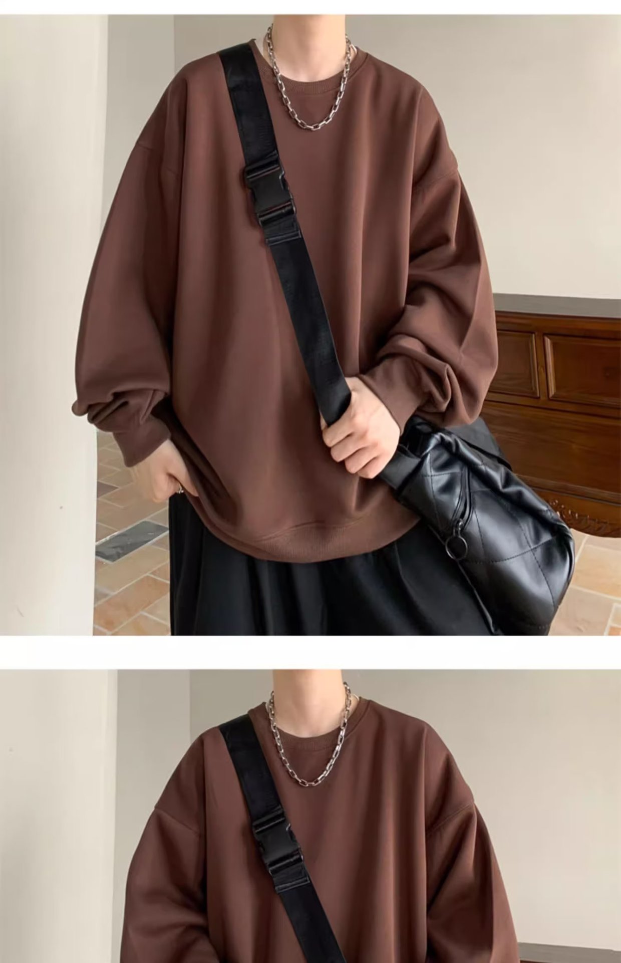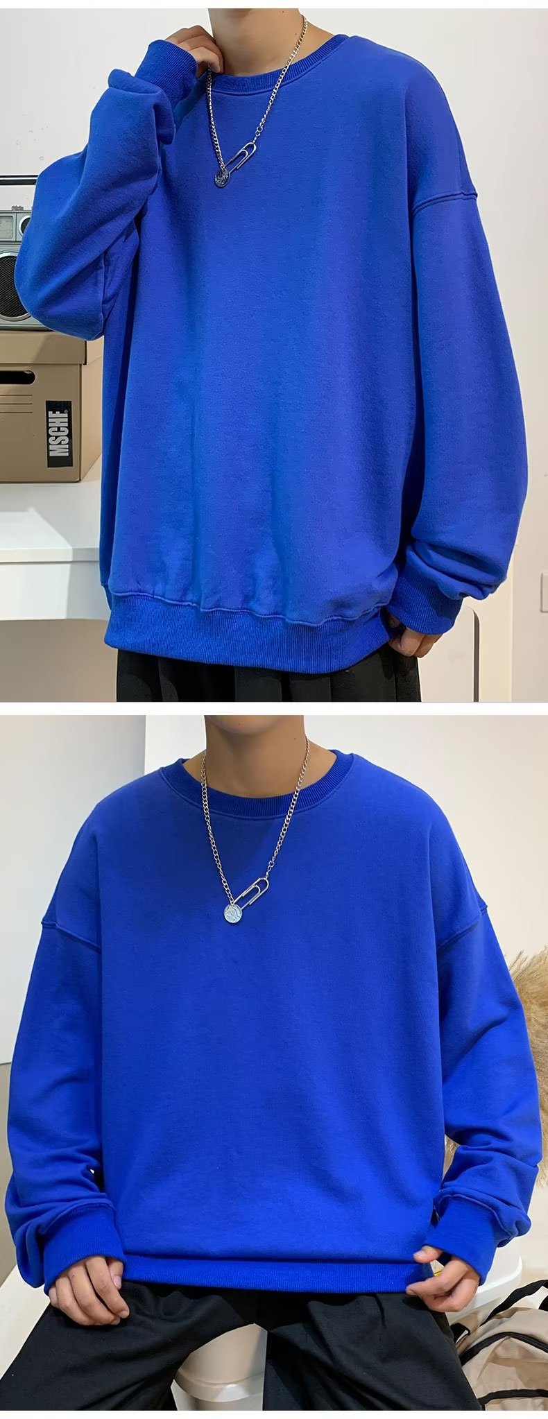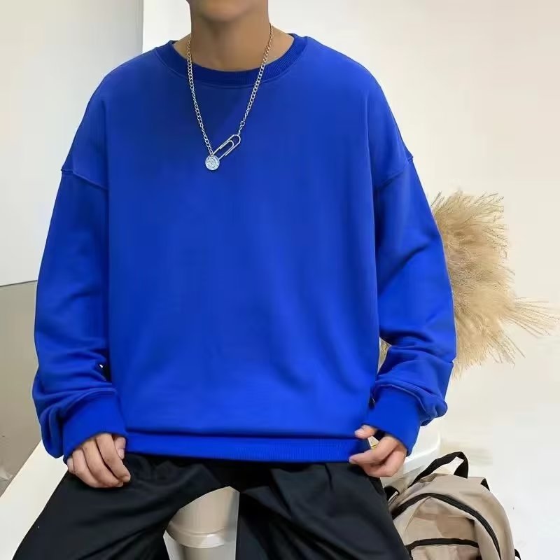 라운드 넥 스웨터 남성 봄과 가을 캐주얼 패션 브랜드 느슨한 단색 커플 올 매치 긴 소매 탑 소년 바닥 셔츠