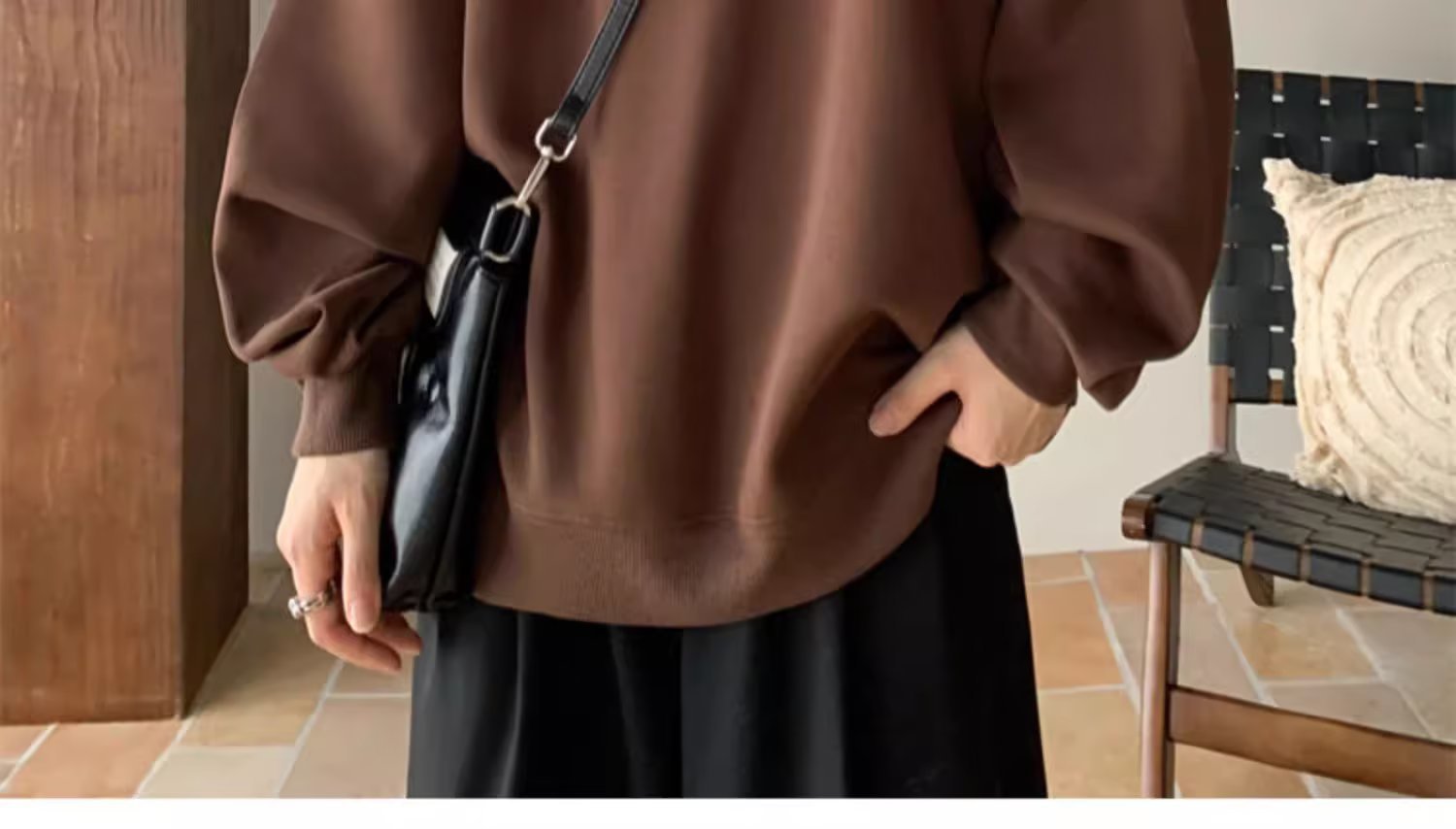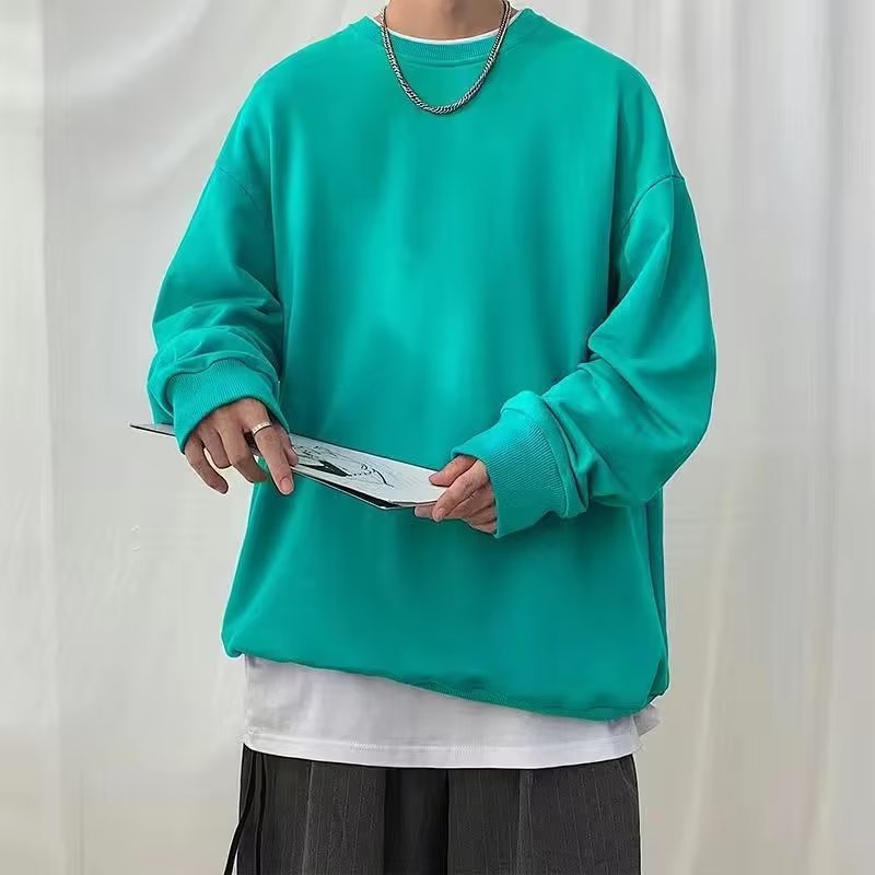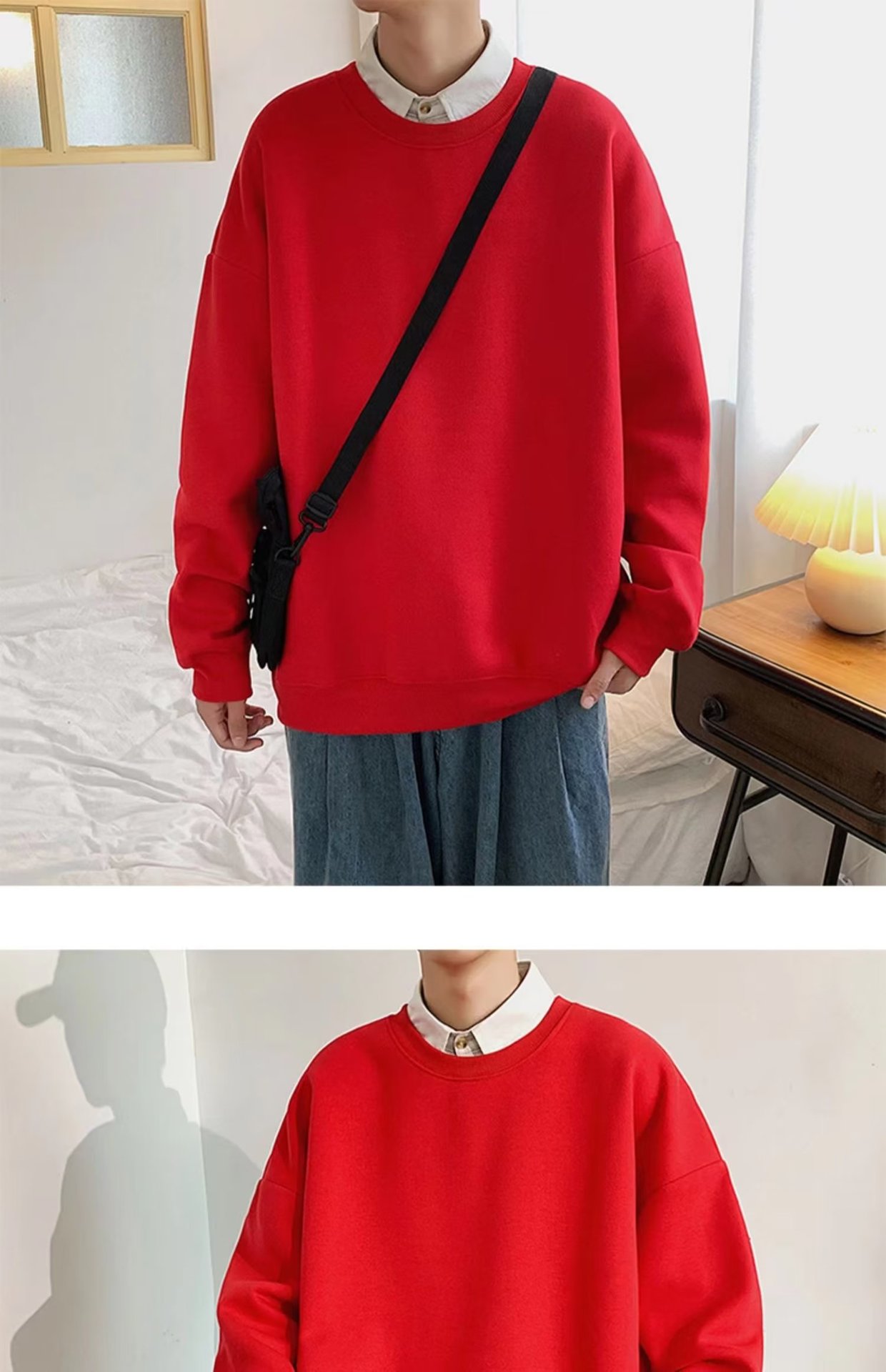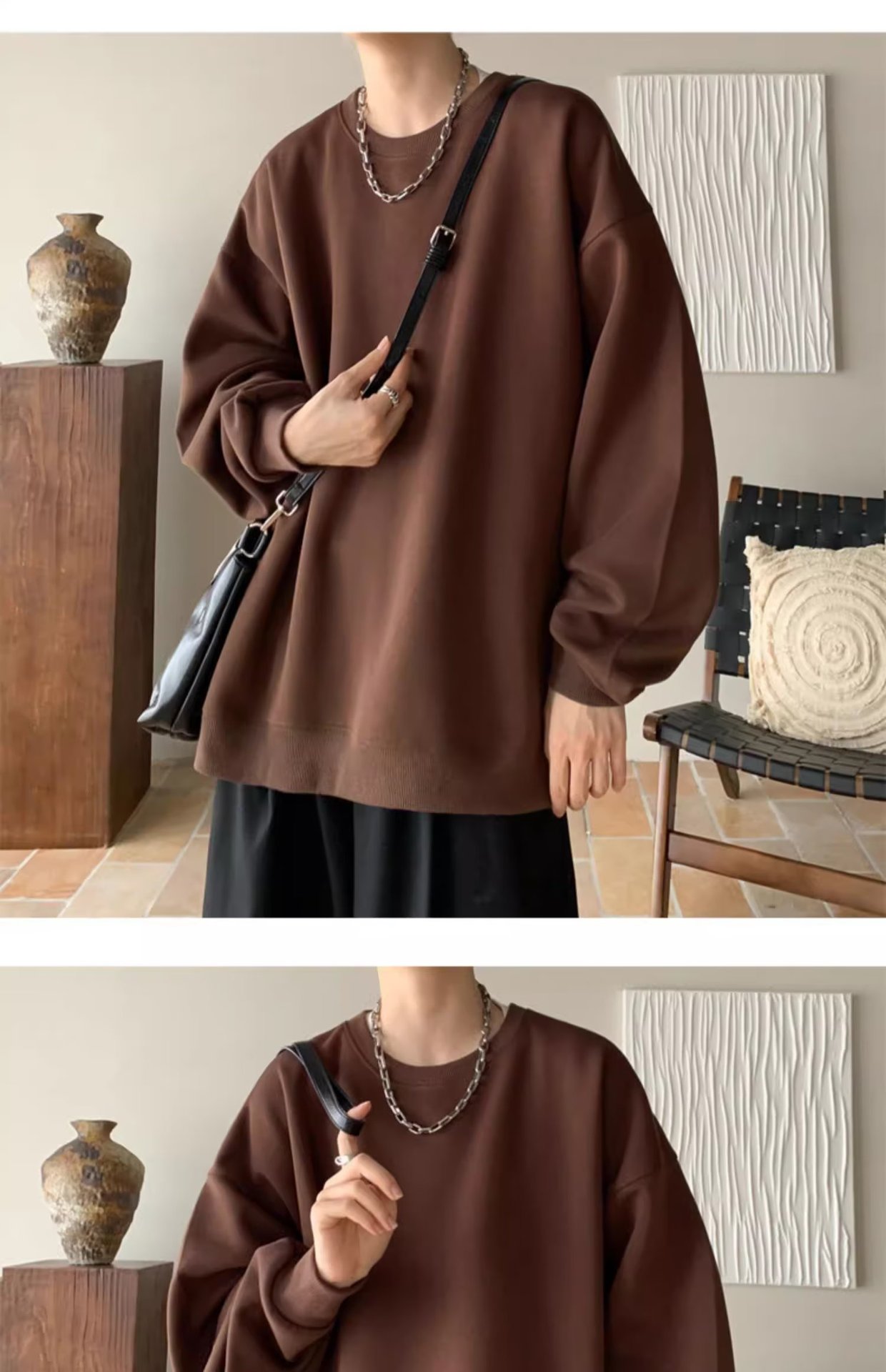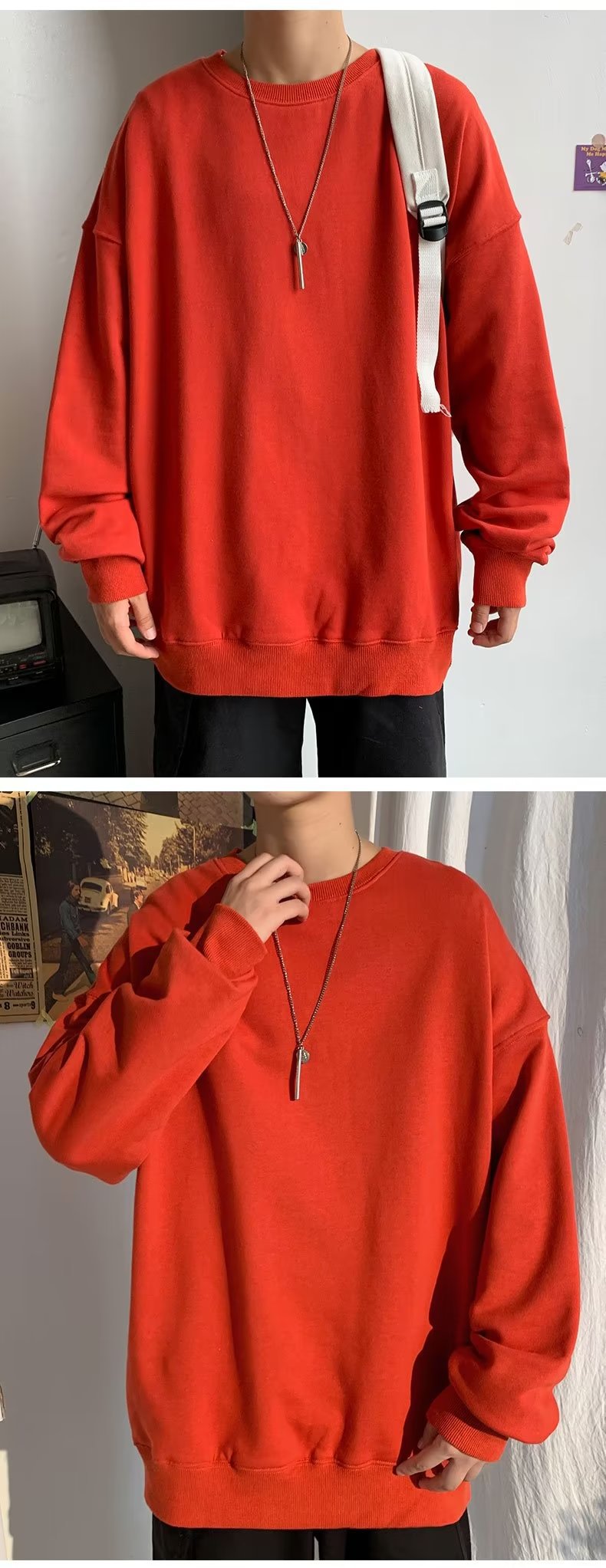 라운드 넥 스웨터 남성 봄과 가을 캐주얼 패션 브랜드 느슨한 단색 커플 올 매치 긴 소매 탑 소년 바닥 셔츠
