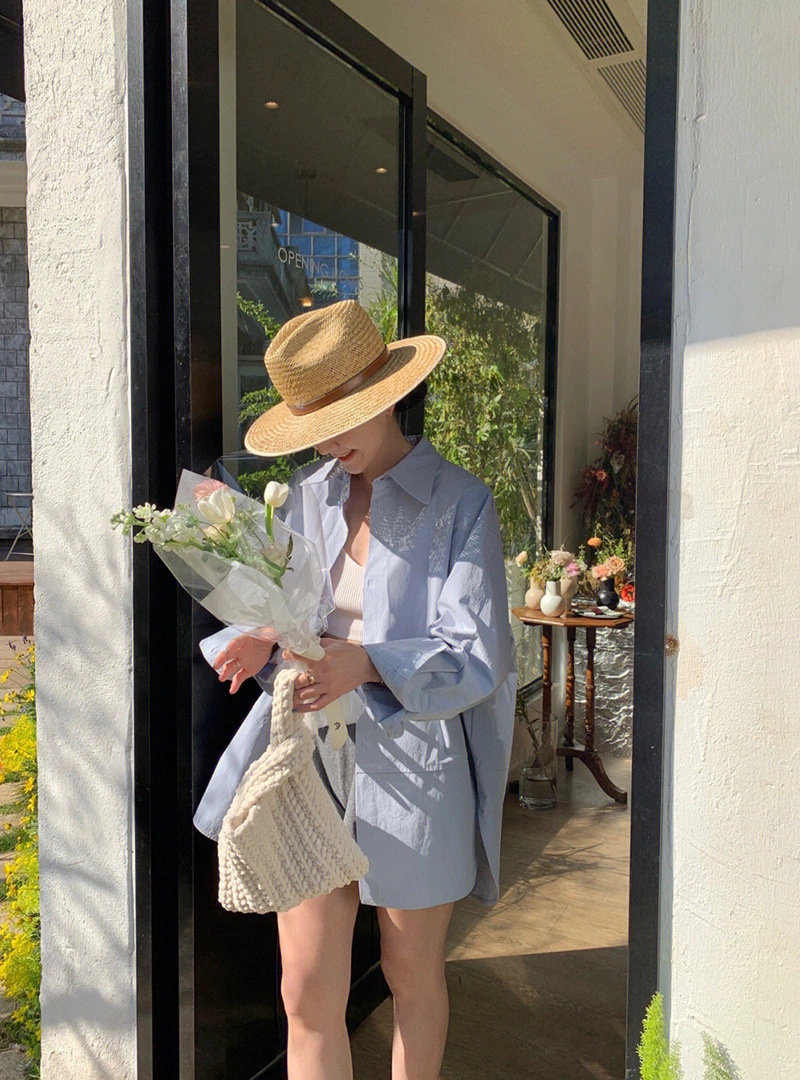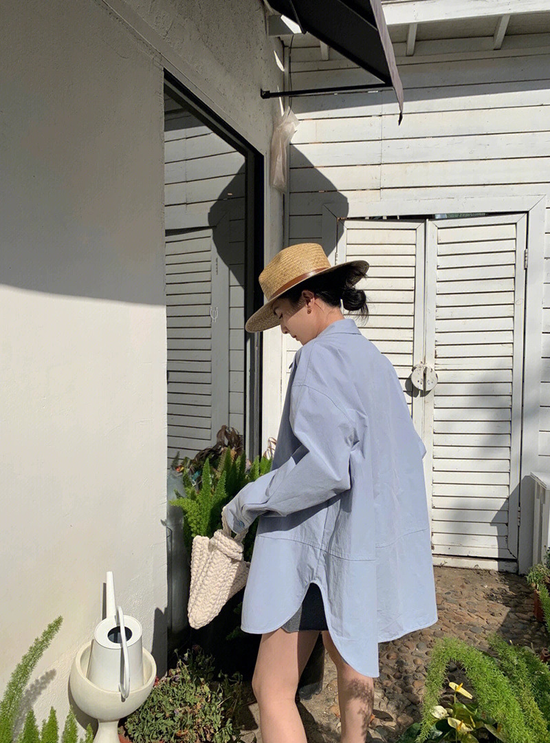 여성을위한 한국 스타일 힙합 블루 긴팔 셔츠 봄, 가을 느슨한 특대 게으른 스타일 다목적 캐주얼 셔츠 트렌드스토어 가기