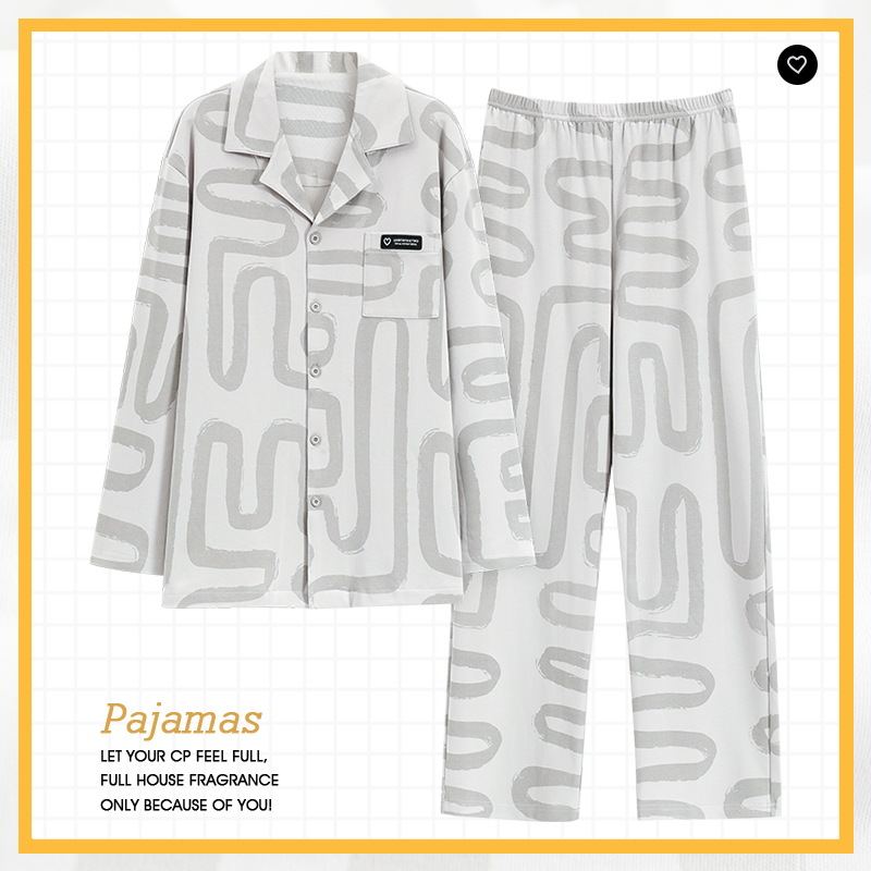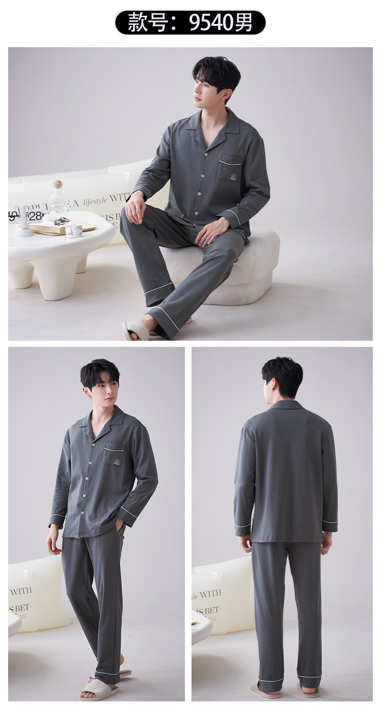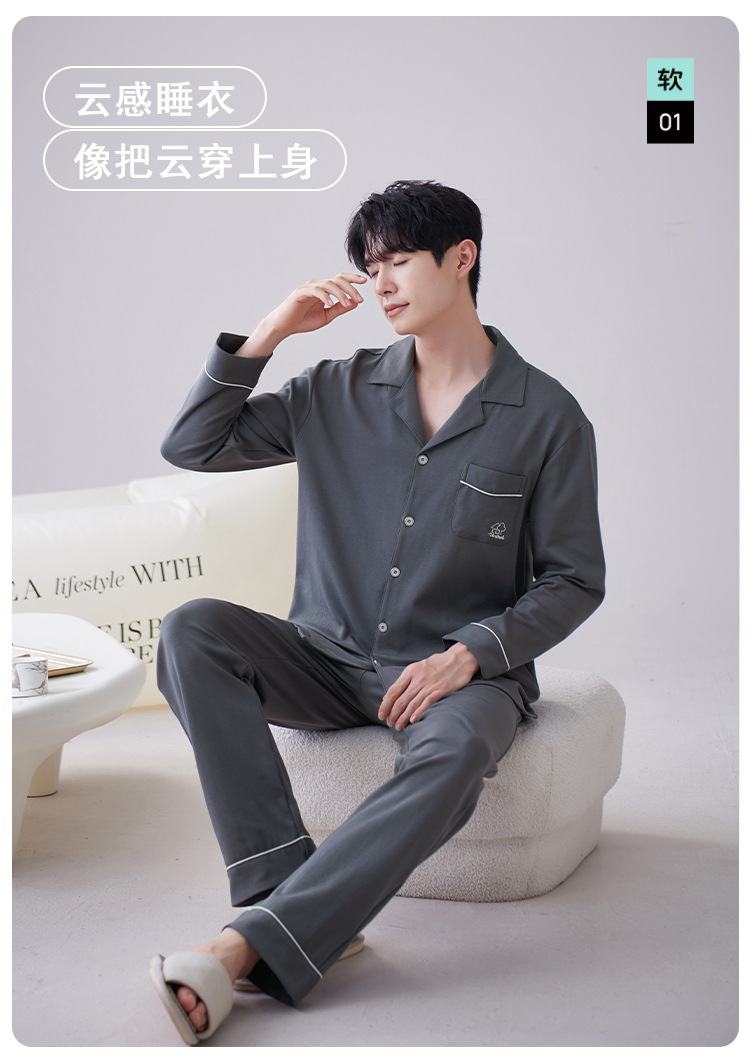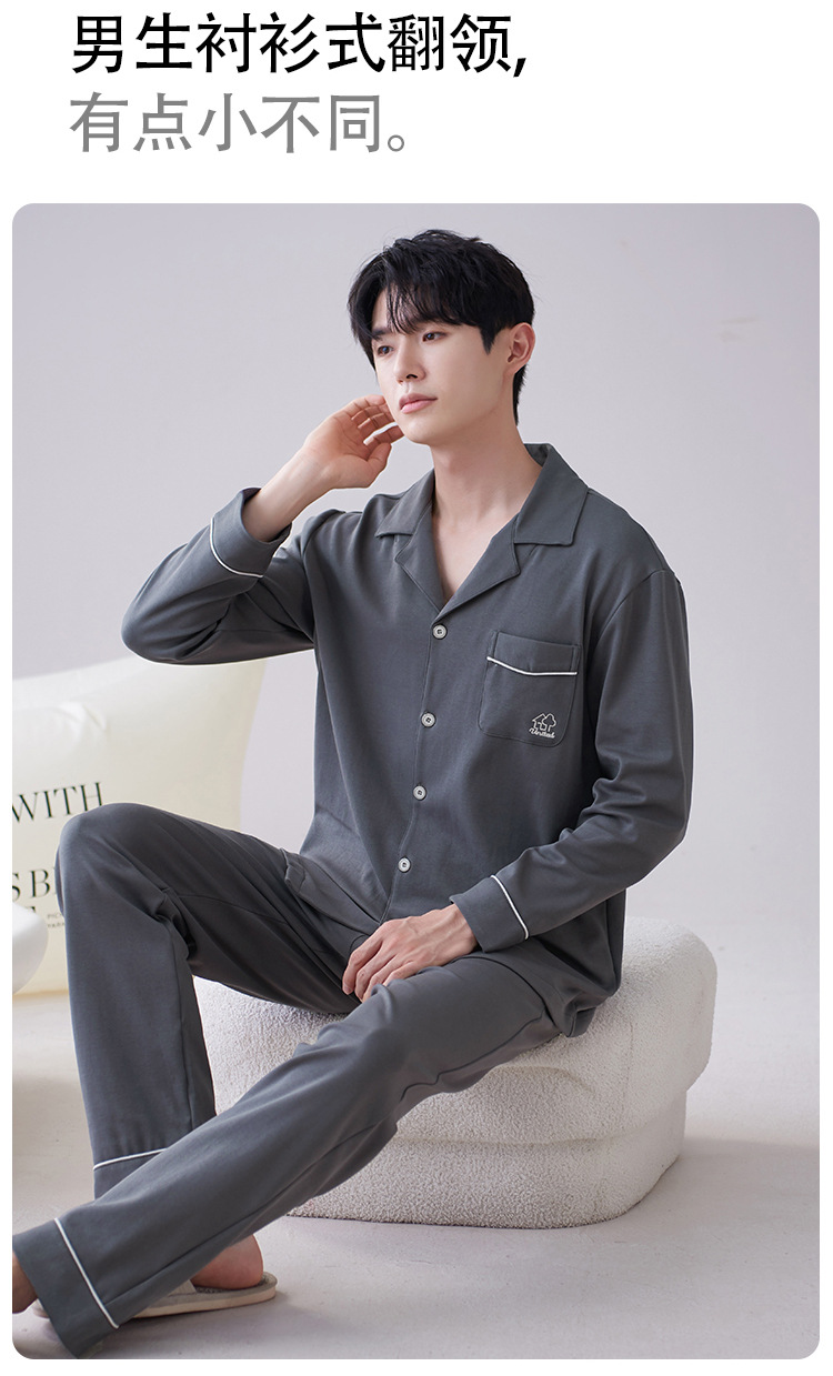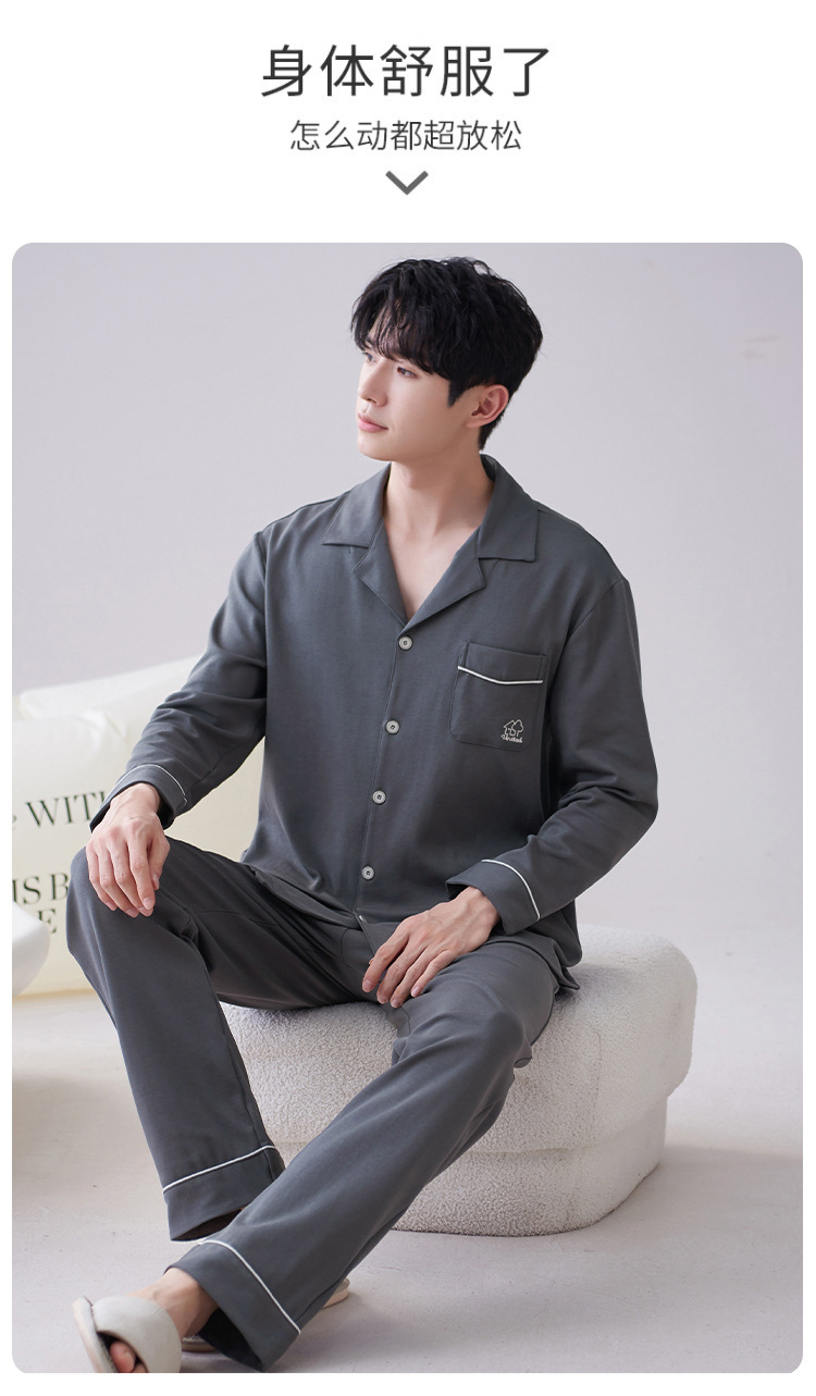 [7A 항균] 남성용 잠옷 봄, 가을 순면 2025 신상 긴팔 바지 남성용 면 홈웨어 세트