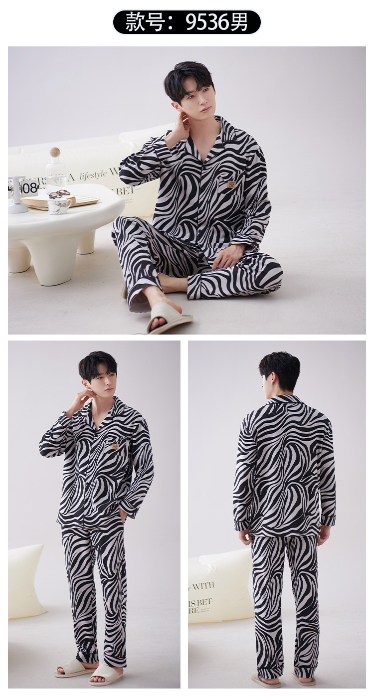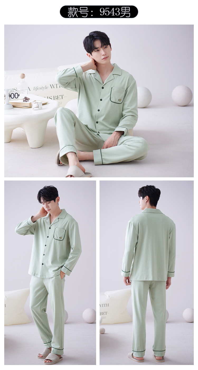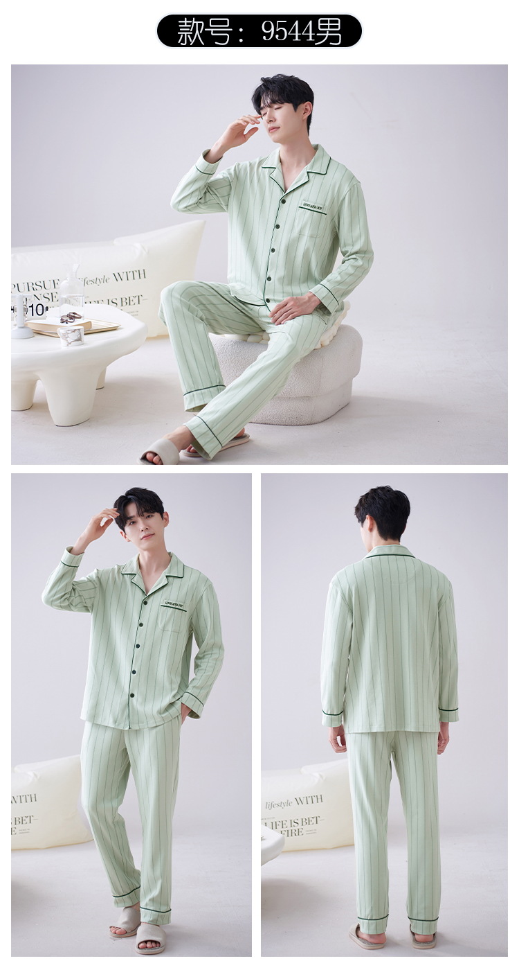 [7A 항균] 남성용 잠옷 봄, 가을 순면 2025 신상 긴팔 바지 남성용 면 홈웨어 세트스토어 가기