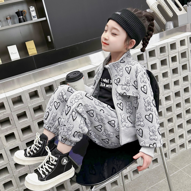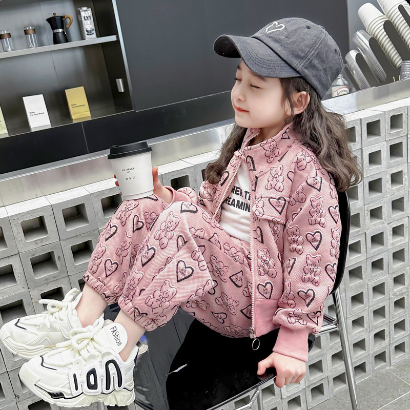 소녀의 봄과 가을 세트 2024 새로운 아기 유행 투피스 세트 어린이 봄 카디건 스포츠 세트