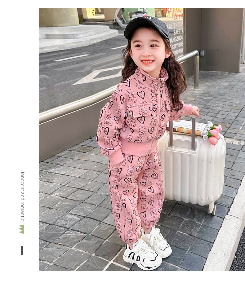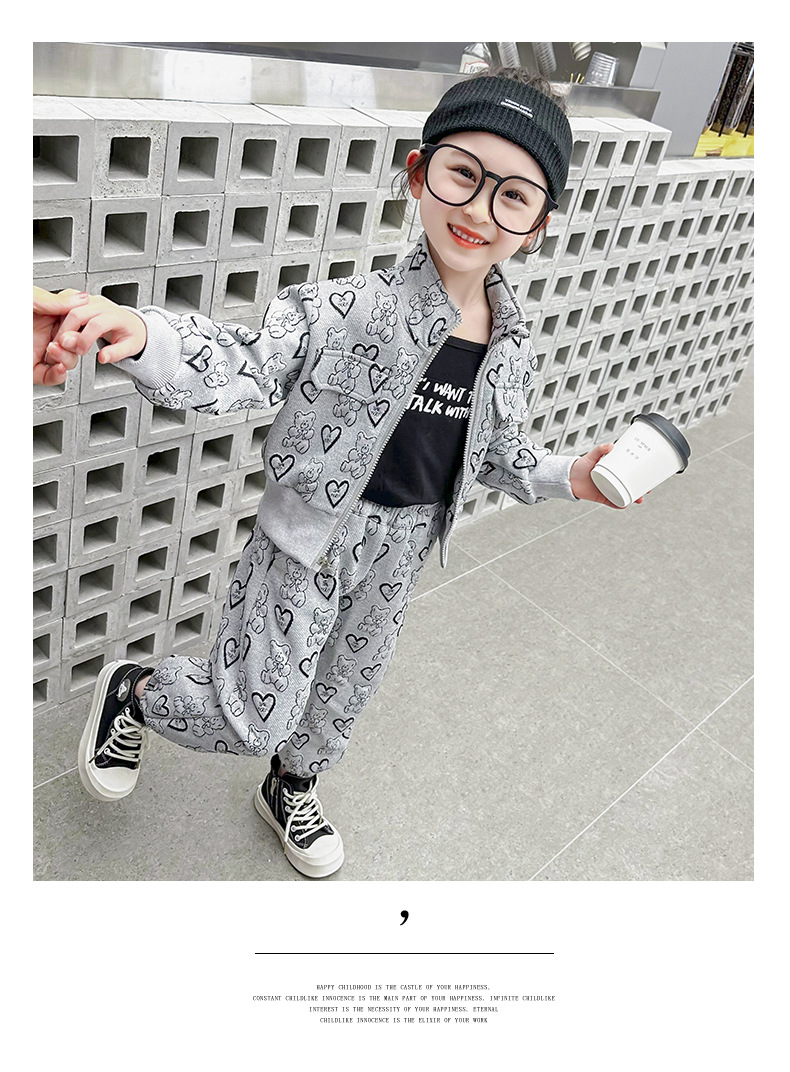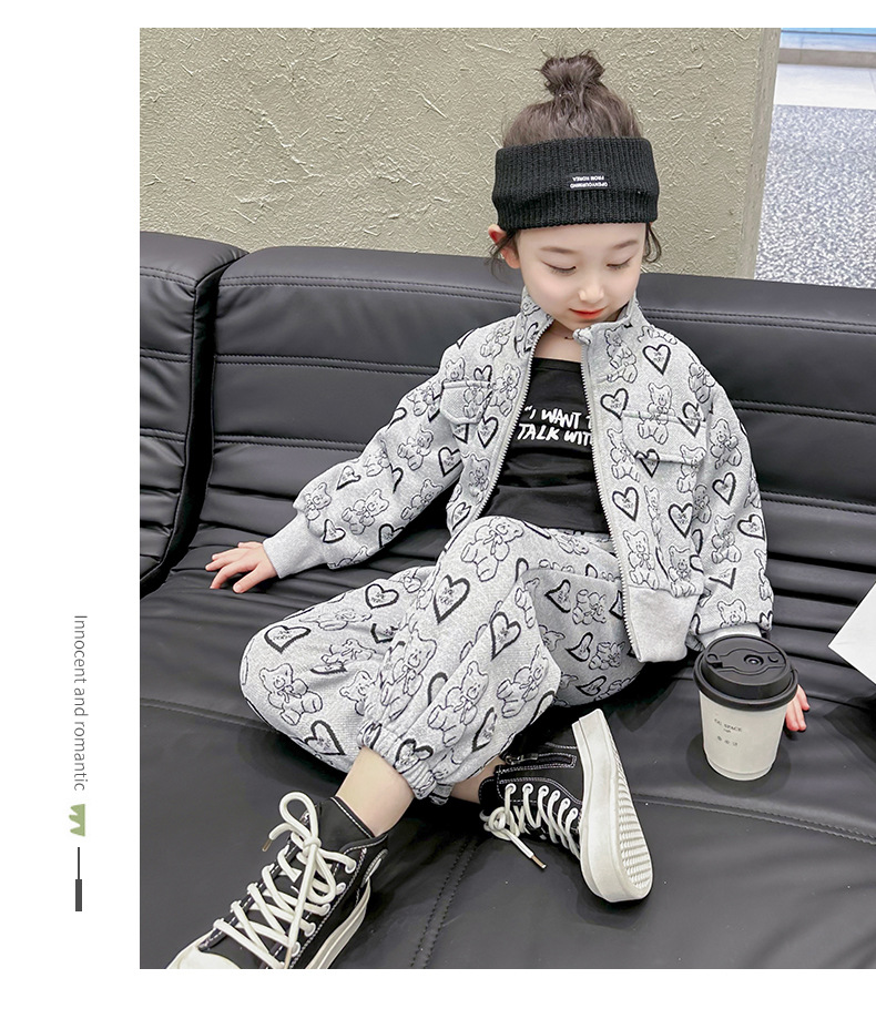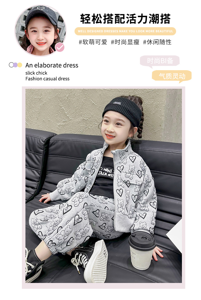 소녀의 봄과 가을 세트 2024 새로운 아기 유행 투피스 세트 어린이 봄 카디건 스포츠 세트스토어 가기