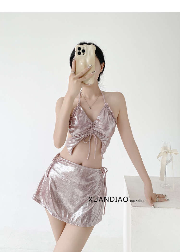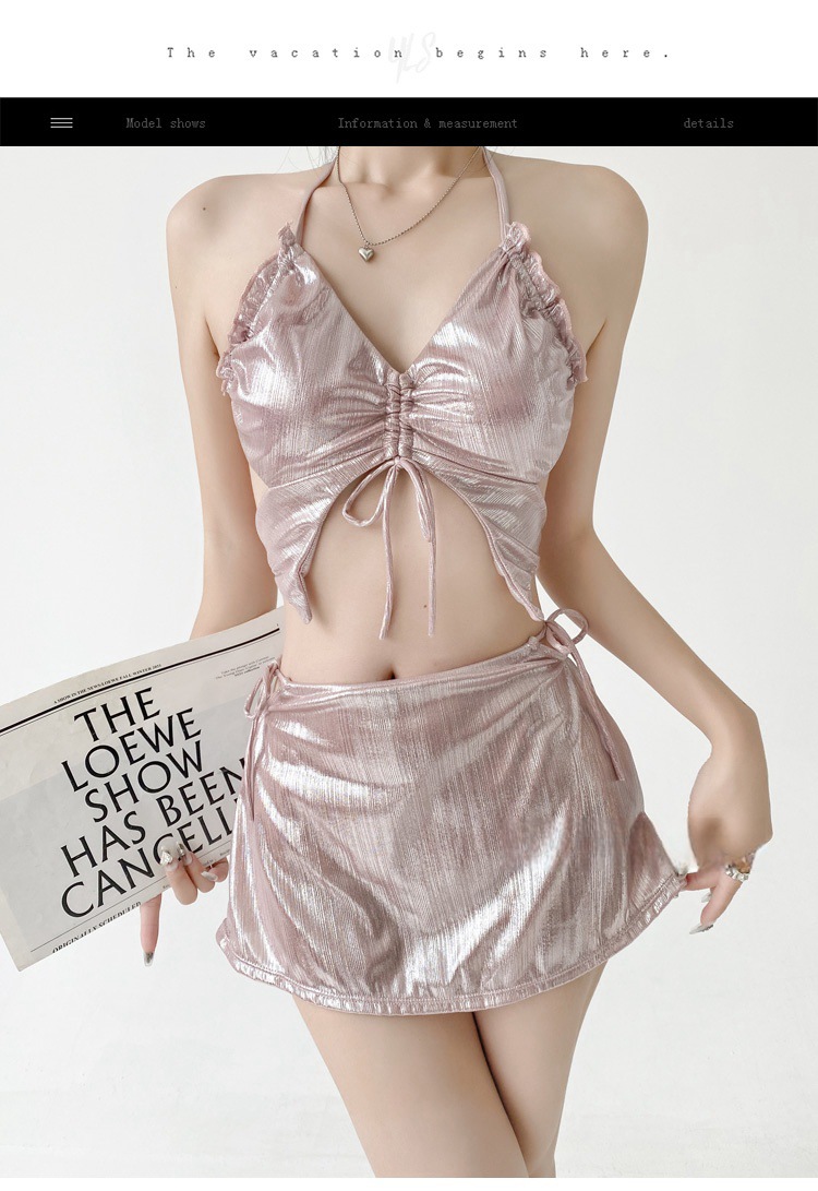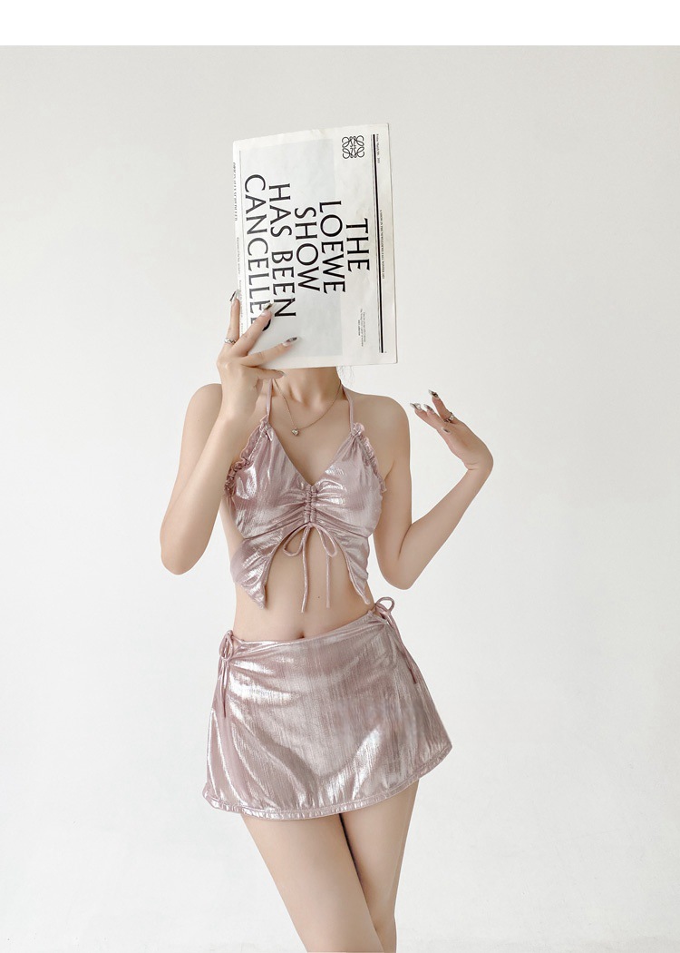 2024 새로운 도착 수영복 여성 유지 플루 리오 파우더 비키니 스커트 뜨거운 소녀 수영복 여성 온천 휴가