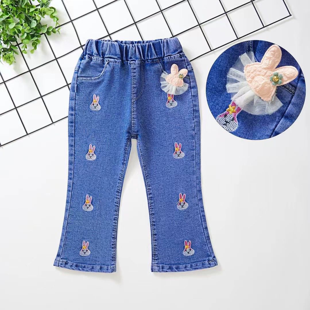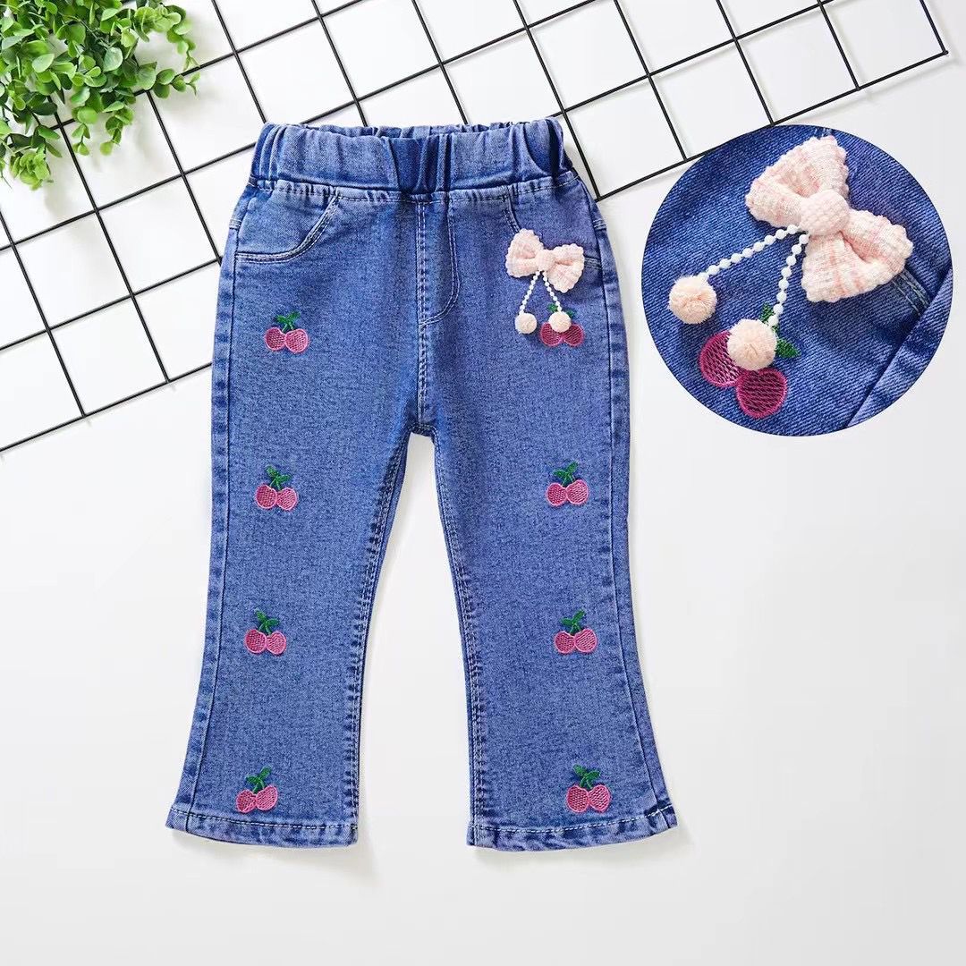 어린이 청바지 봄과 가을 소녀 구슬로 뻗은 바지 중소 어린이 소년 만화 스티커 데님 바지스토어 가기