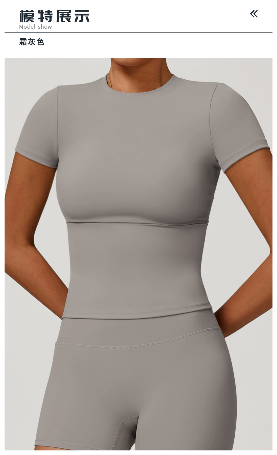 제추앙 봄 티셔츠 빠른 건조 요가 세트 반팔 피트니스 탑 블라우스 야외 달리기 반팔 여성 8455