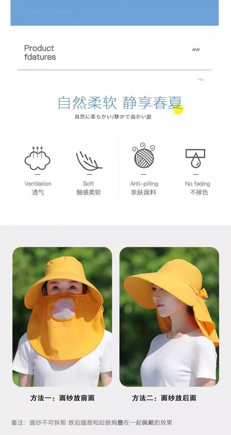새로운 선 스크린 모자 방풍 방진 얼굴 목 보호 여성 사이클링 여름 태양 모자 야외 작업 필드 차 따기 모자스토어 가기