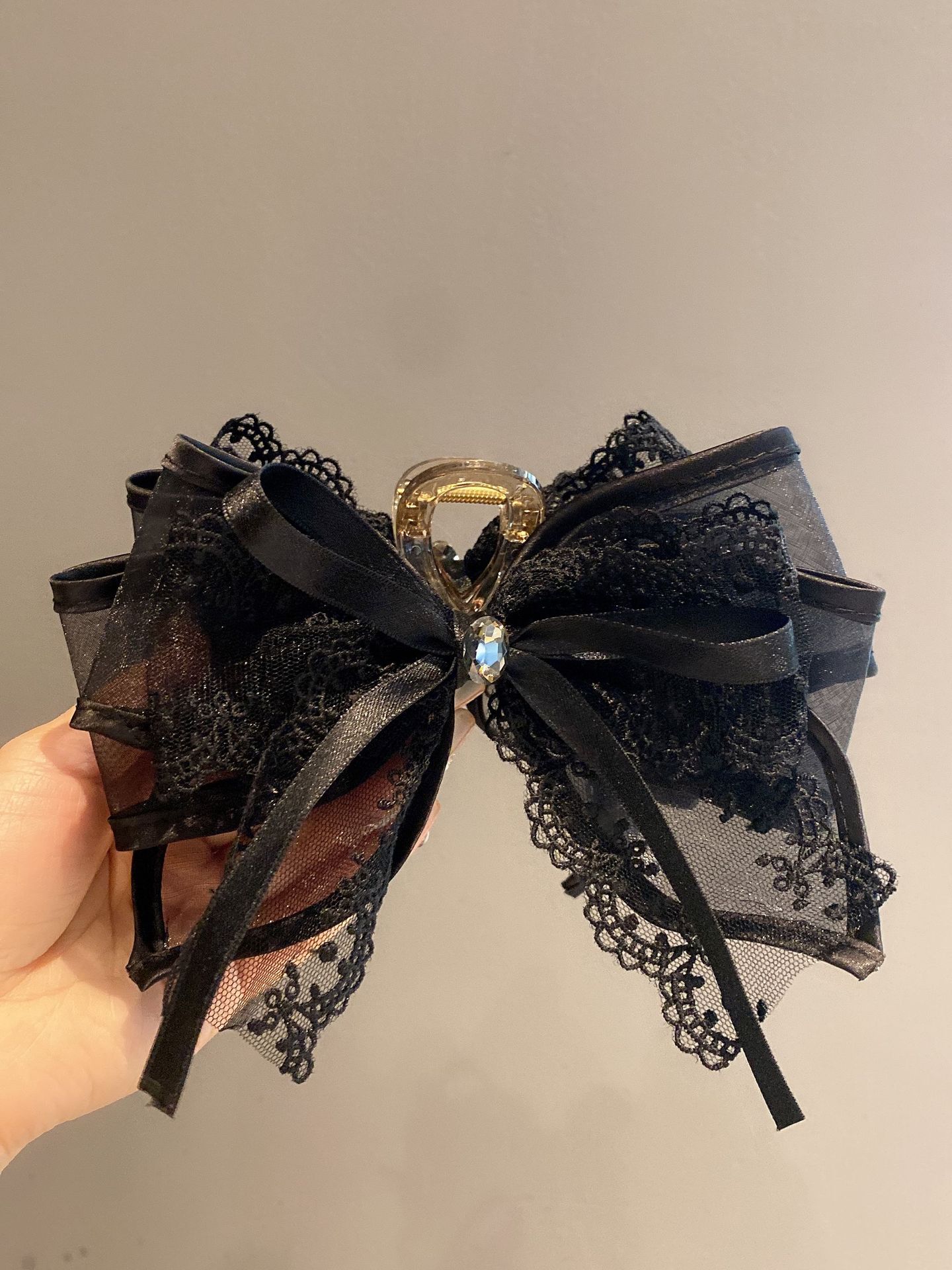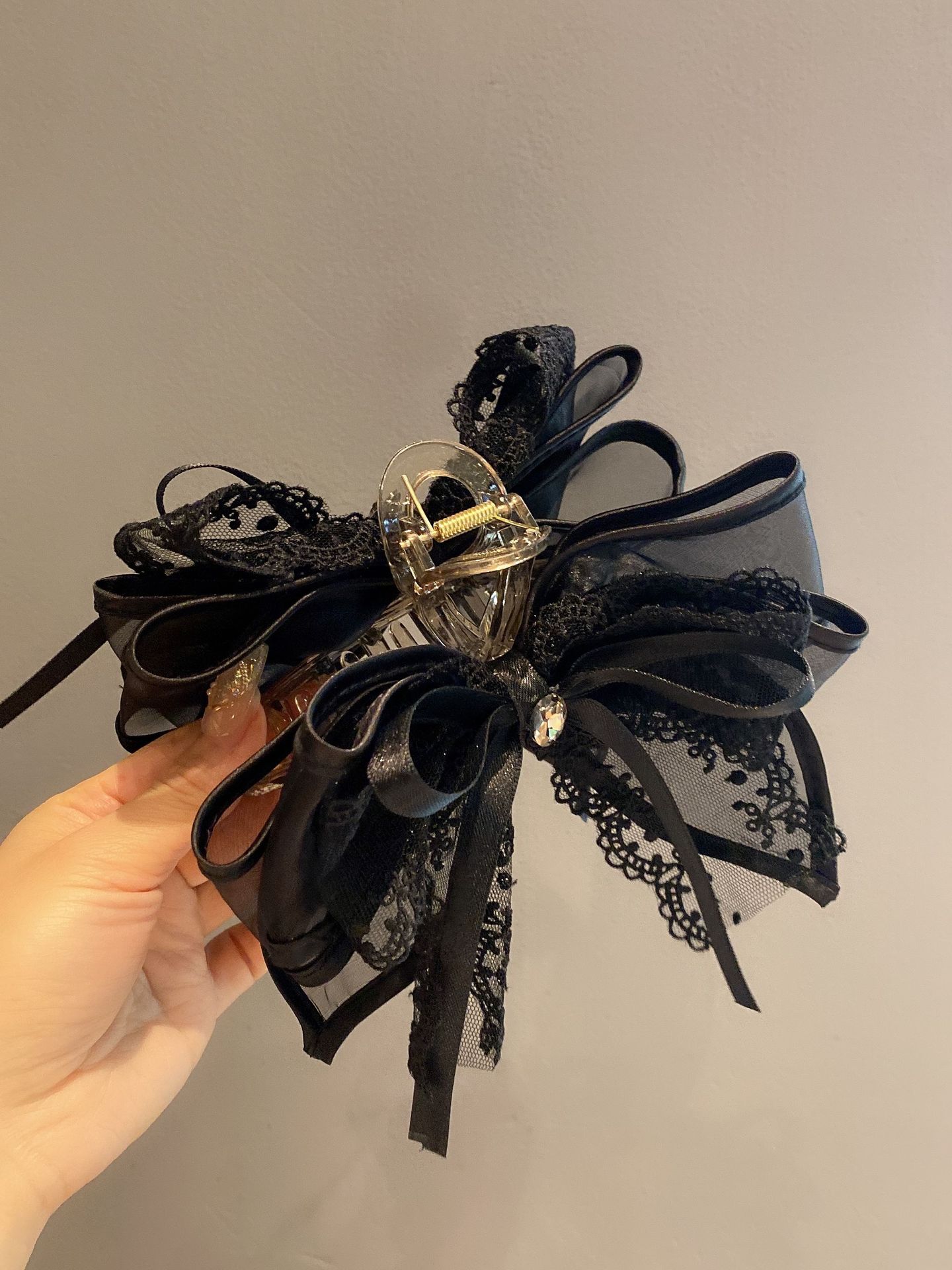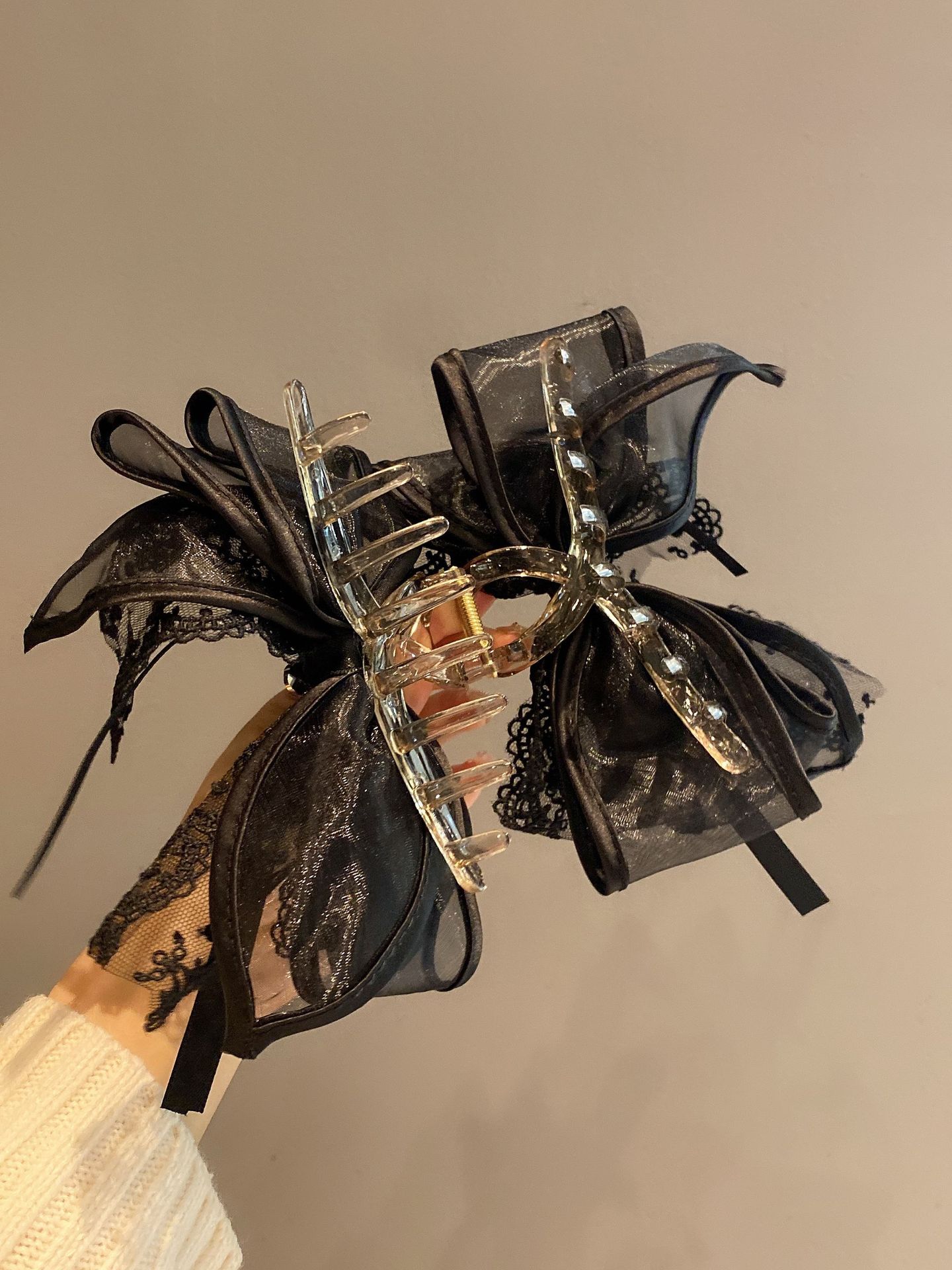 블랙 레이스 오간자 활 클립 하이 엔드 감각 틈새 인 패션 라이트 럭셔리 상어 클립 새로운 헤어 액세서리스토어 가기