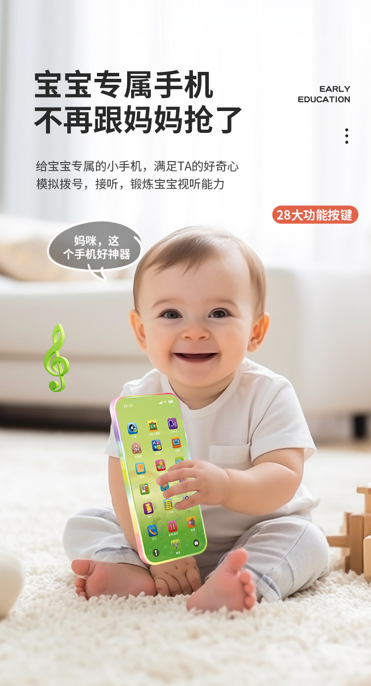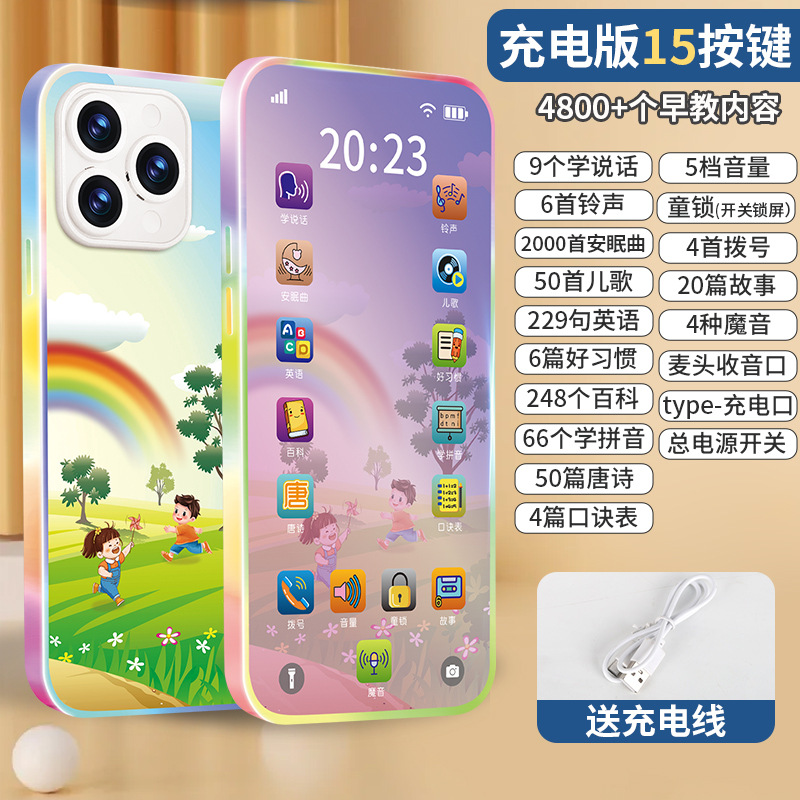 어린이 휴대 전화 장난감 아기 시뮬레이션 전화 아기 퍼즐 조기 교육 모델 어린이 소년 소녀 충전식 터치 스크린