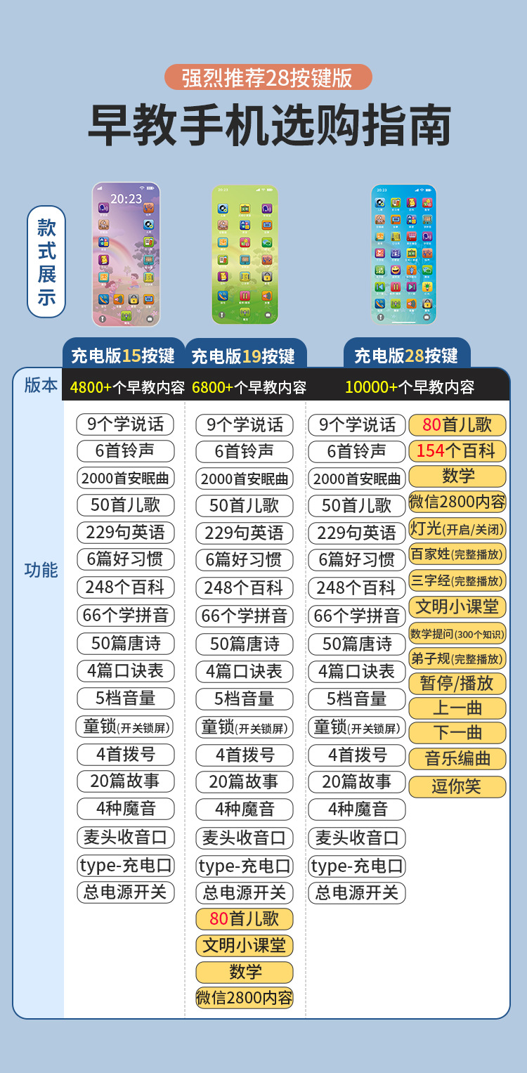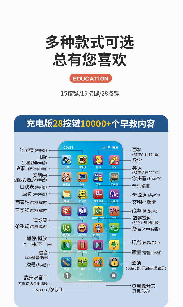 • 28 버튼 어린이 휴대 전화 (10000 + 콘텐츠-충전식)