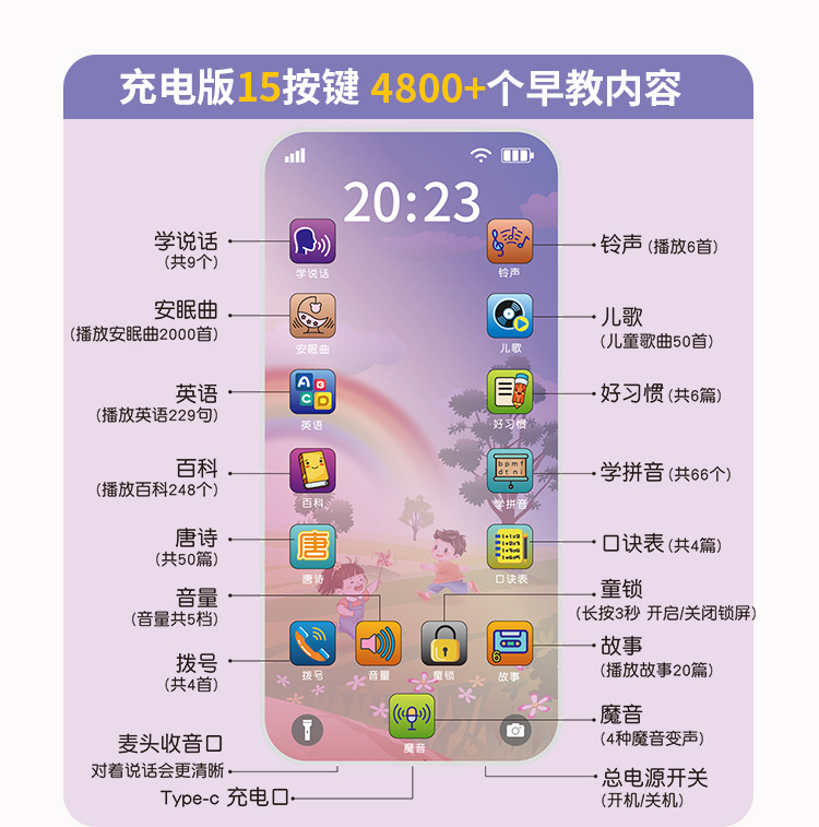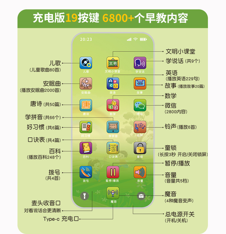 • 19 버튼 어린이 휴대 전화 (6800 + 콘텐츠-충전식)