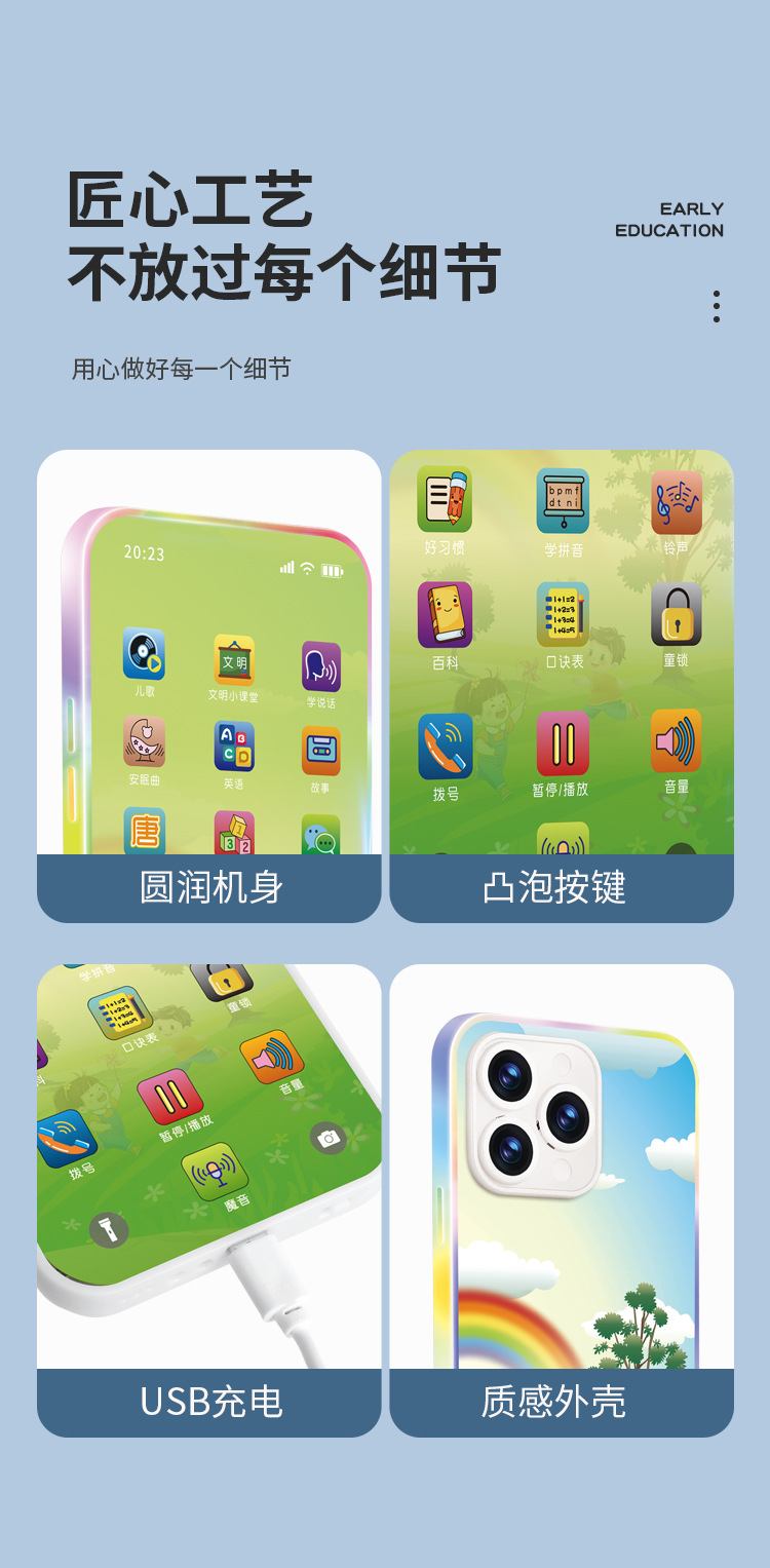 어린이 휴대 전화 장난감 아기 시뮬레이션 전화 아기 퍼즐 조기 교육 모델 어린이 소년 소녀 충전식 터치 스크린스토어 가기