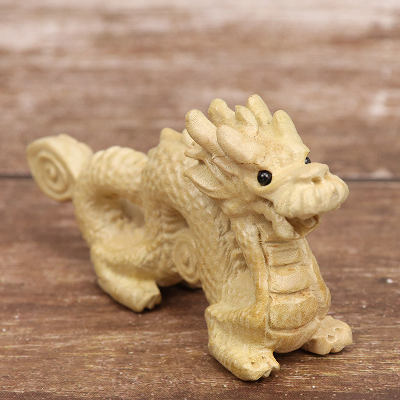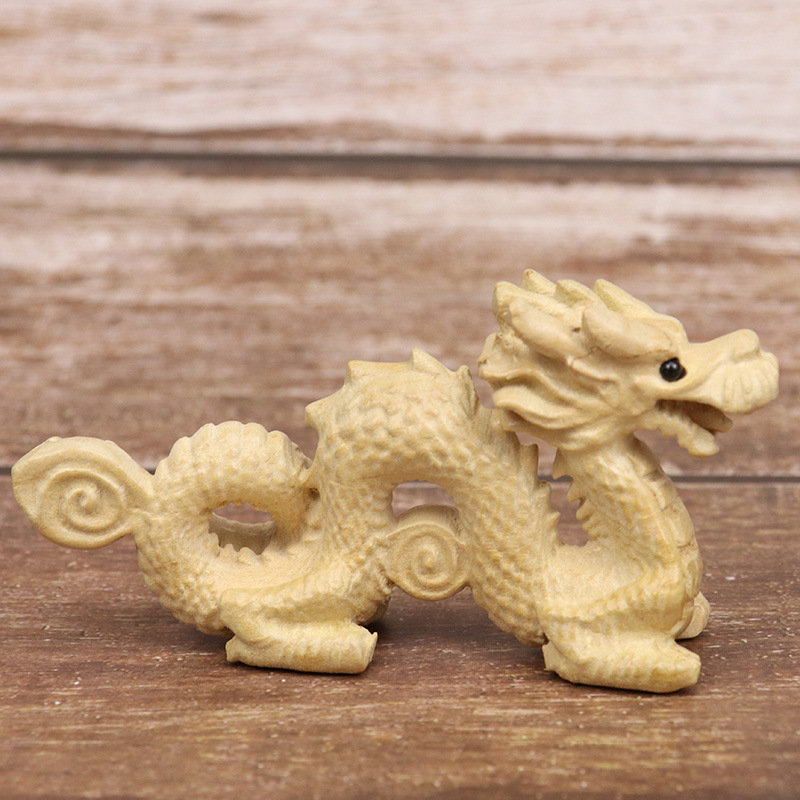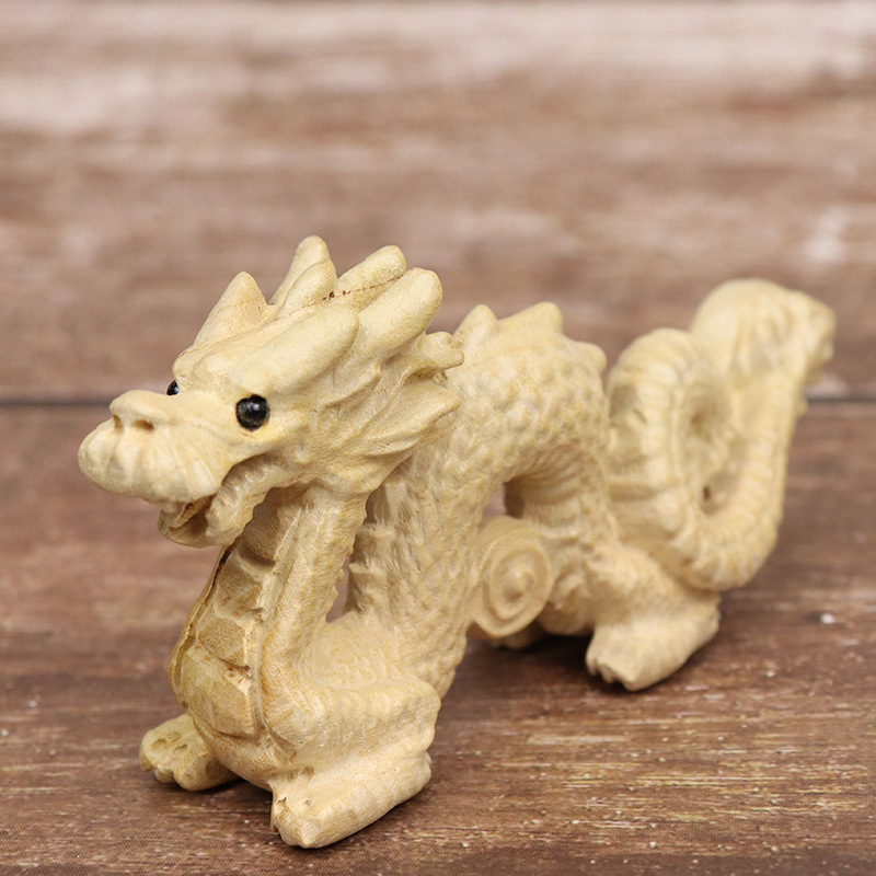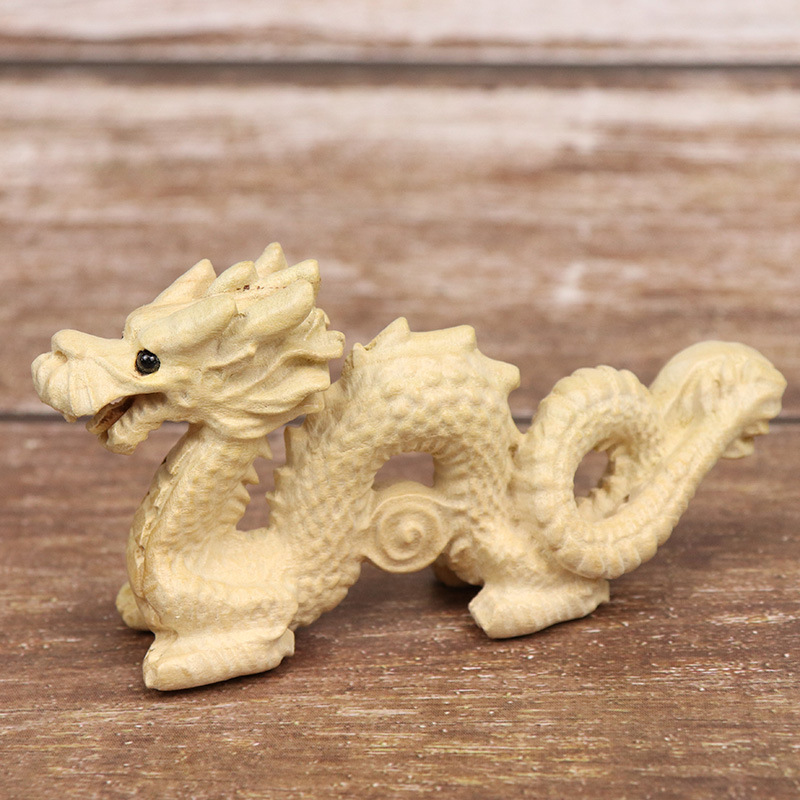 복숭아 나무 조디악 드래곤 홈 장식 나무 Xianglong Wenwan 선물 장식 페인트없이 나무 조각 공예 장식