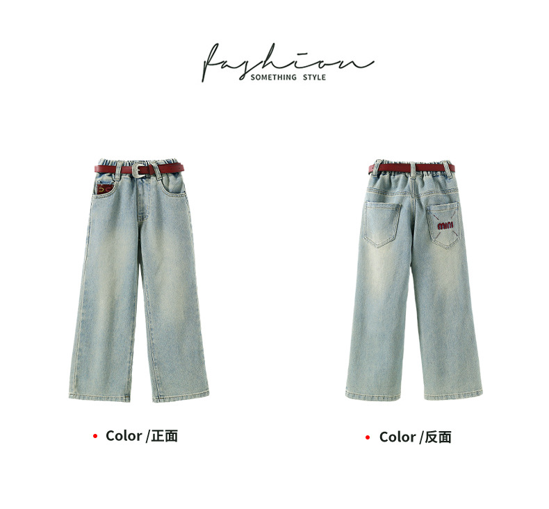 여아용 세련된 청바지 2025 가을 신상 아동 한국 스타일 긴바지 중대형 아동 가을 의류 자수 캐주얼 바지 트렌디