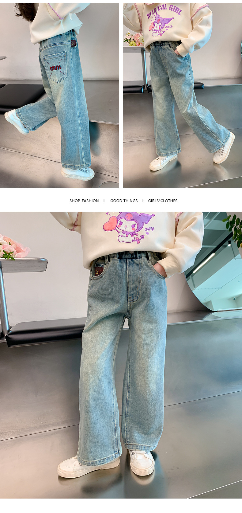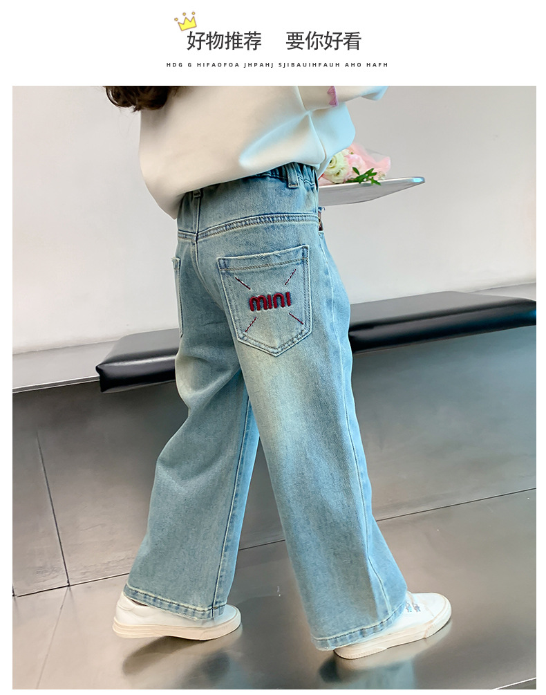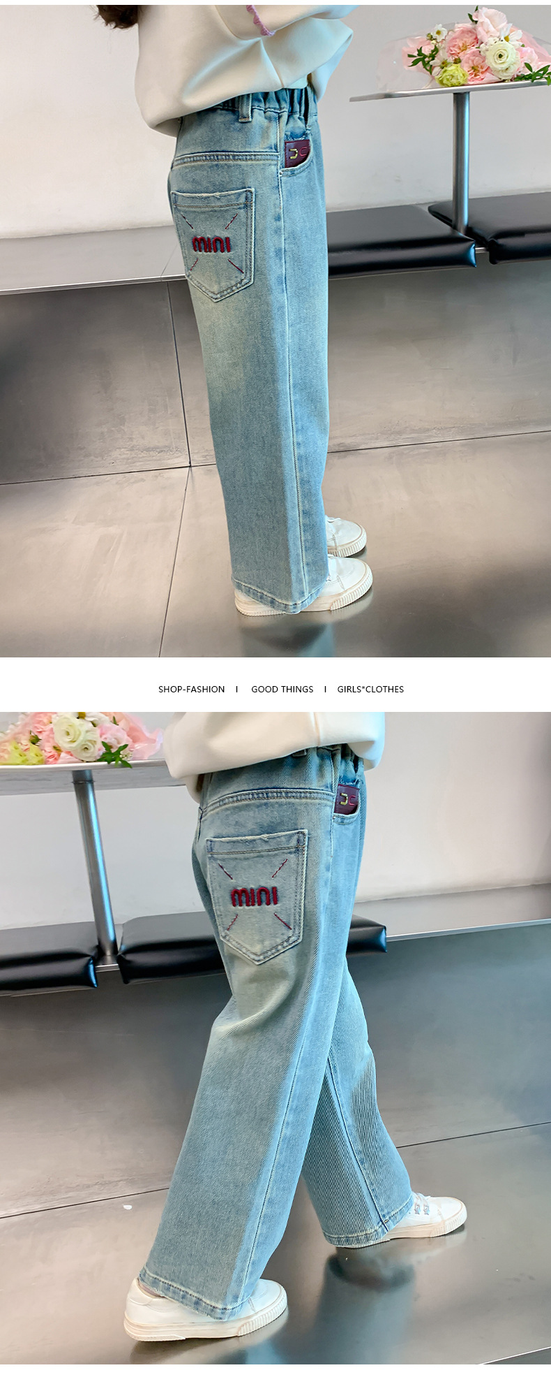 여아용 세련된 청바지 2025 가을 신상 아동 한국 스타일 긴바지 중대형 아동 가을 의류 자수 캐주얼 바지 트렌디스토어 가기