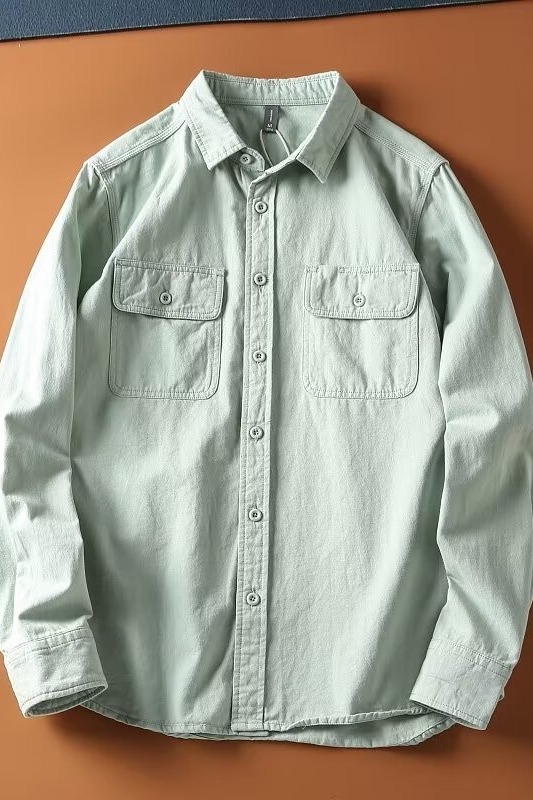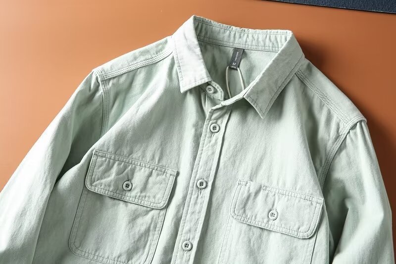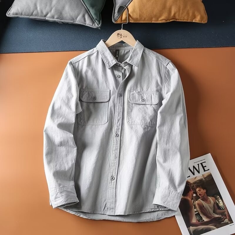 봄과 가을 새로운 미국 긴팔 작업복 셔츠 남성용 트렌디 한 캐주얼 올 매치 셔츠 한국식 루안 잘 생긴 단색 탑스토어 가기