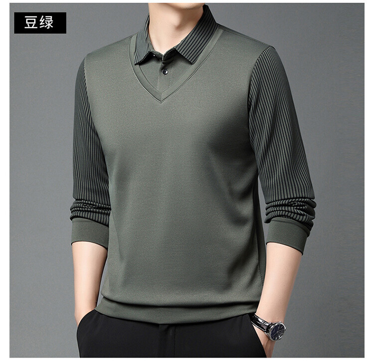 2024 봄, 가을 신상 남성 티셔츠 캐주얼 라펠 페이크 투피스 탑 남성 긴팔 패션 다목적 남성 의류