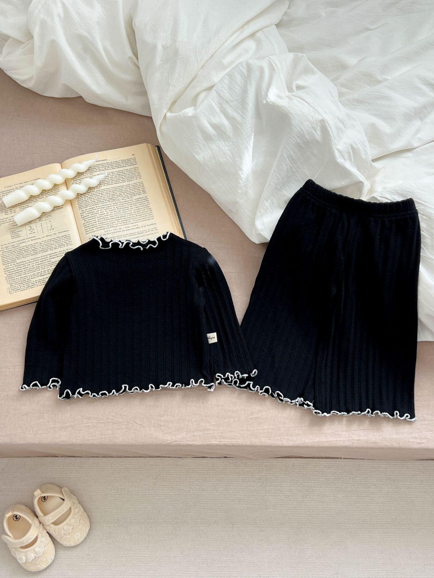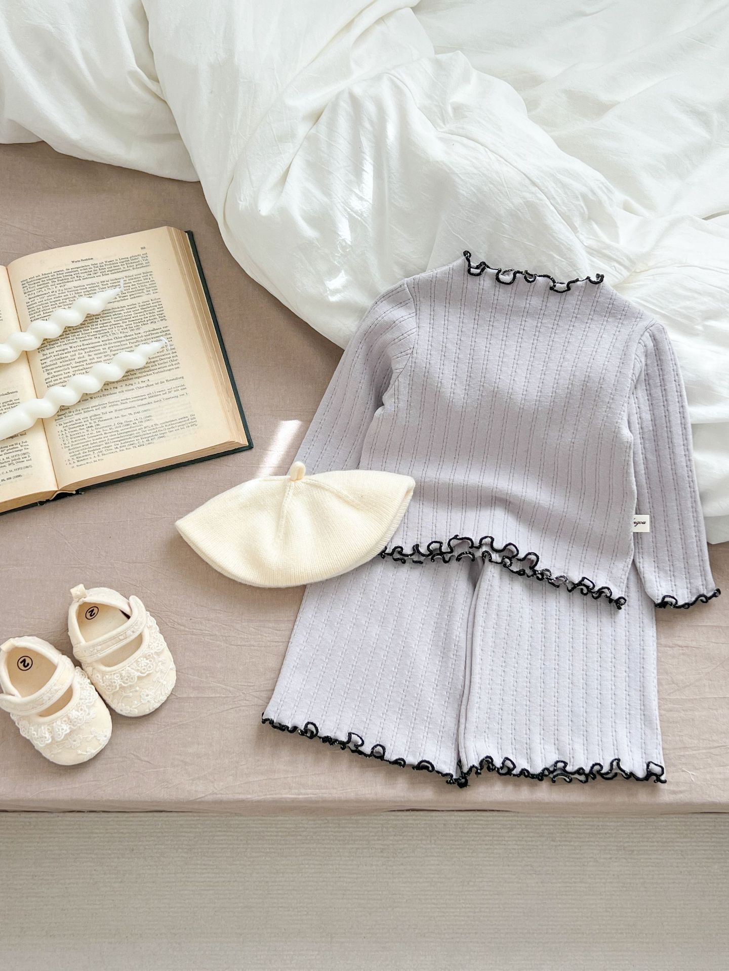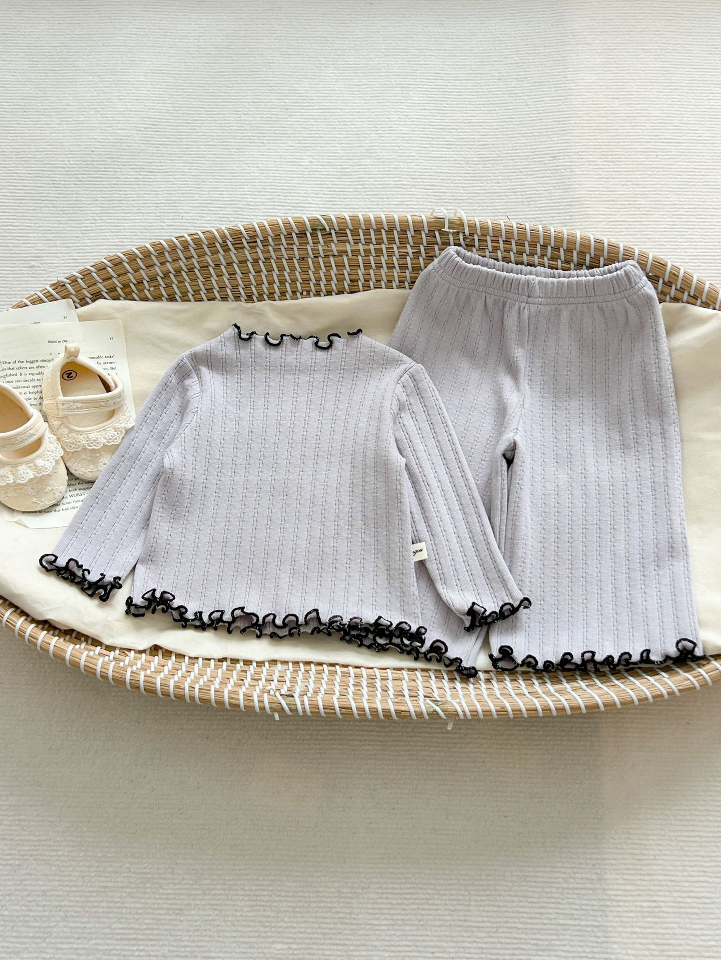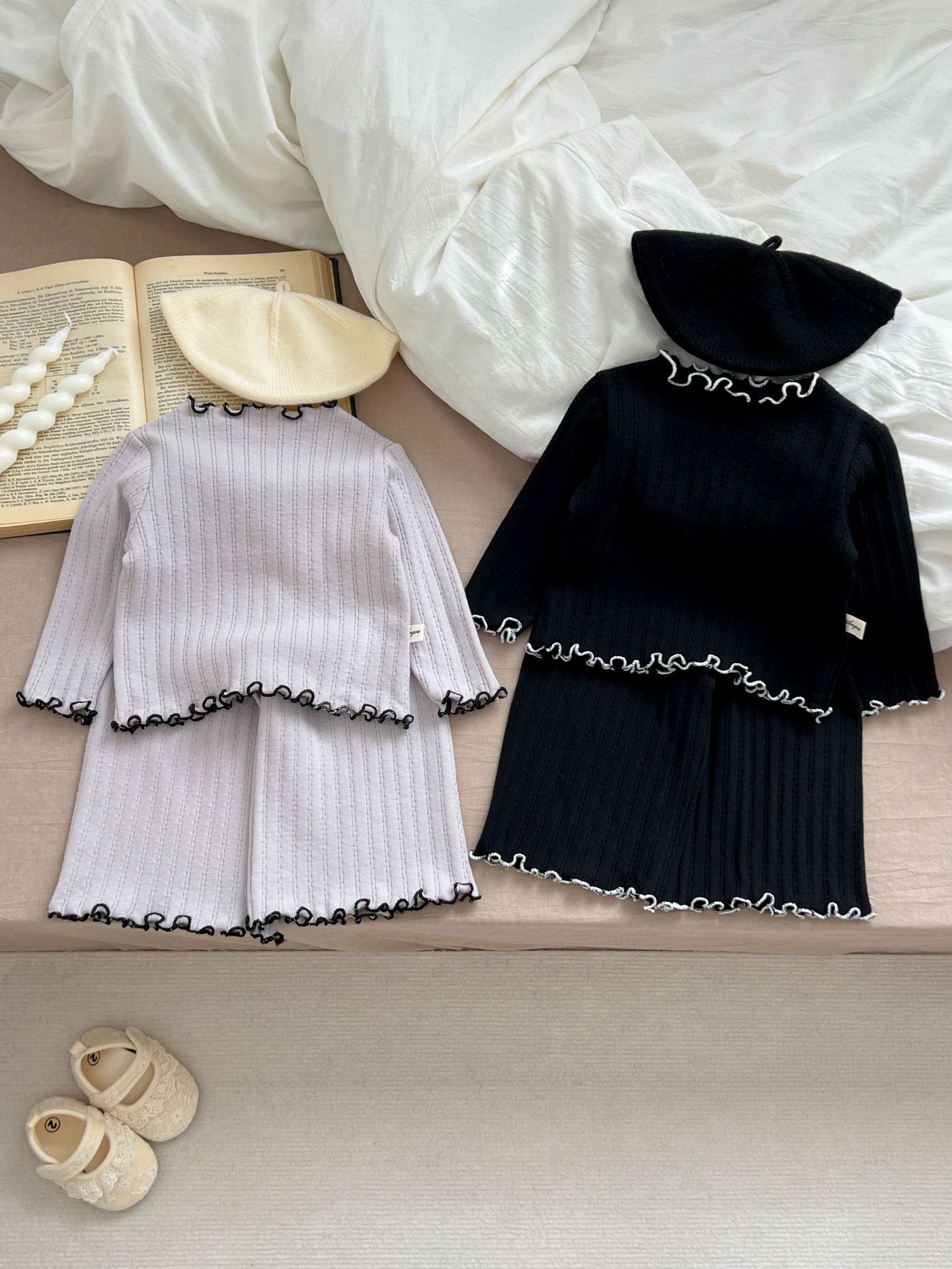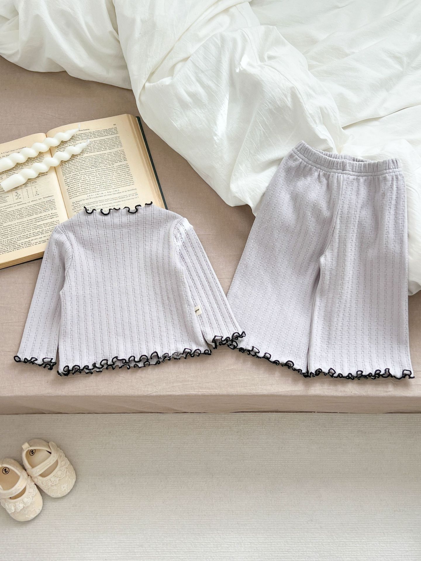 2024 봄 아기 홈 착용 세트 아기 소녀 새로운 줄무늬 귀여운 레이스 긴 소매 유아 투피스 세트스토어 가기