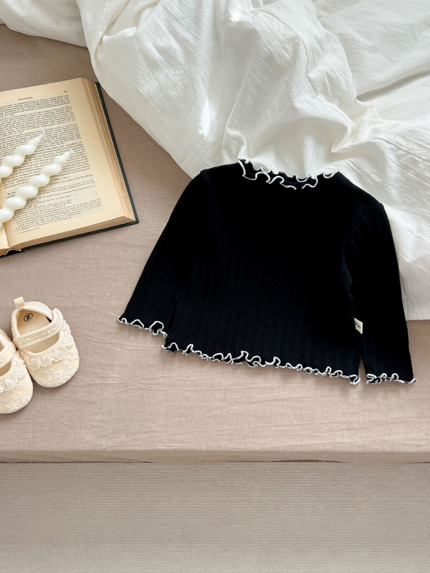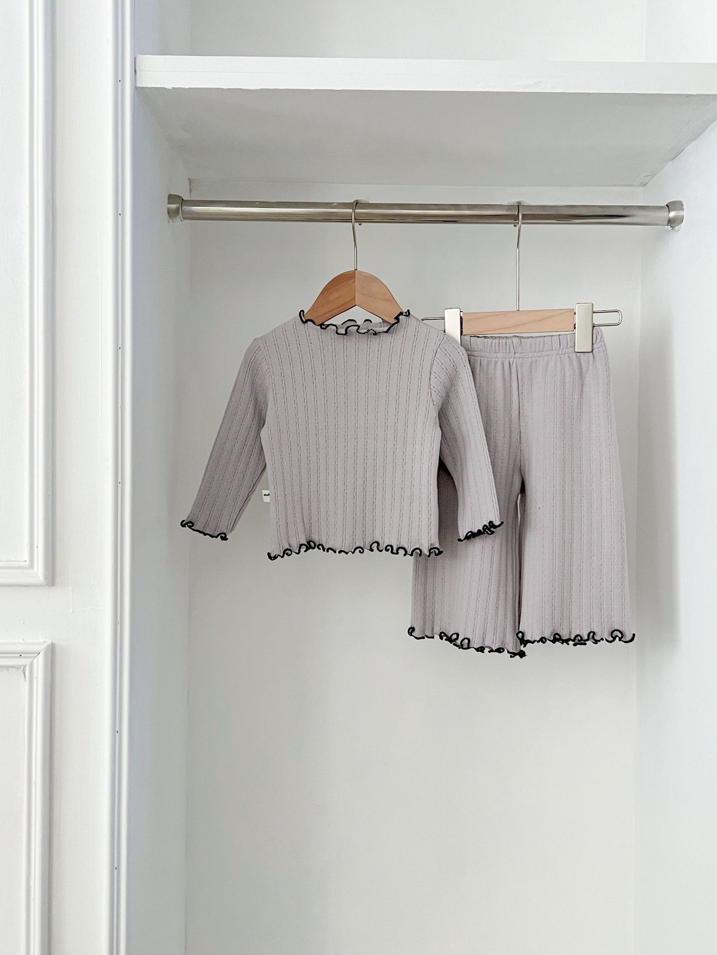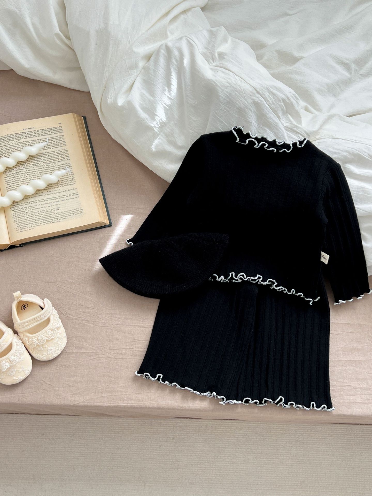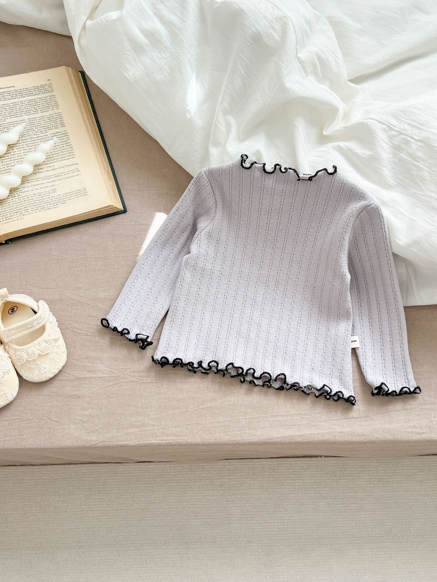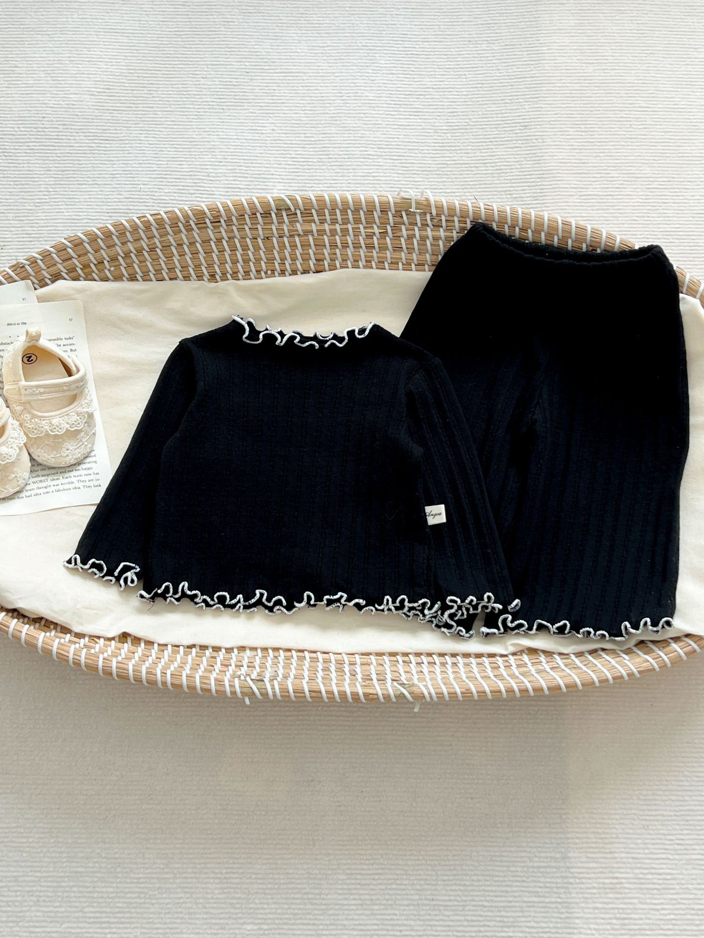 2024 봄 아기 홈 착용 세트 아기 소녀 새로운 줄무늬 귀여운 레이스 긴 소매 유아 투피스 세트스토어 가기