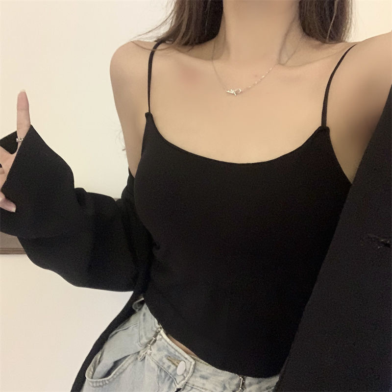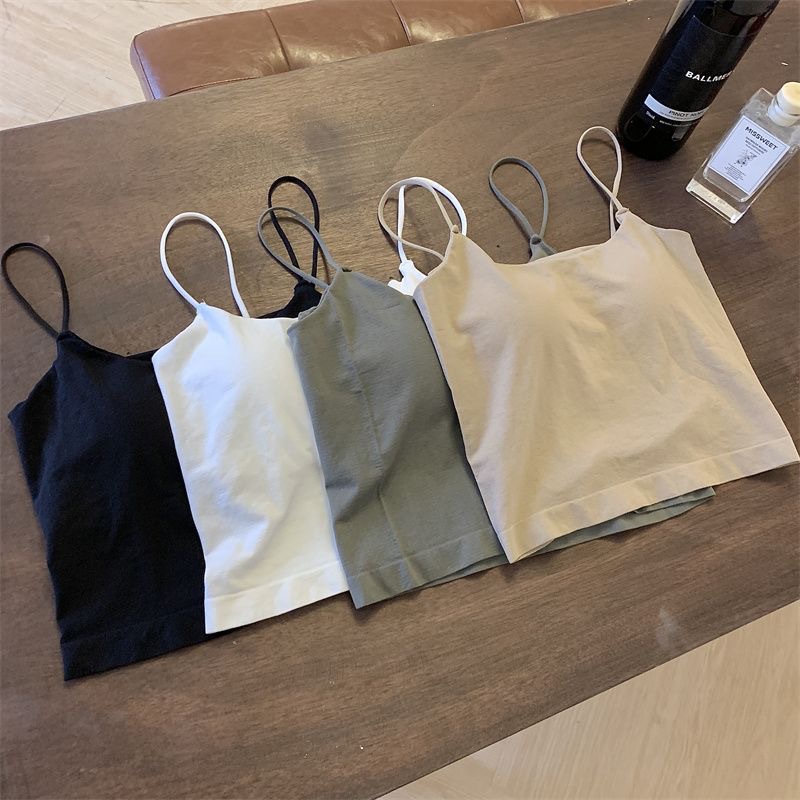 솔리드 컬러 스포츠 카미 솔 섹시한 외부 착용 간단한 백리스 솔리드 컬러 아름다운 스트랩 가슴 패드 내베이스 탑