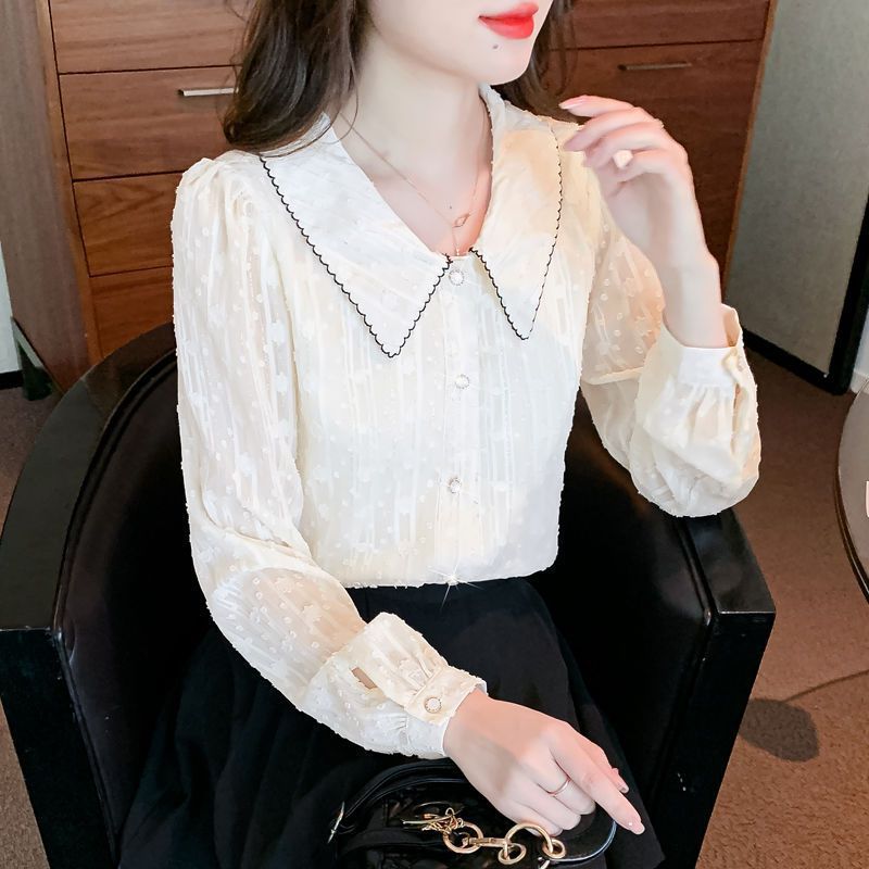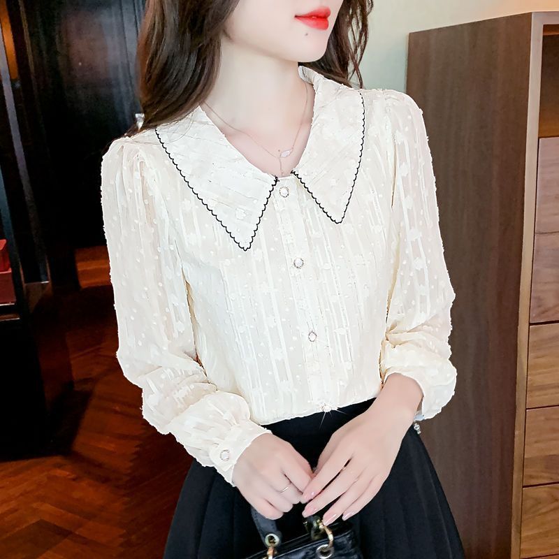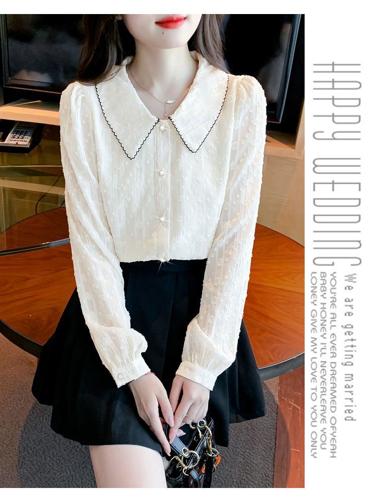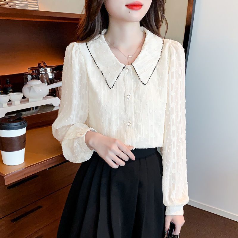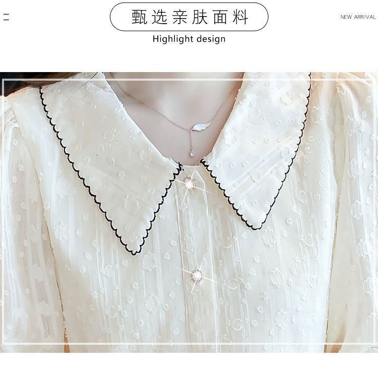 시폰 셔츠 여성용 긴팔 2024 봄 새 인형 칼라 탑 하이 엔드 센스 셔츠 캐주얼 올 매치 스몰 셔츠