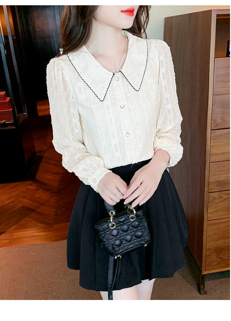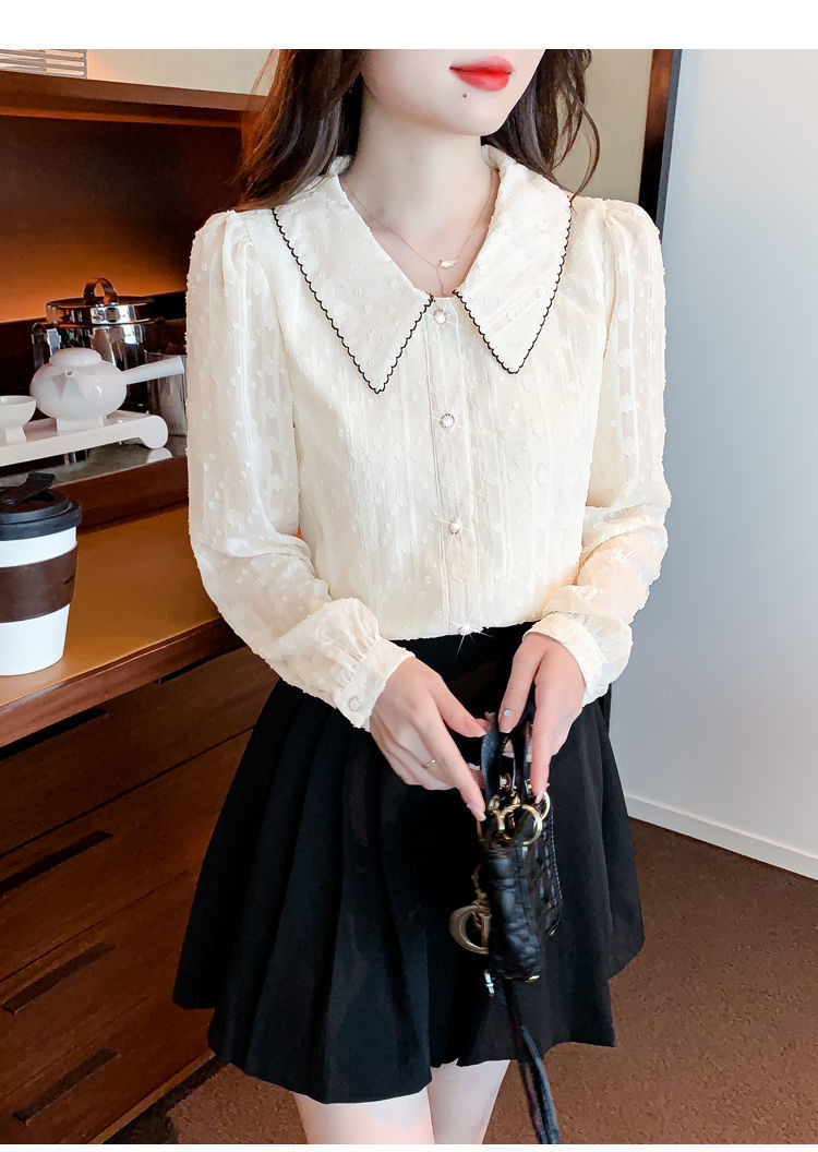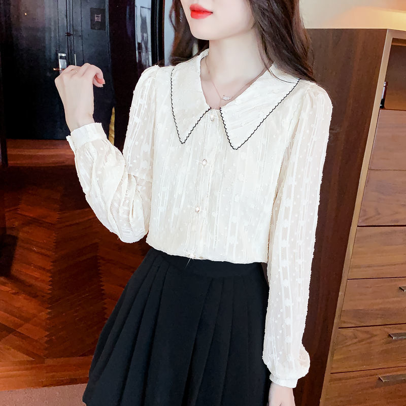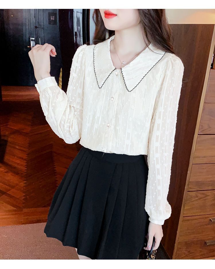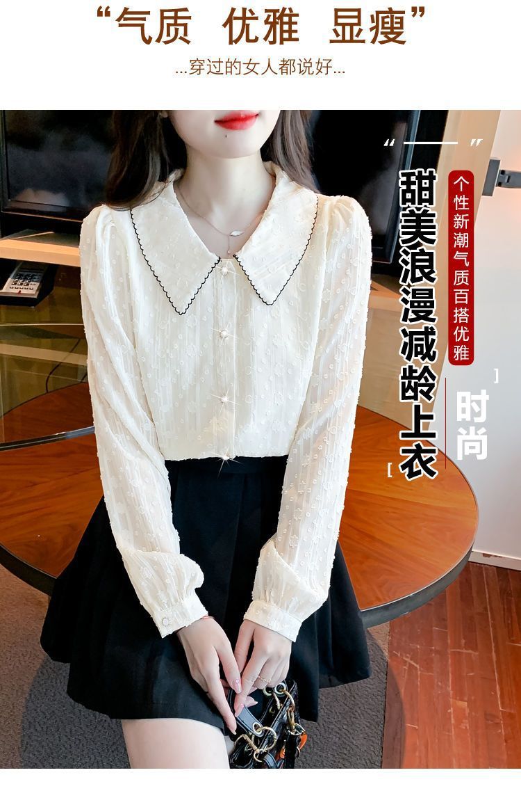 시폰 셔츠 여성용 긴팔 2024 봄 새 인형 칼라 탑 하이 엔드 센스 셔츠 캐주얼 올 매치 스몰 셔츠
