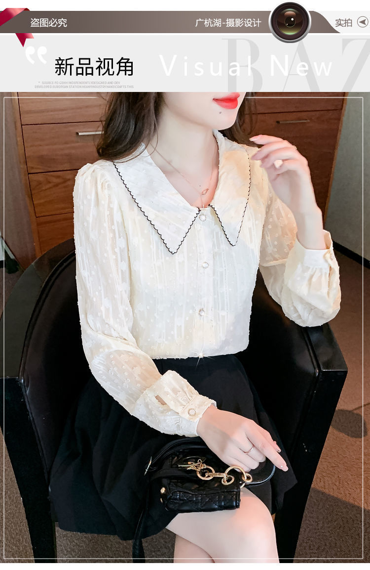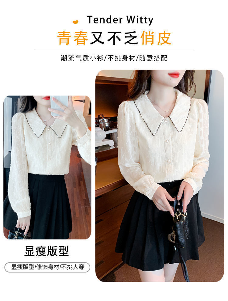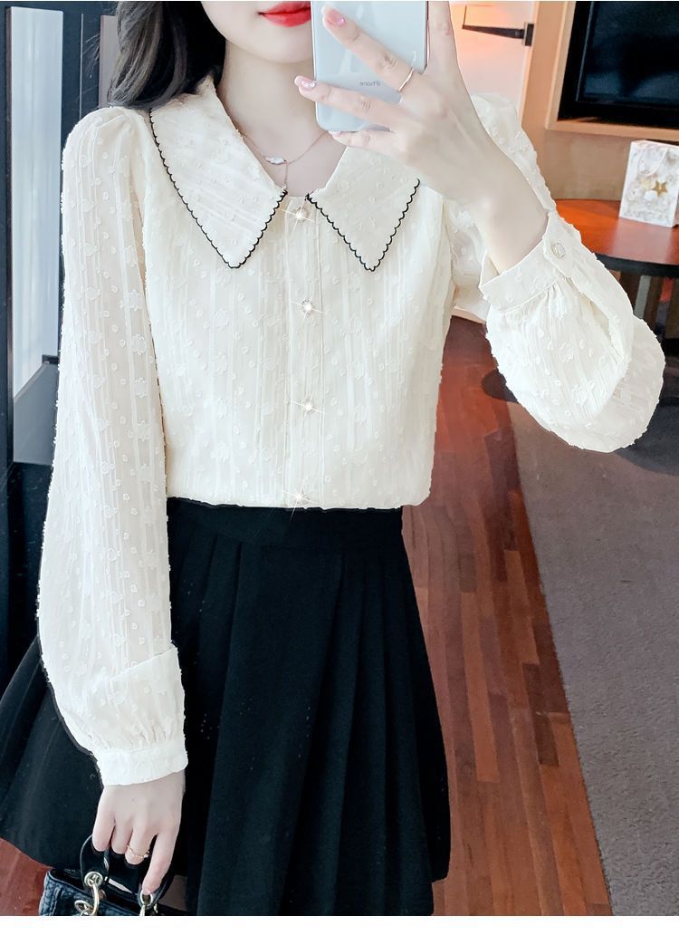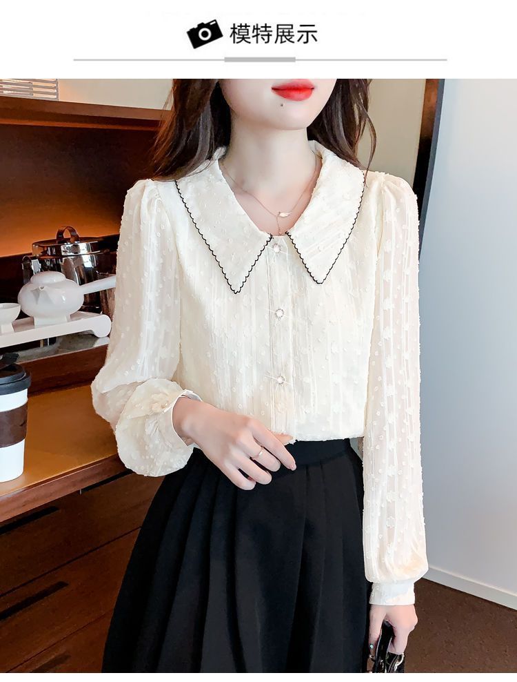 시폰 셔츠 여성용 긴팔 2024 봄 새 인형 칼라 탑 하이 엔드 센스 셔츠 캐주얼 올 매치 스몰 셔츠스토어 가기