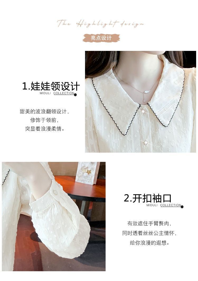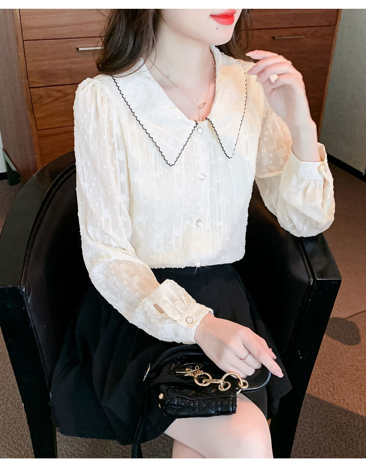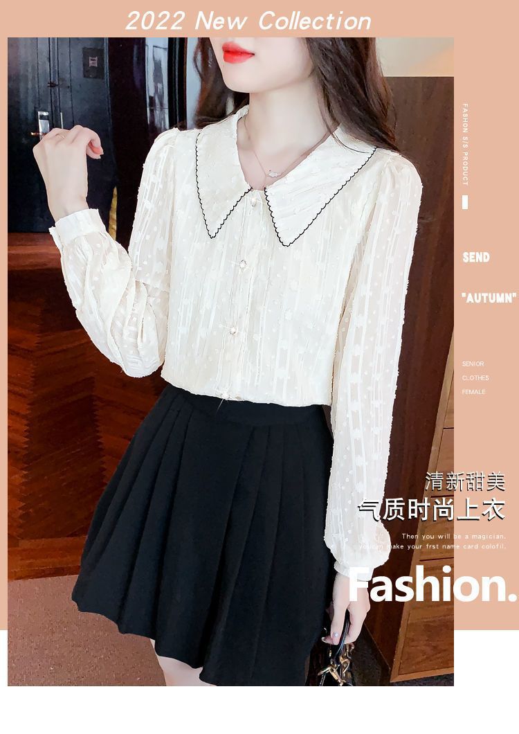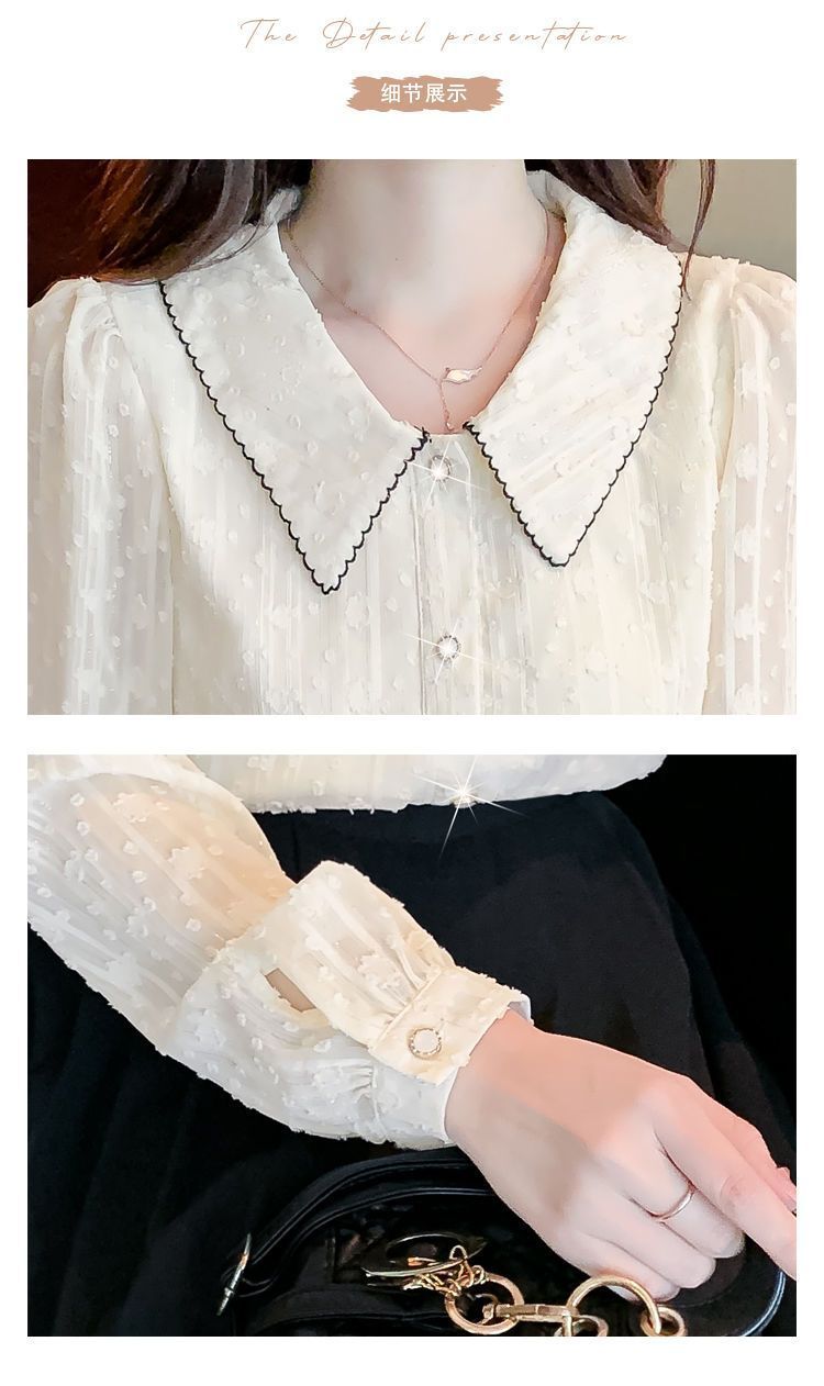 시폰 셔츠 여성용 긴팔 2024 봄 새 인형 칼라 탑 하이 엔드 센스 셔츠 캐주얼 올 매치 스몰 셔츠스토어 가기