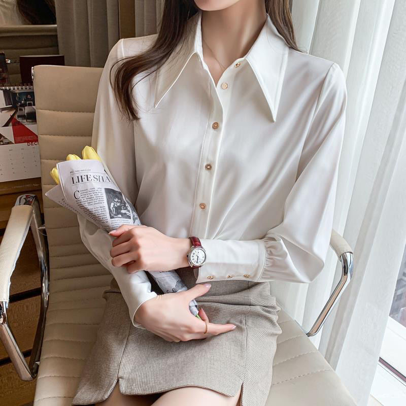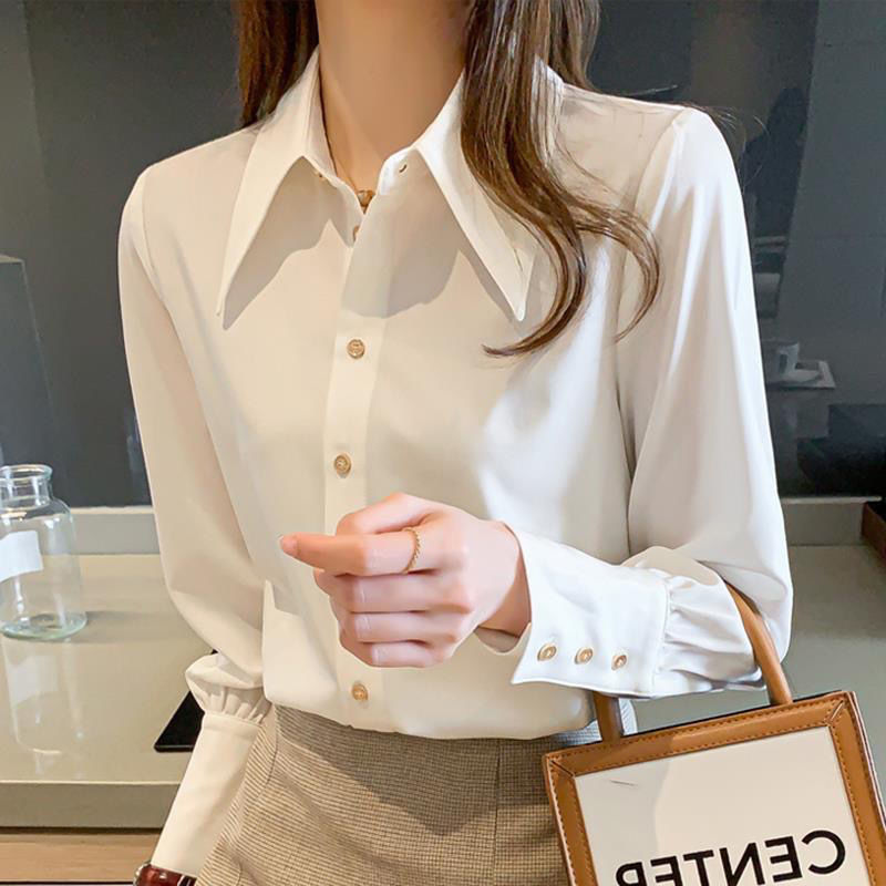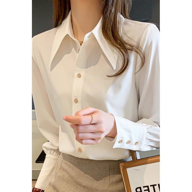 흰색 셔츠 여성 봄 한국 스타일 세련된 쉬폰 디자인 감각 틈새 질감 우아한 얇은 서양식 쉬폰 셔츠 탑