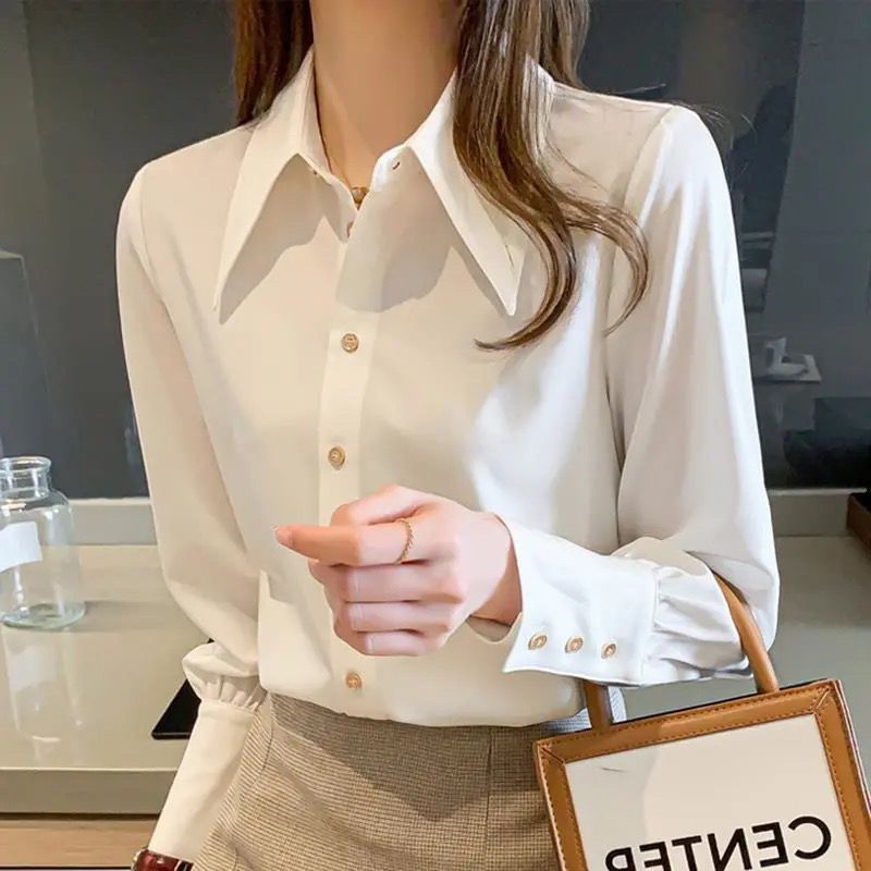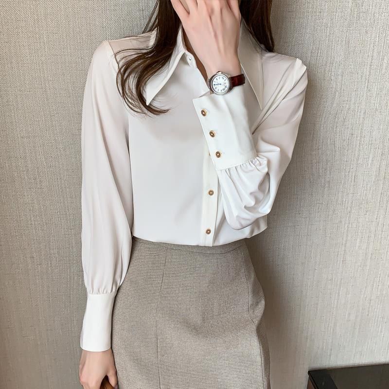 흰색 셔츠 여성 봄 한국 스타일 세련된 쉬폰 디자인 감각 틈새 질감 우아한 얇은 서양식 쉬폰 셔츠 탑스토어 가기