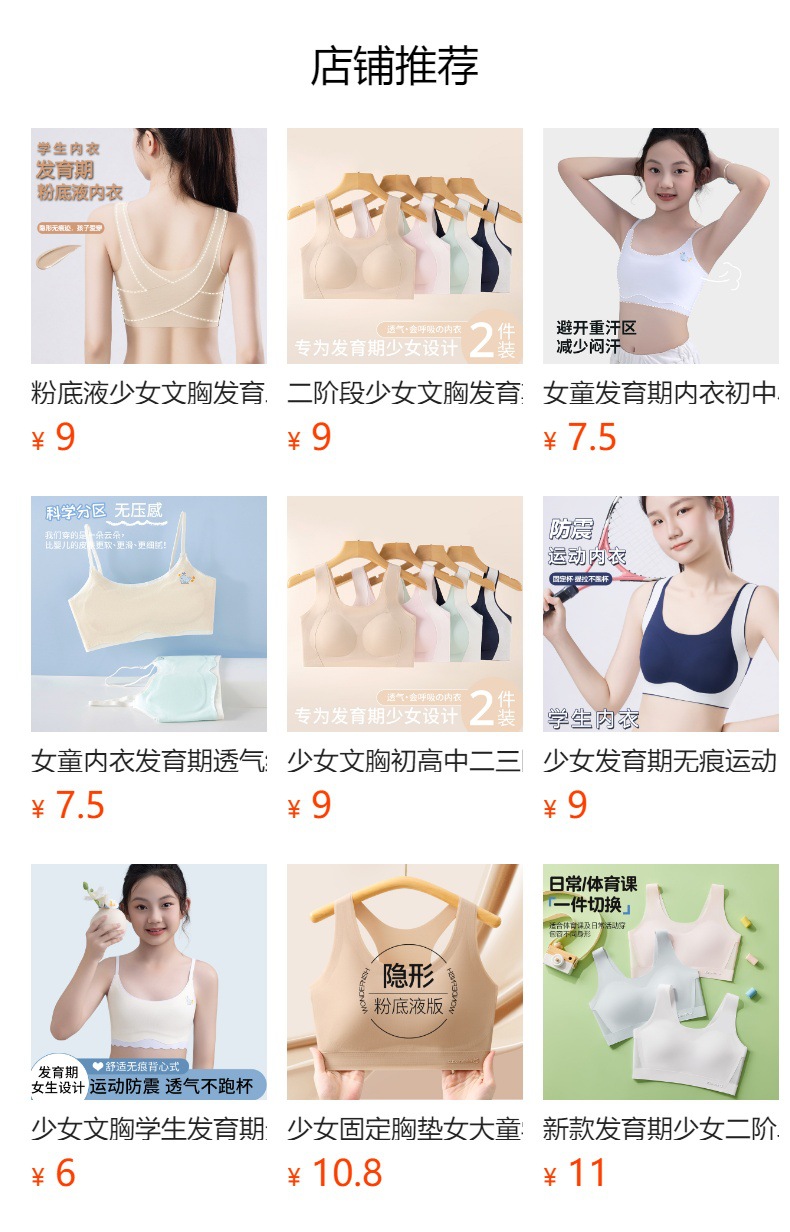 여아 속옷 발달기 초등학생 중학생 청소년 첫 단계 브라 소녀 어린이 무봉제스토어 가기