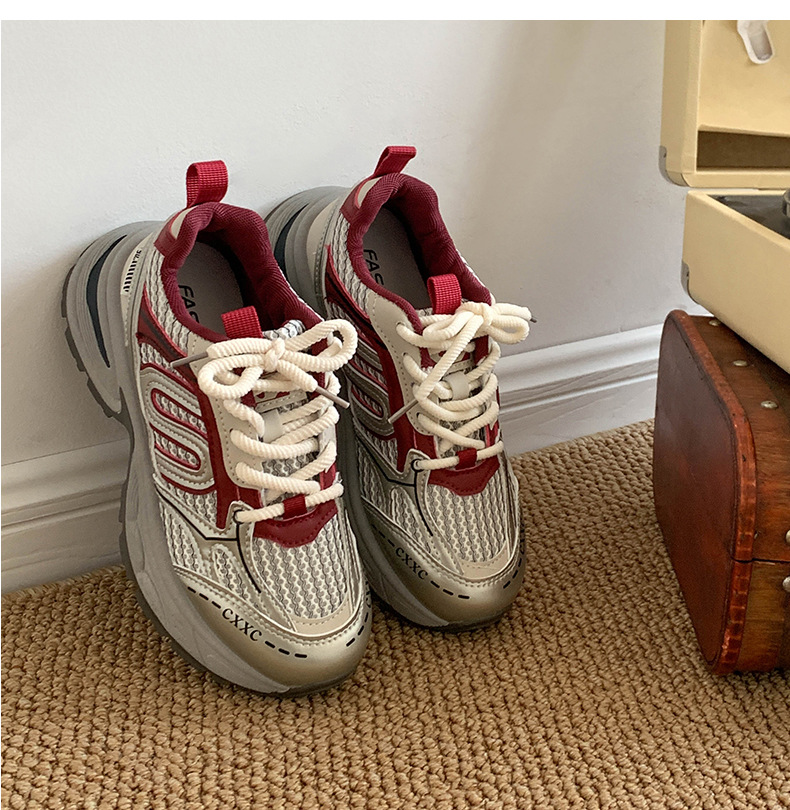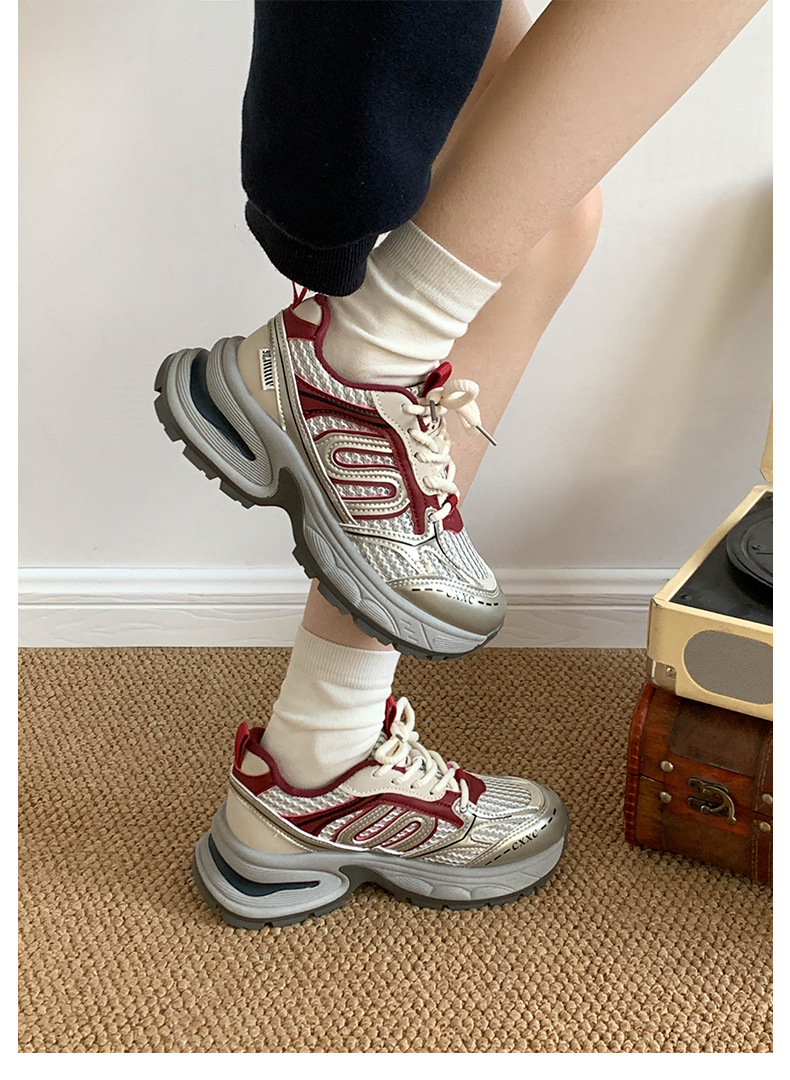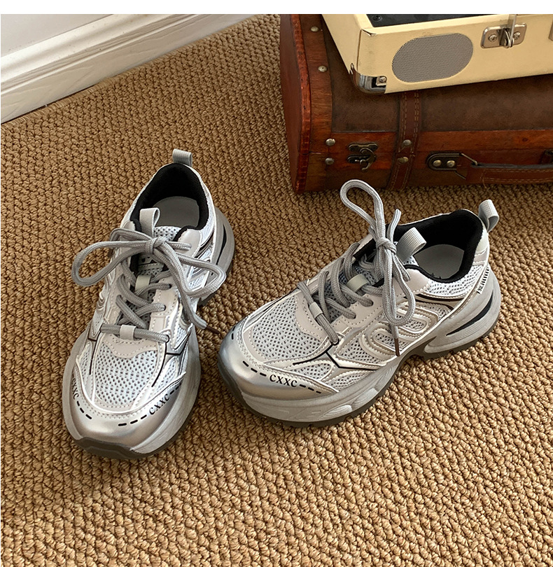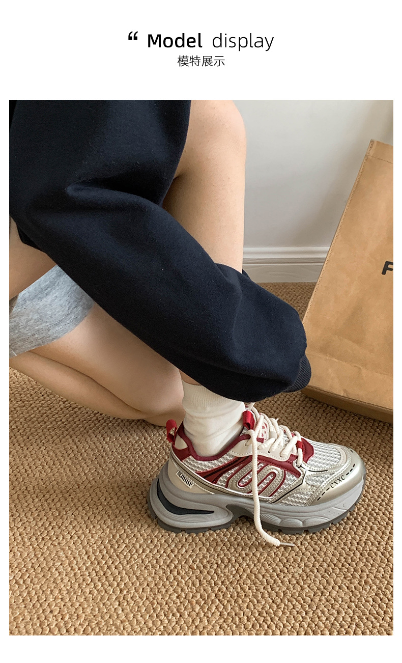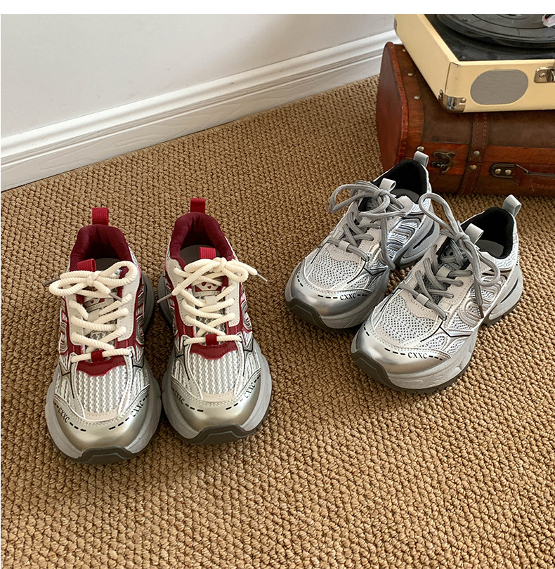 레트로 홍콩 스타일 발이 보이는 작은 복고풍 두꺼운 밑창 아빠 신발 여성 2025 새로운 봄 경량 학생 운동화