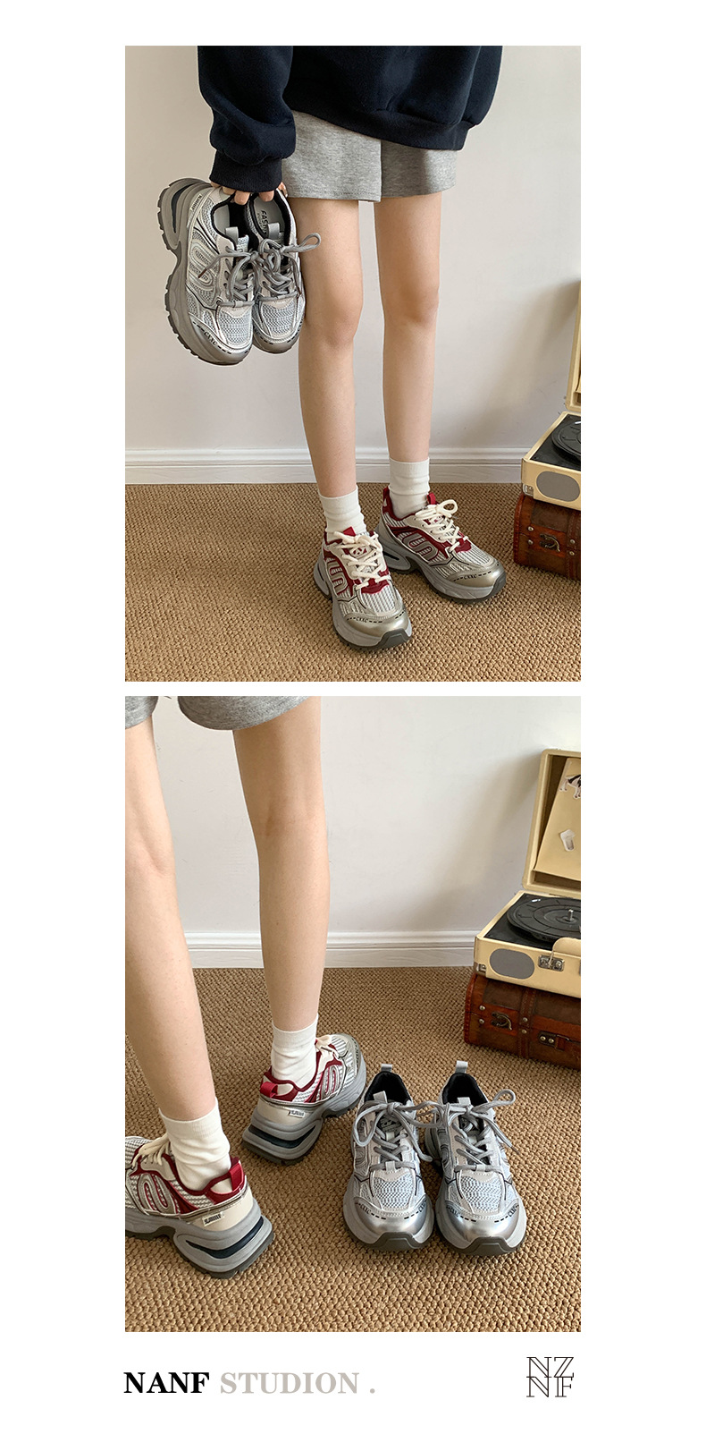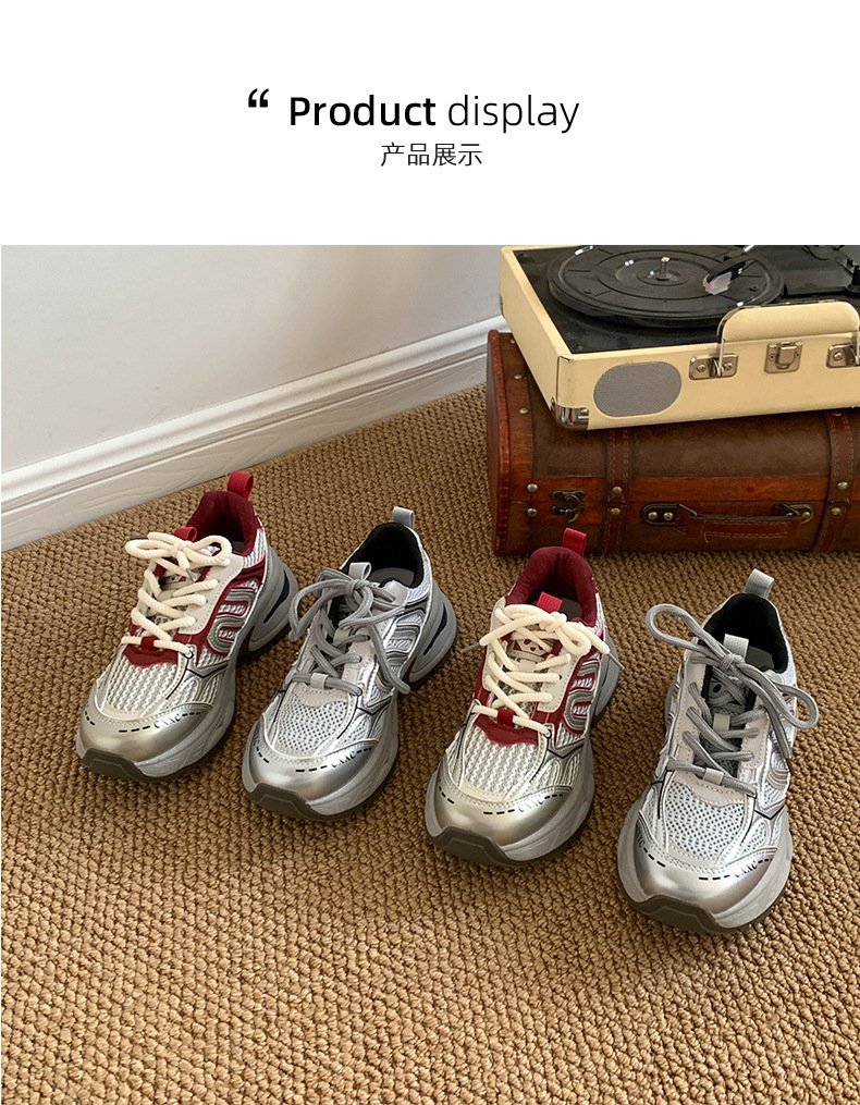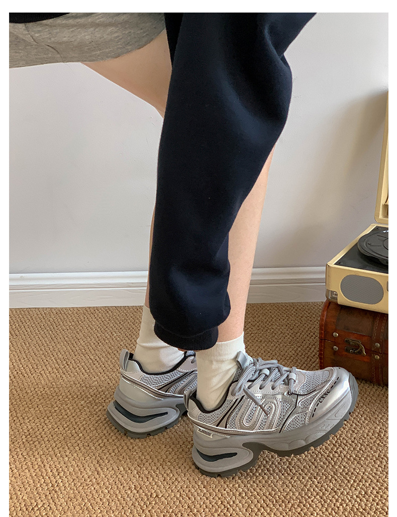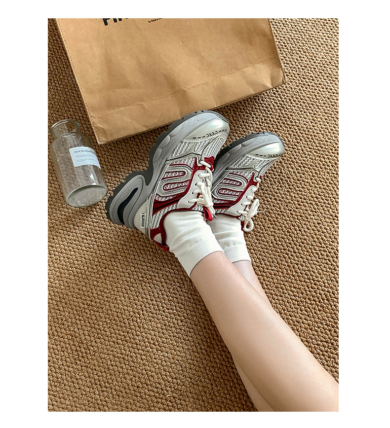 레트로 홍콩 스타일 발이 보이는 작은 복고풍 두꺼운 밑창 아빠 신발 여성 2025 새로운 봄 경량 학생 운동화
