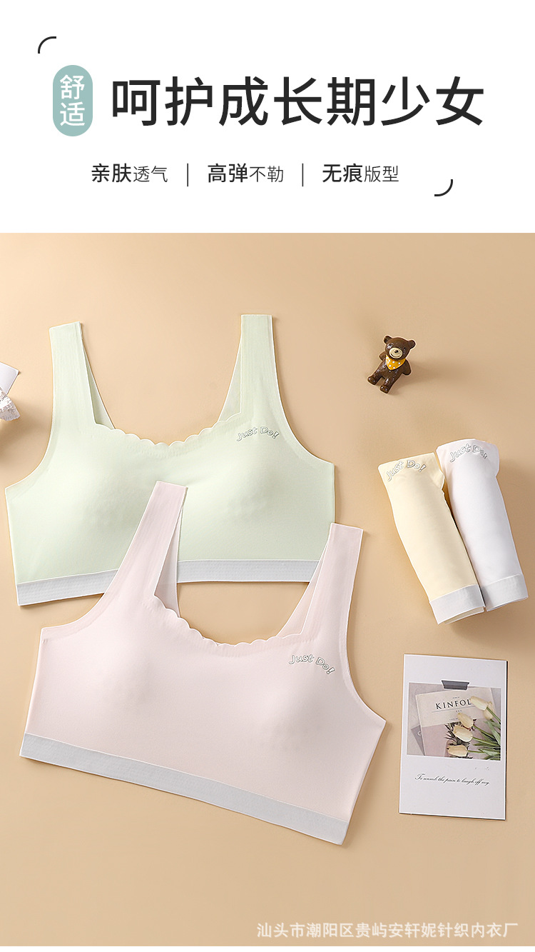 소녀 속옷 고정 컵 학생 고등학교 중학생 소녀 발달 기간 어린이 포장 가슴 아이스 실크 조끼 브래지어스토어 가기