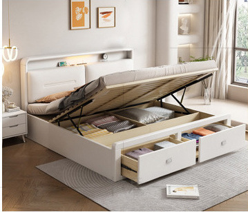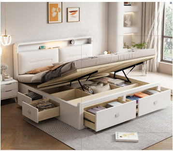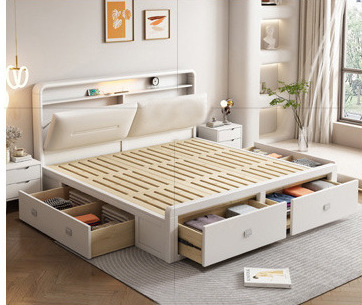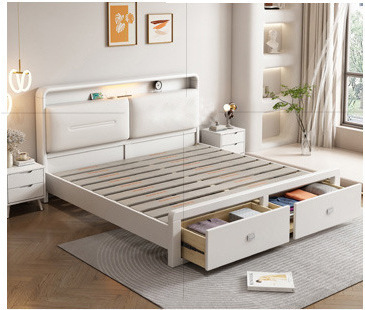 북유럽 빛 고급 단단한 나무 침대 마스터 침실 1.8 m 더블 침대 현대 간단한 작은 아파트 높은 상자 서랍 보관 침대스토어 가기