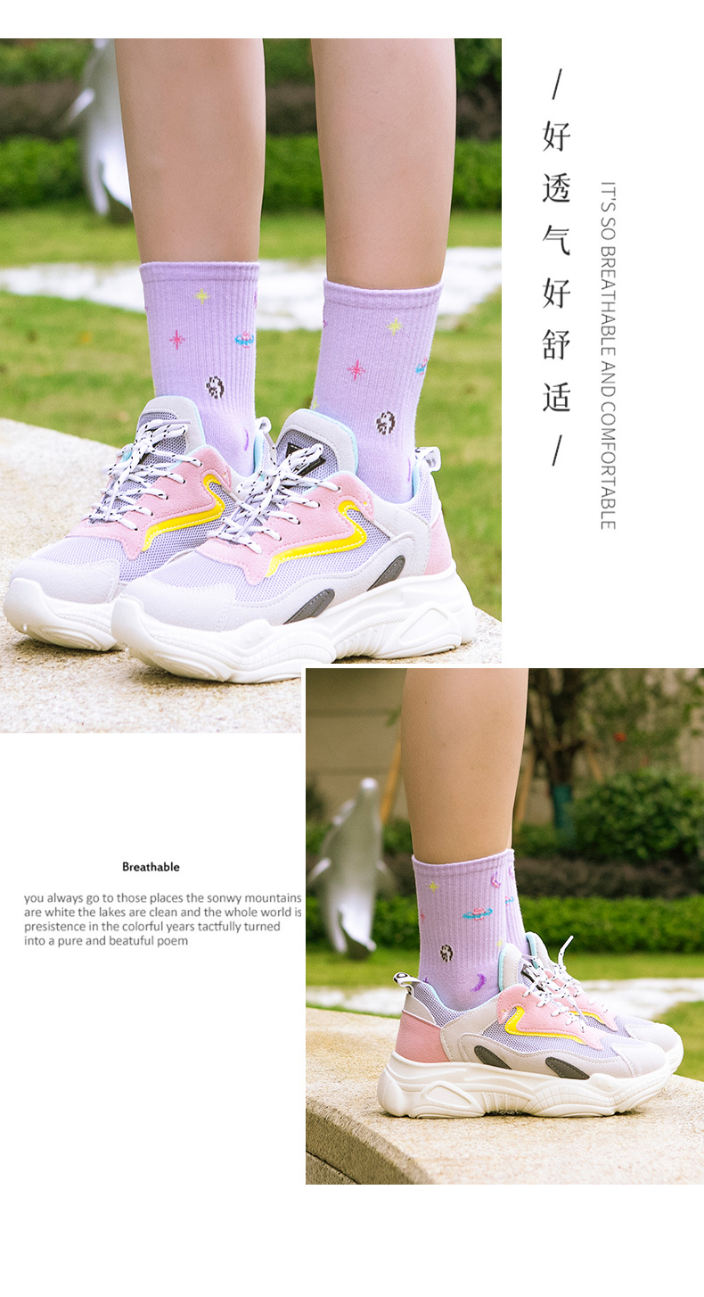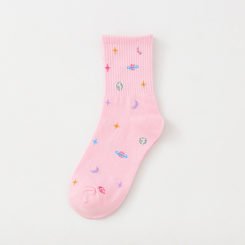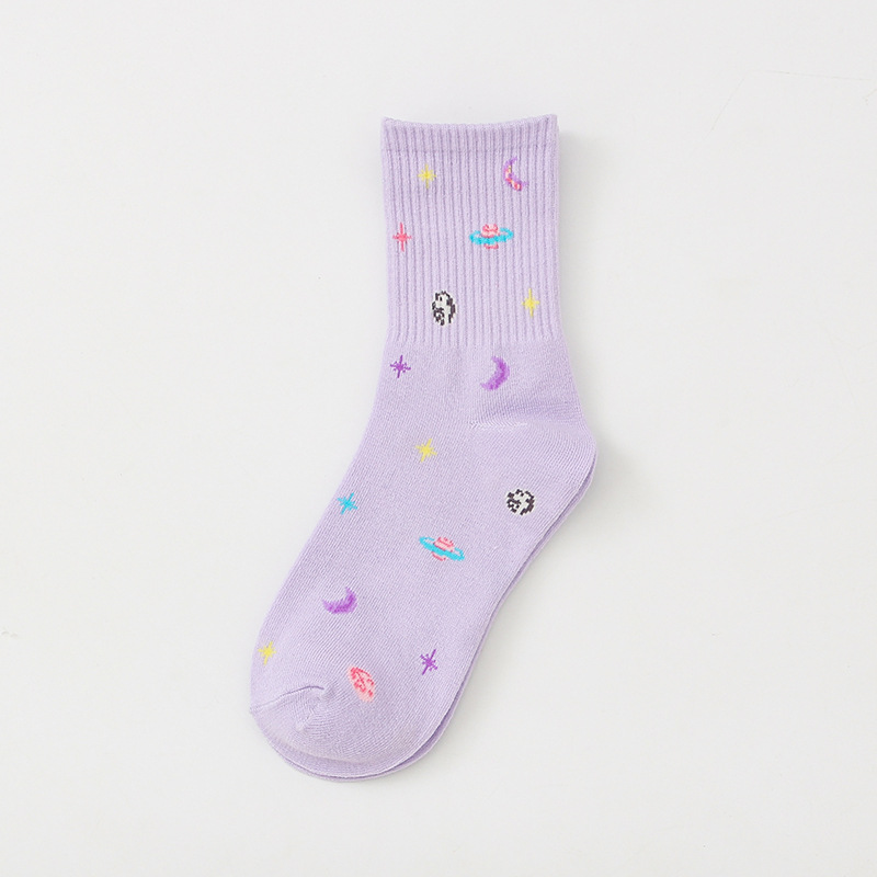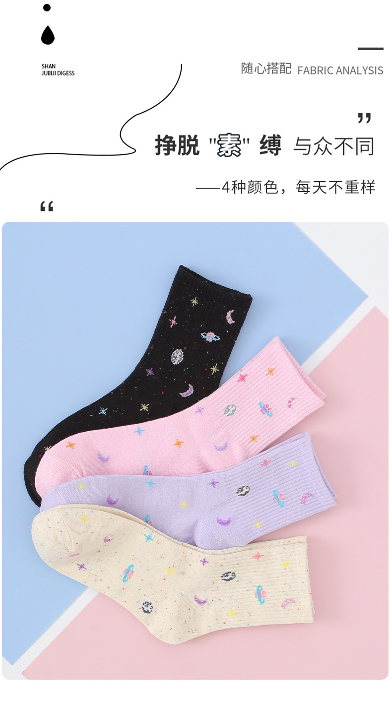순수한 색면 양말 여성 봄 가을과 겨울 일본 중간 송아지 사탕 여성 양말 도트 원사 우주 별이 빛나는 하늘 양말면 도매