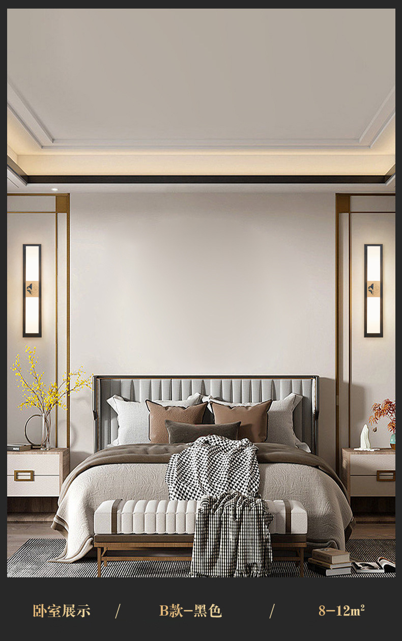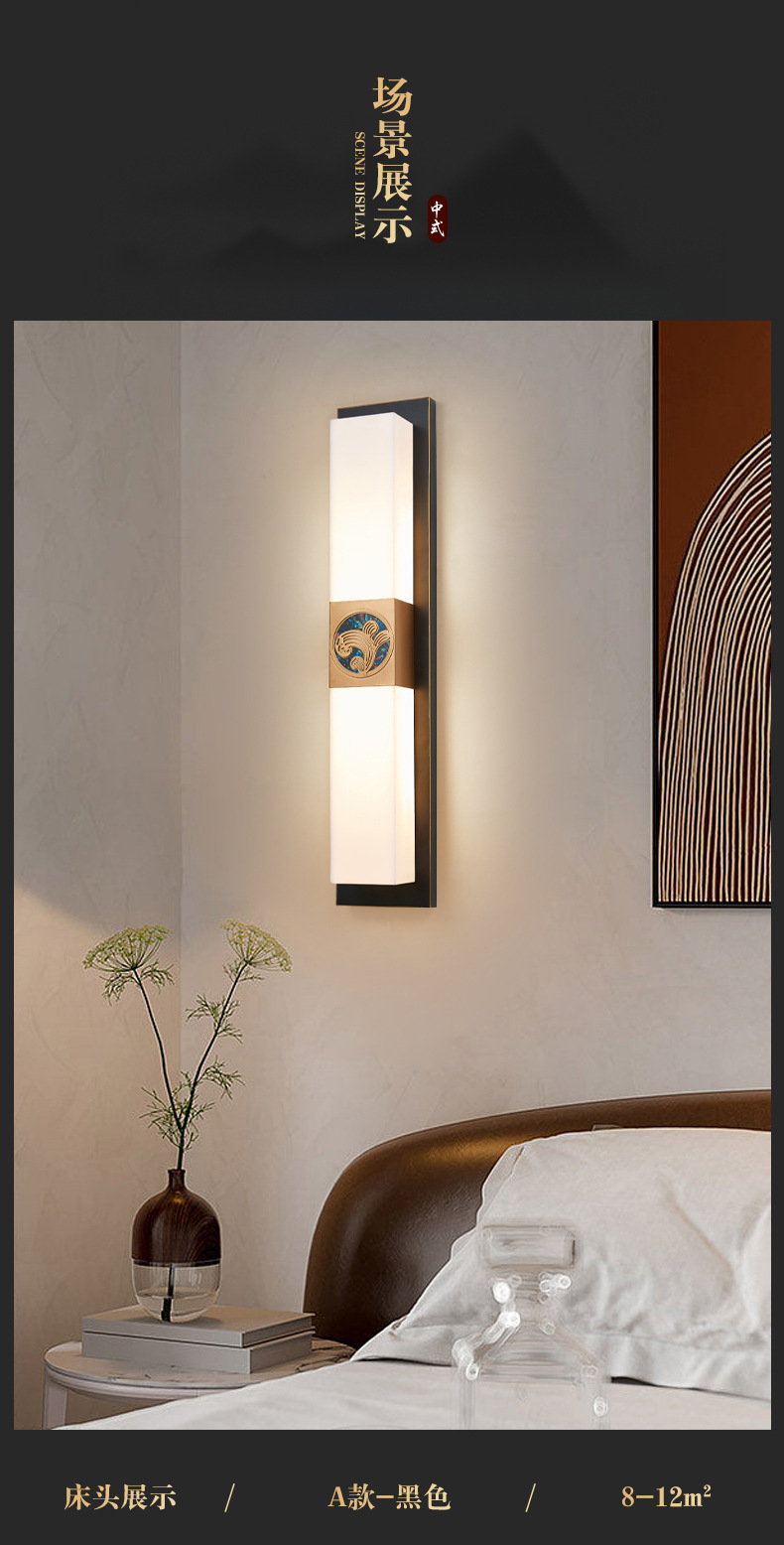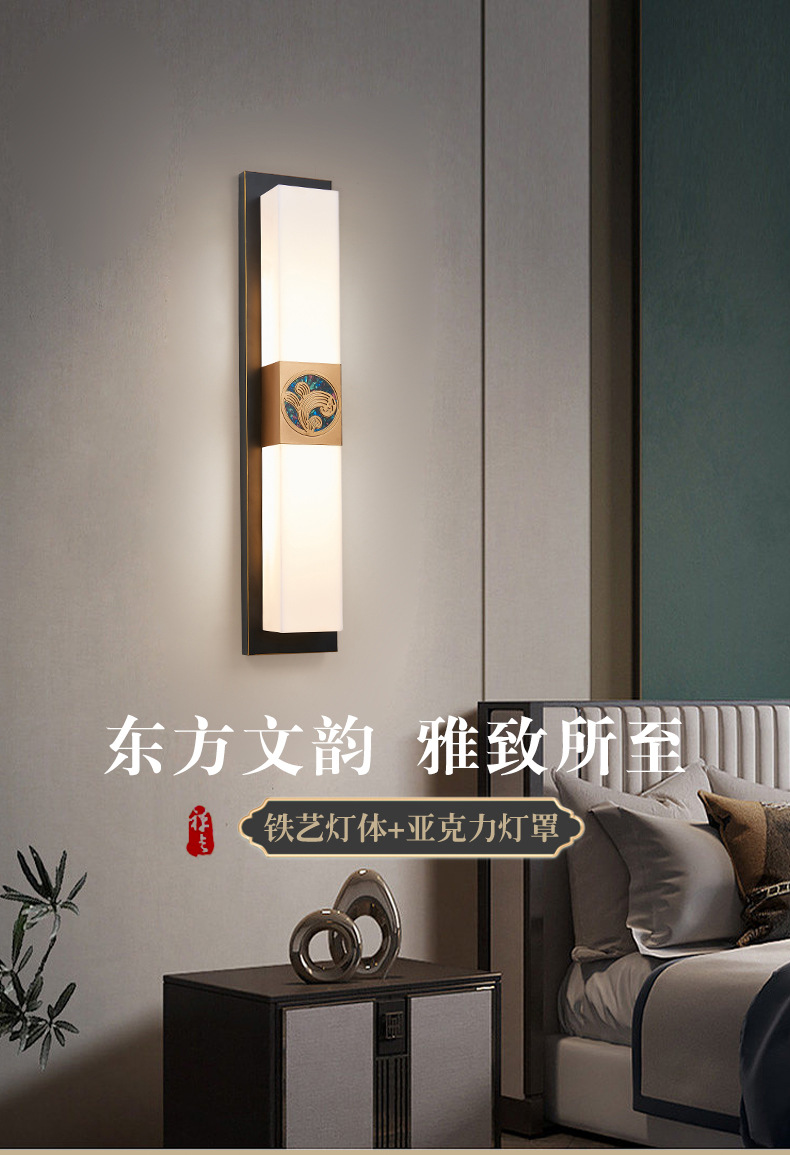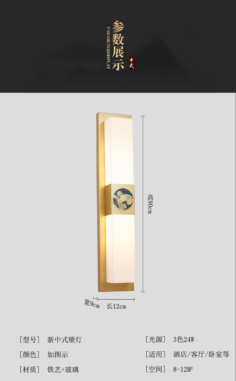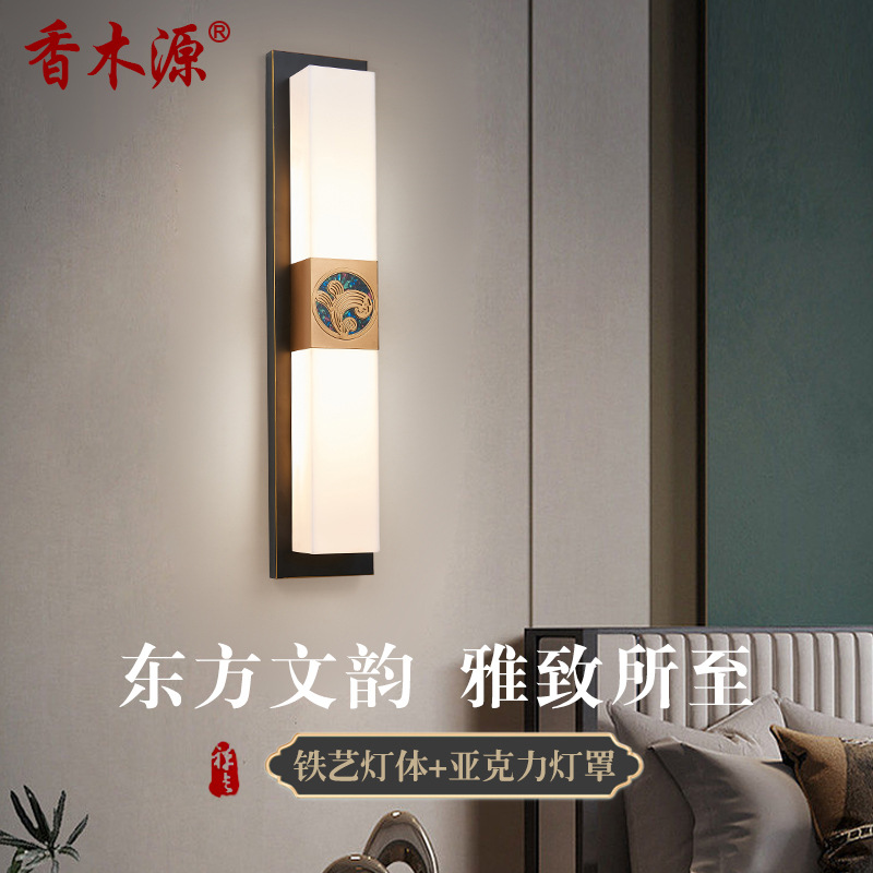 새로운 중국 스타일의 벽 램프 거실 계단 통로 침실 긴 배경 벽 램프 중국 스타일의 새로운 침대 옆 벽 램프 8002