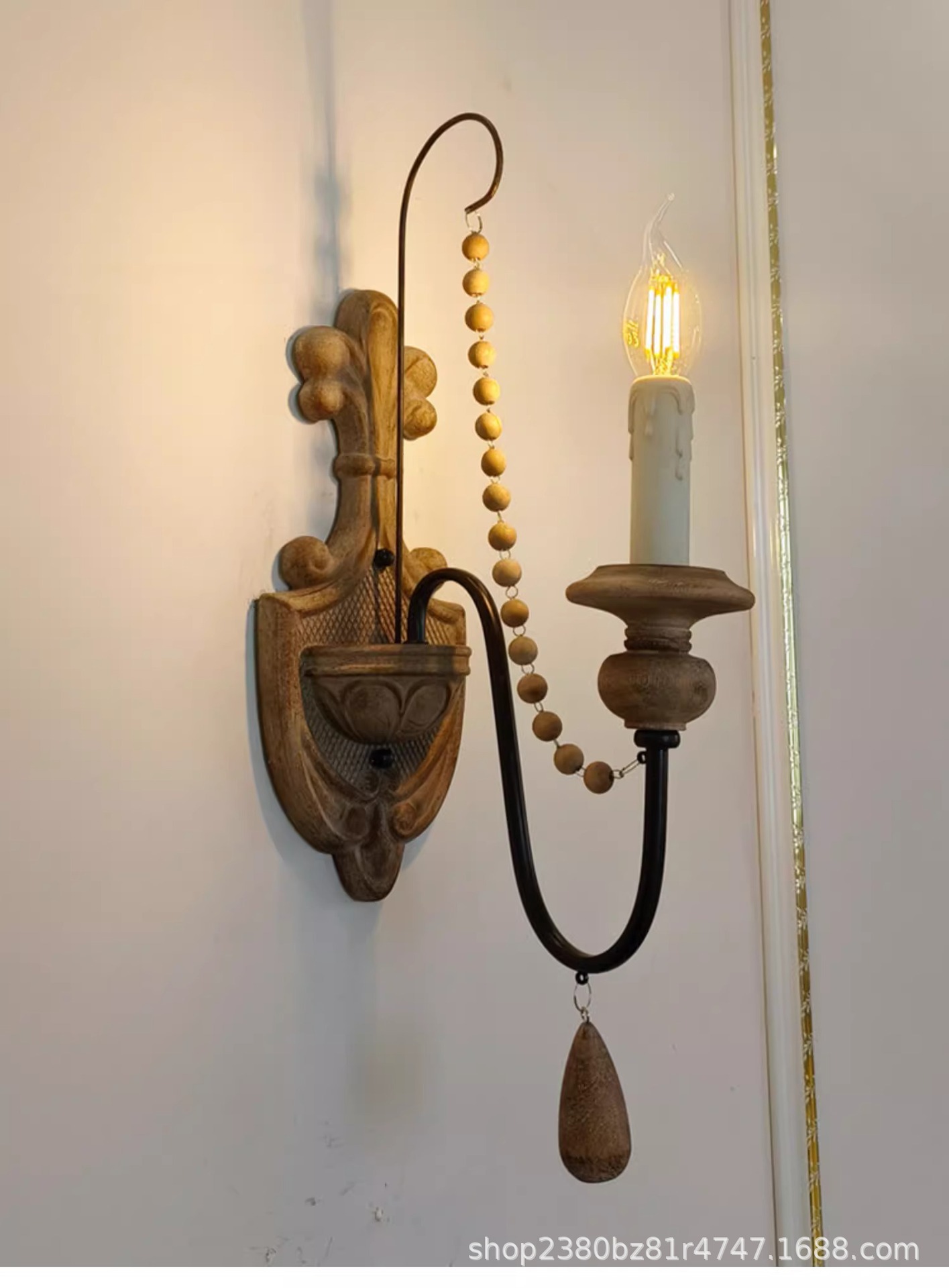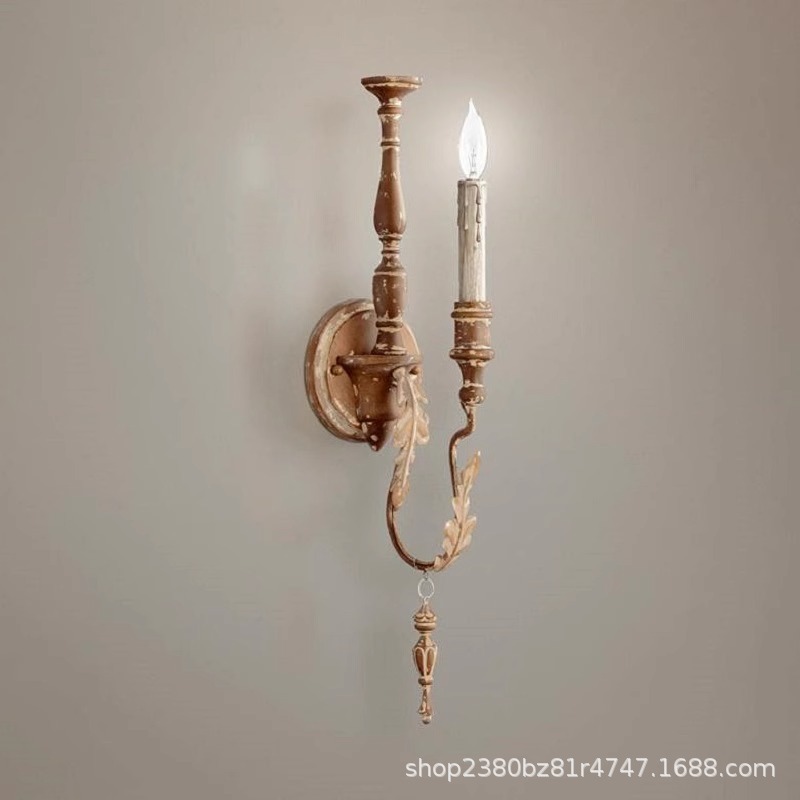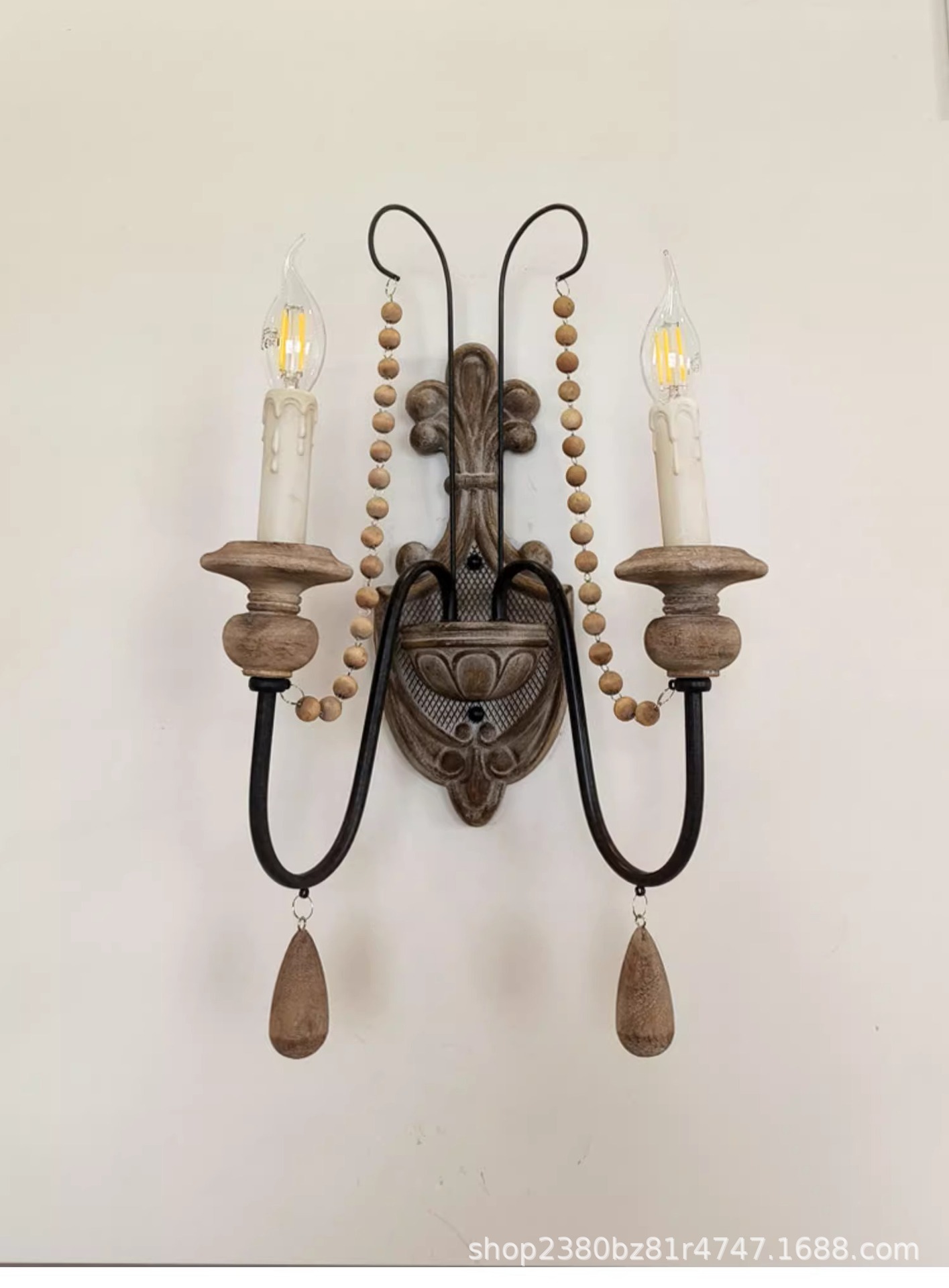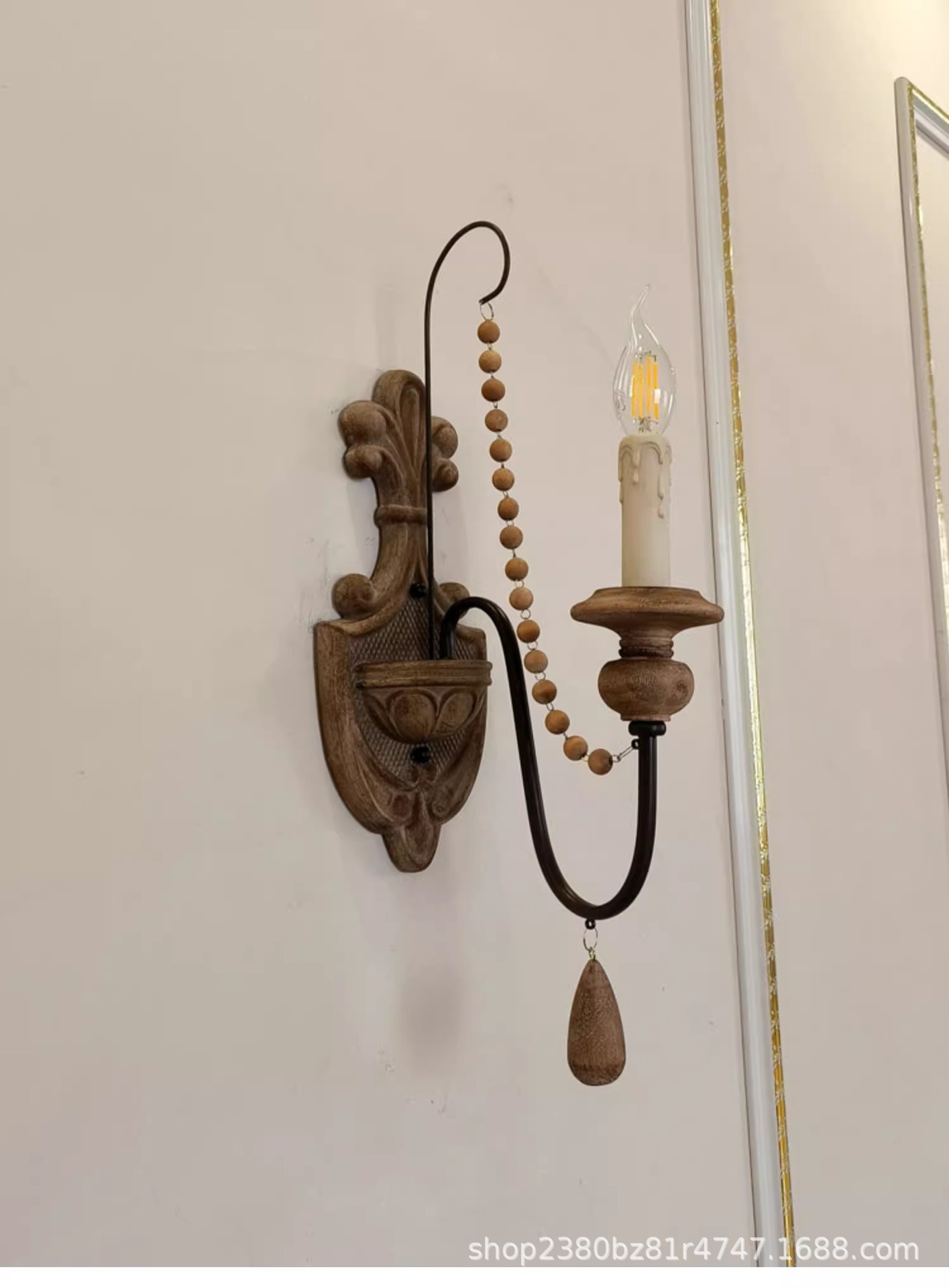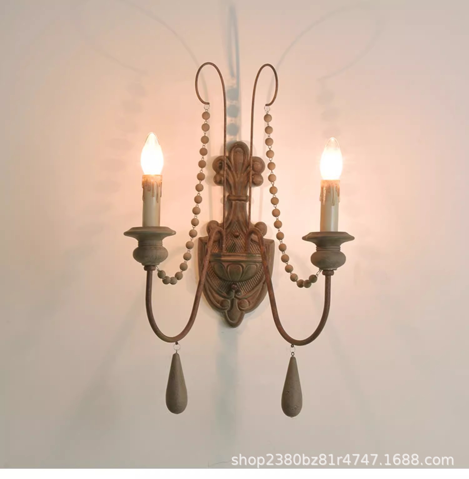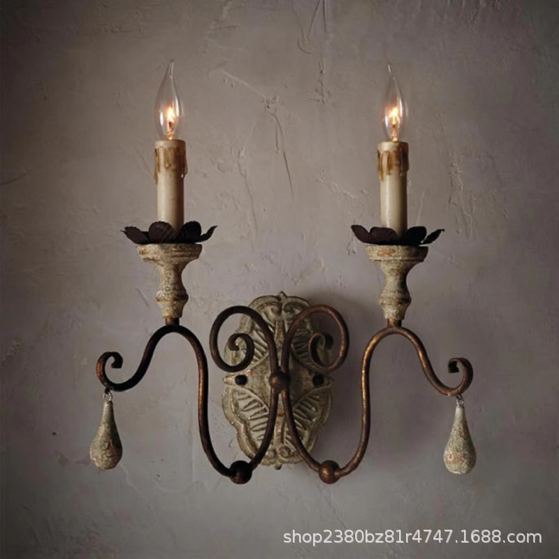 미국식 시골 목공예 조명 거실 벽등 복도 레트로 프렌치 모델룸 더블 헤드 캔들 벽등 LED 조명