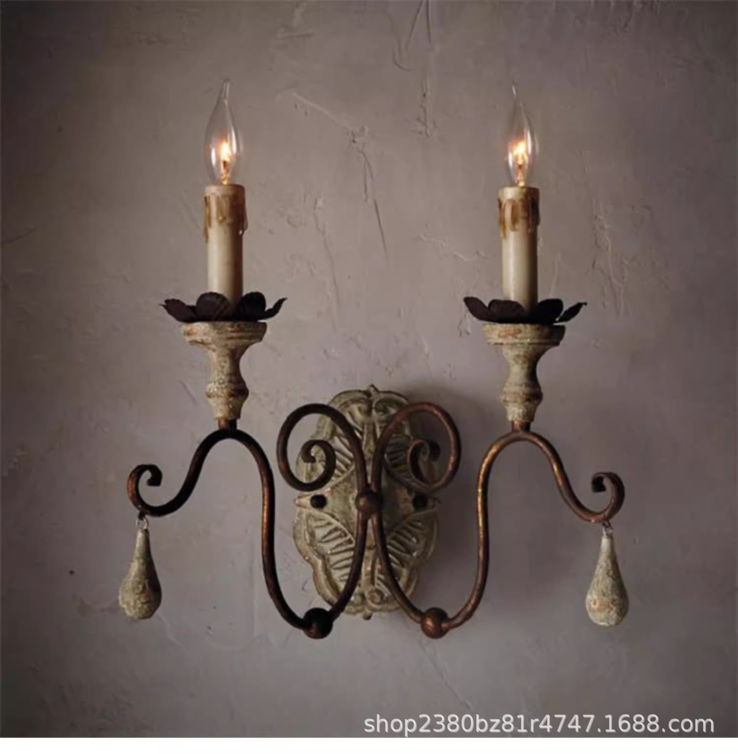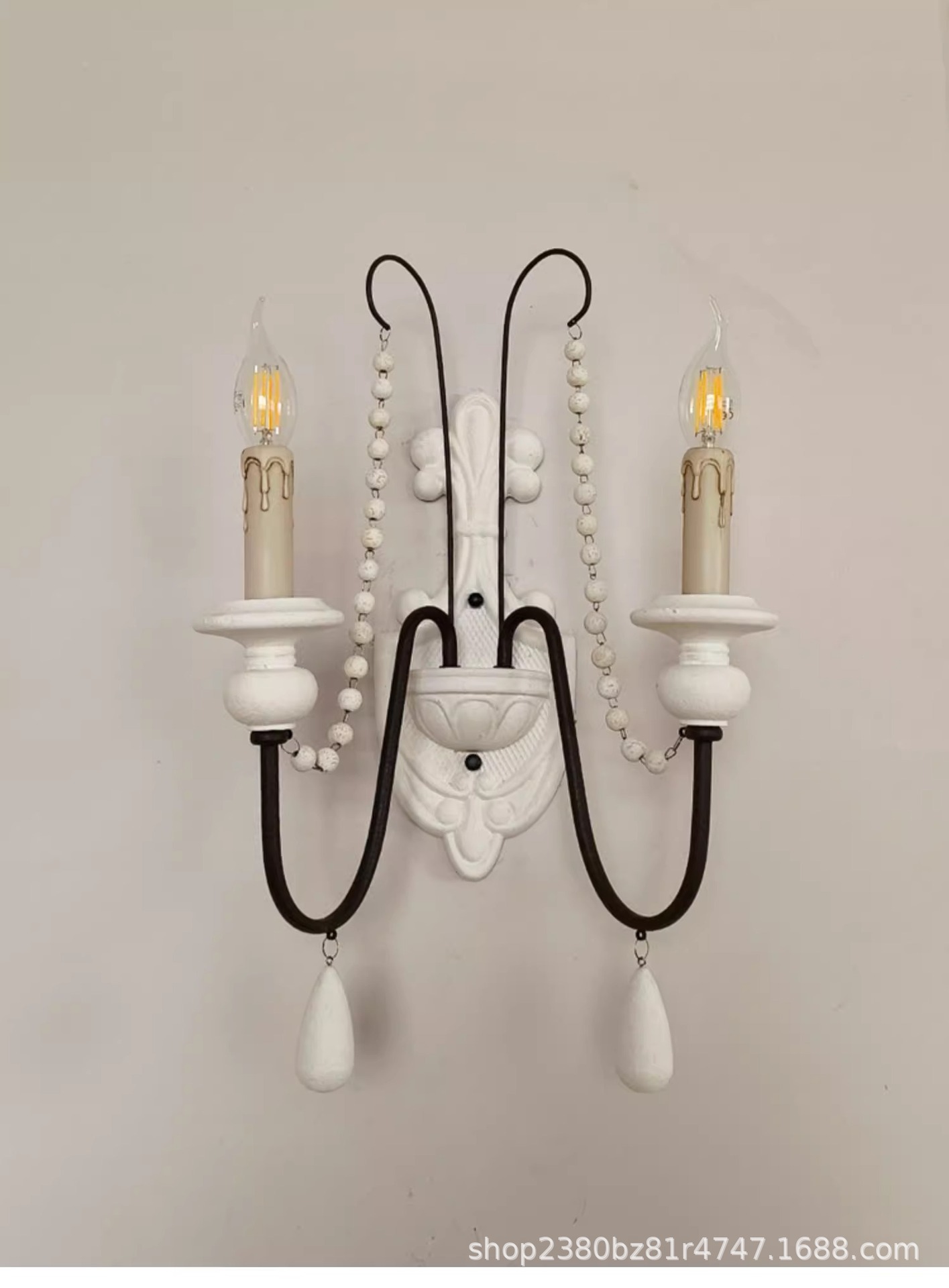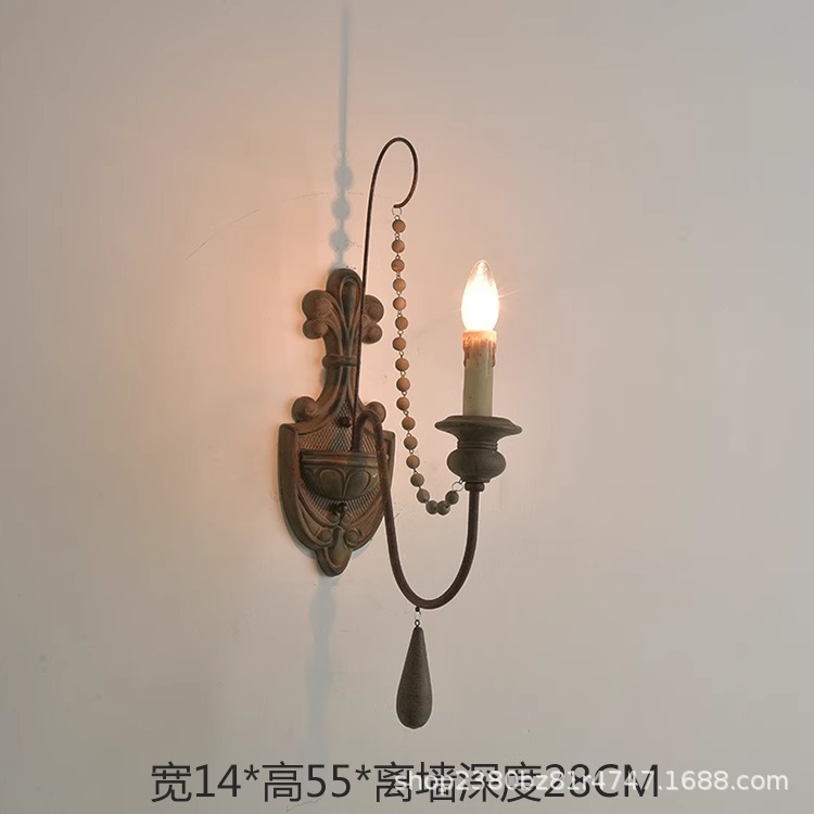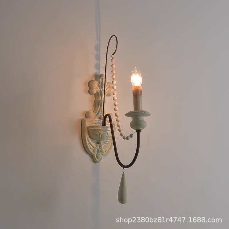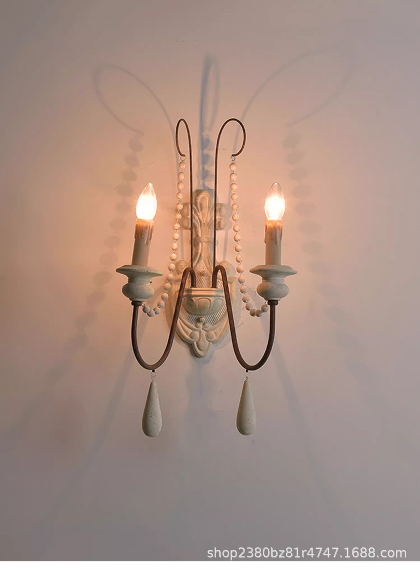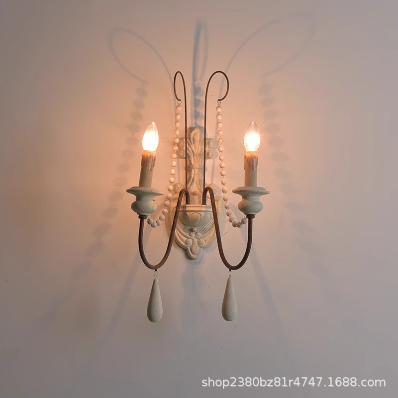 미국식 시골 목공예 조명 거실 벽등 복도 레트로 프렌치 모델룸 더블 헤드 캔들 벽등 LED 조명