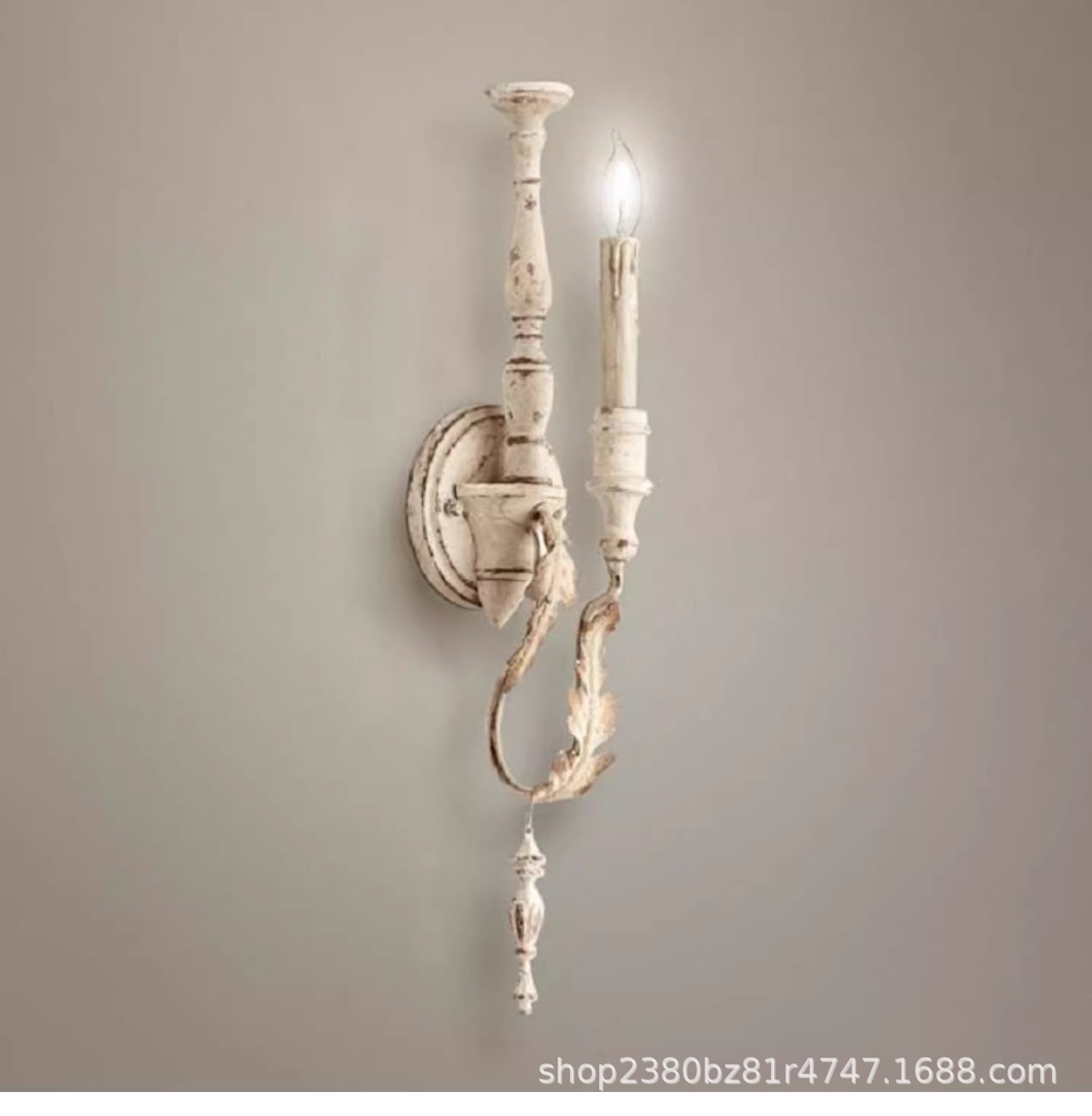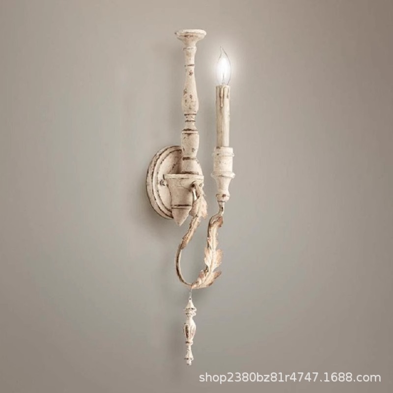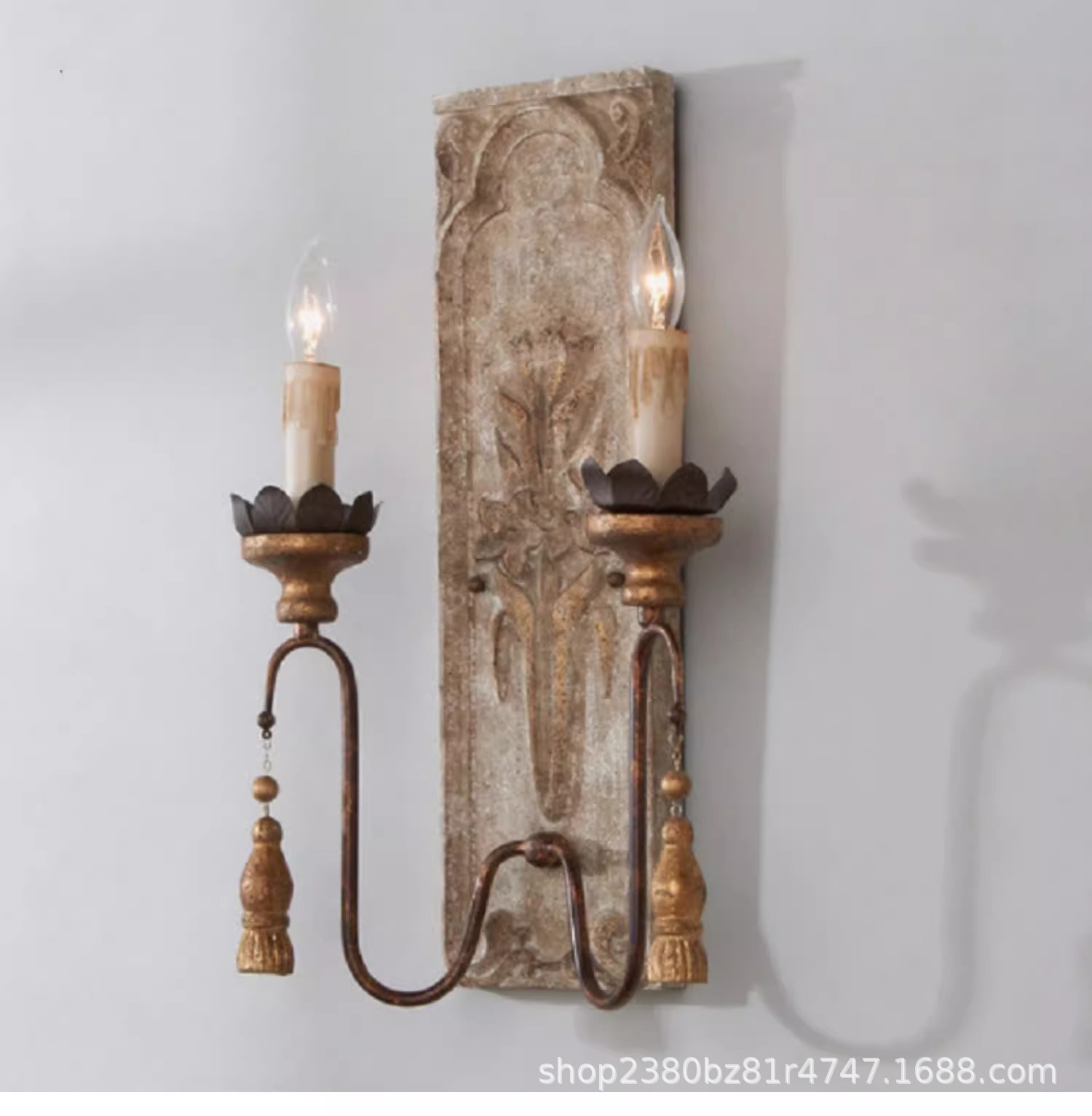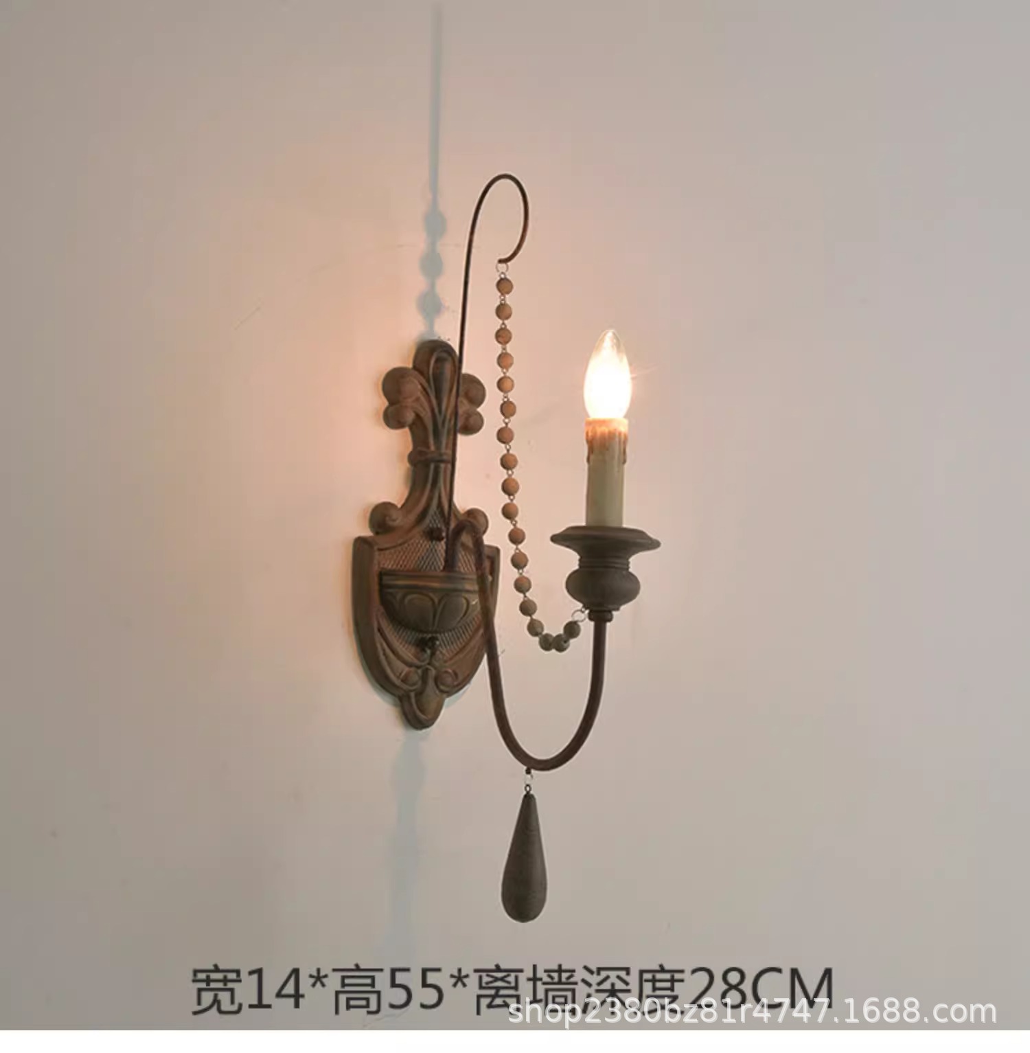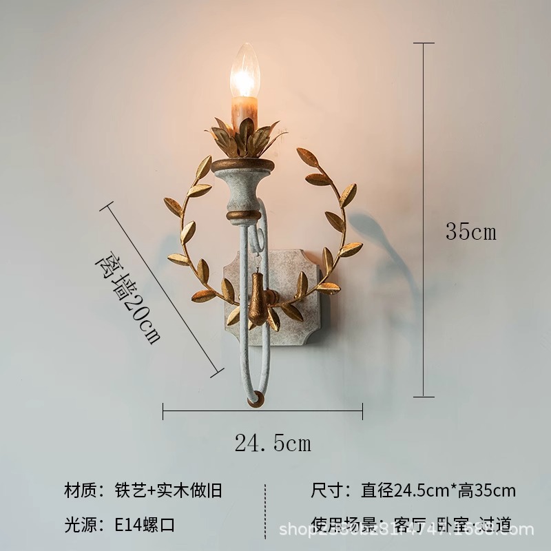 미국식 시골 목공예 조명 거실 벽등 복도 레트로 프렌치 모델룸 더블 헤드 캔들 벽등 LED 조명