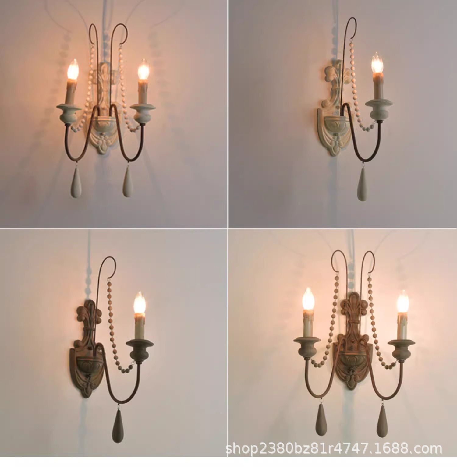 미국식 시골 목공예 조명 거실 벽등 복도 레트로 프렌치 모델룸 더블 헤드 캔들 벽등 LED 조명스토어 가기